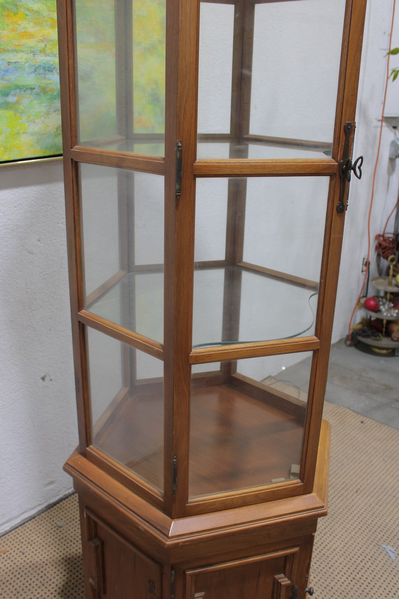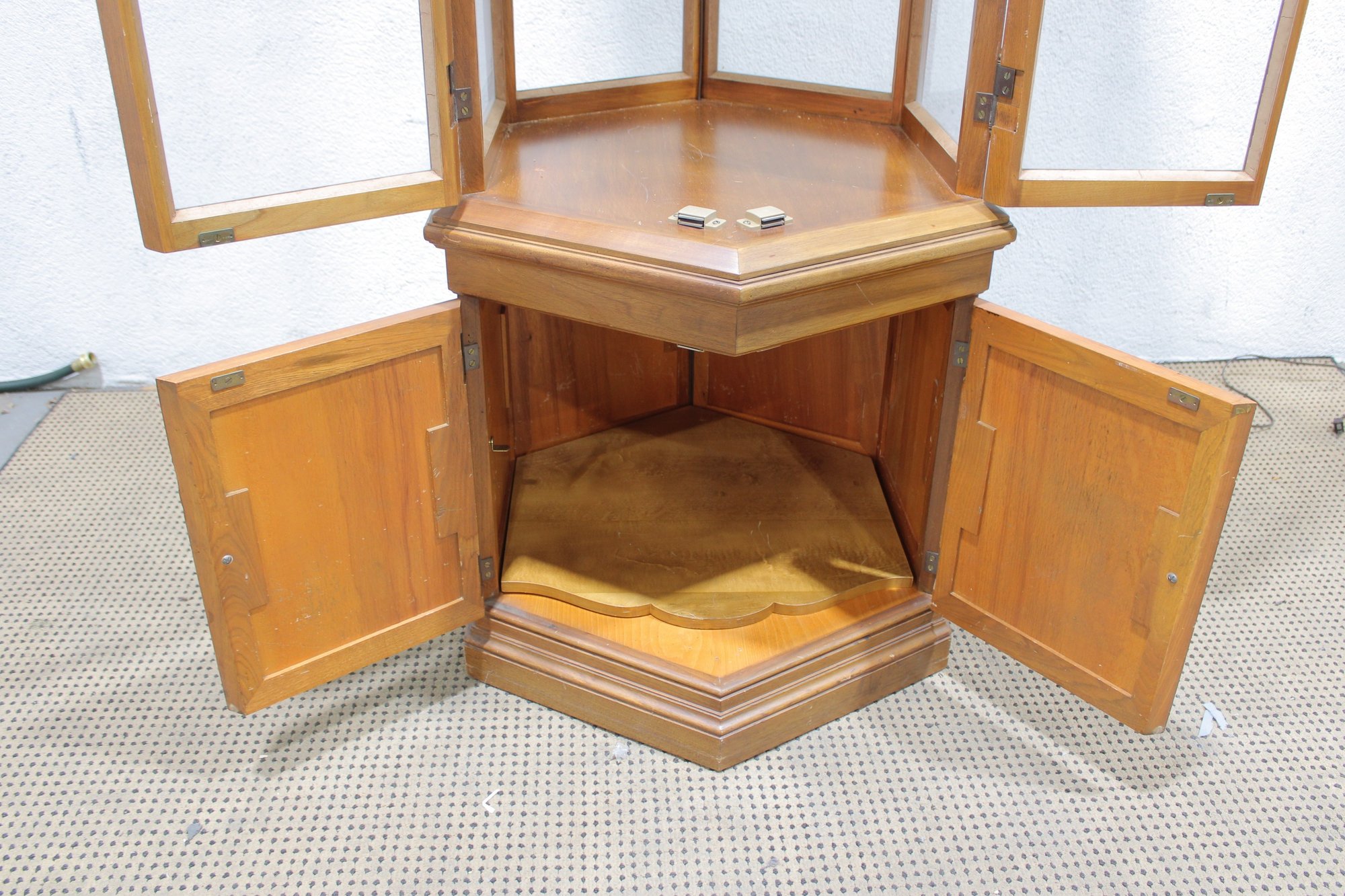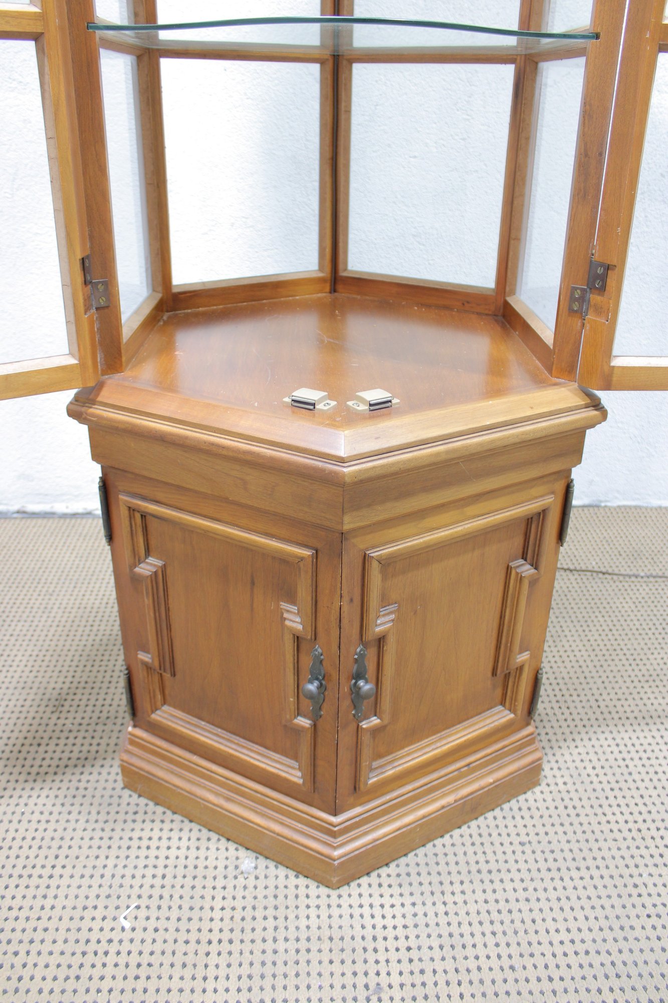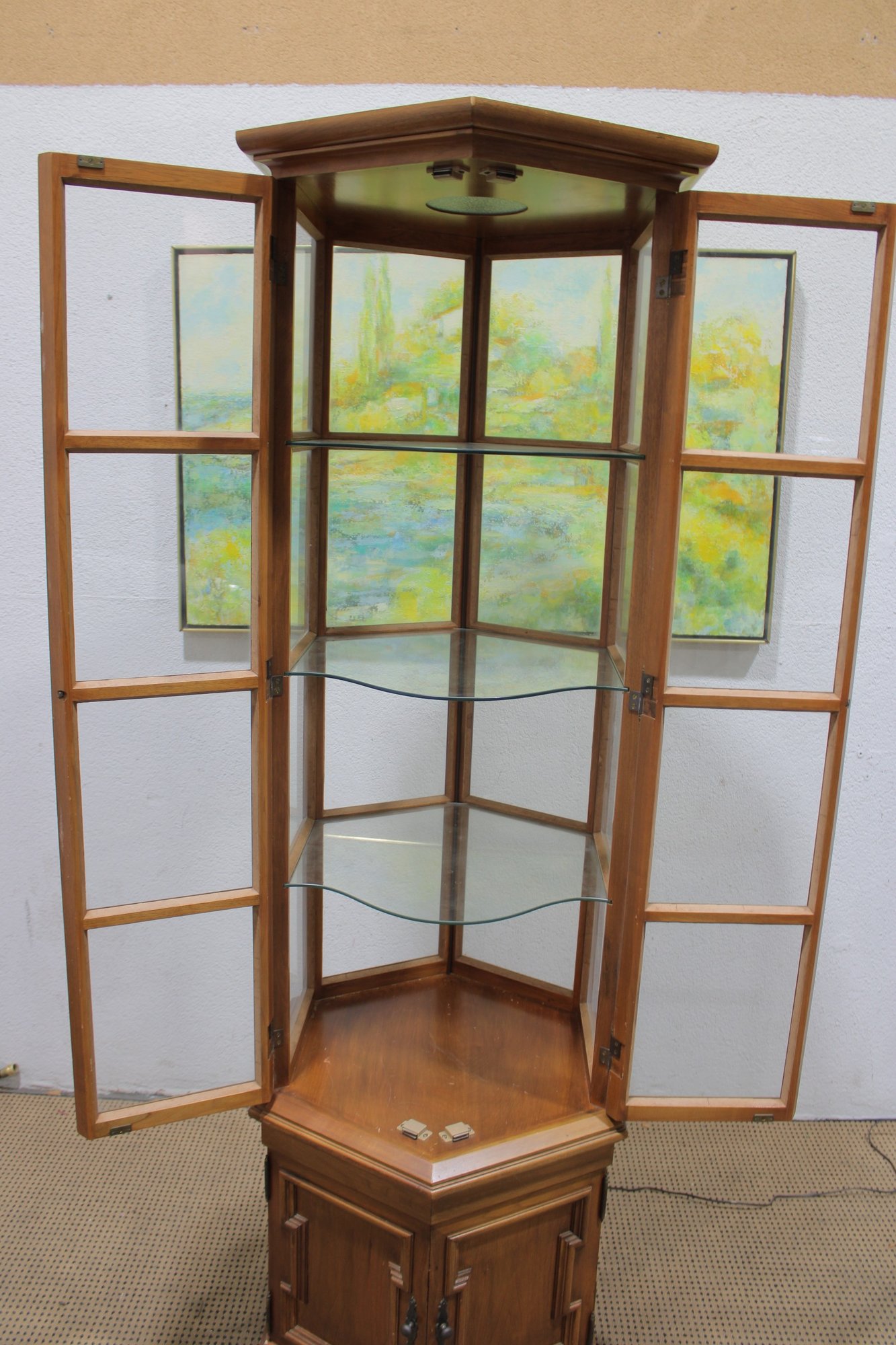 this tall corner curio cabinet is designed to showcase your favorite collectibles, antiques, or décor pieces in style. Standing an impressive 77 inches high, the cabinet features a multi-pane glass display with a built-in interior light that beautifully illuminates your items from above.