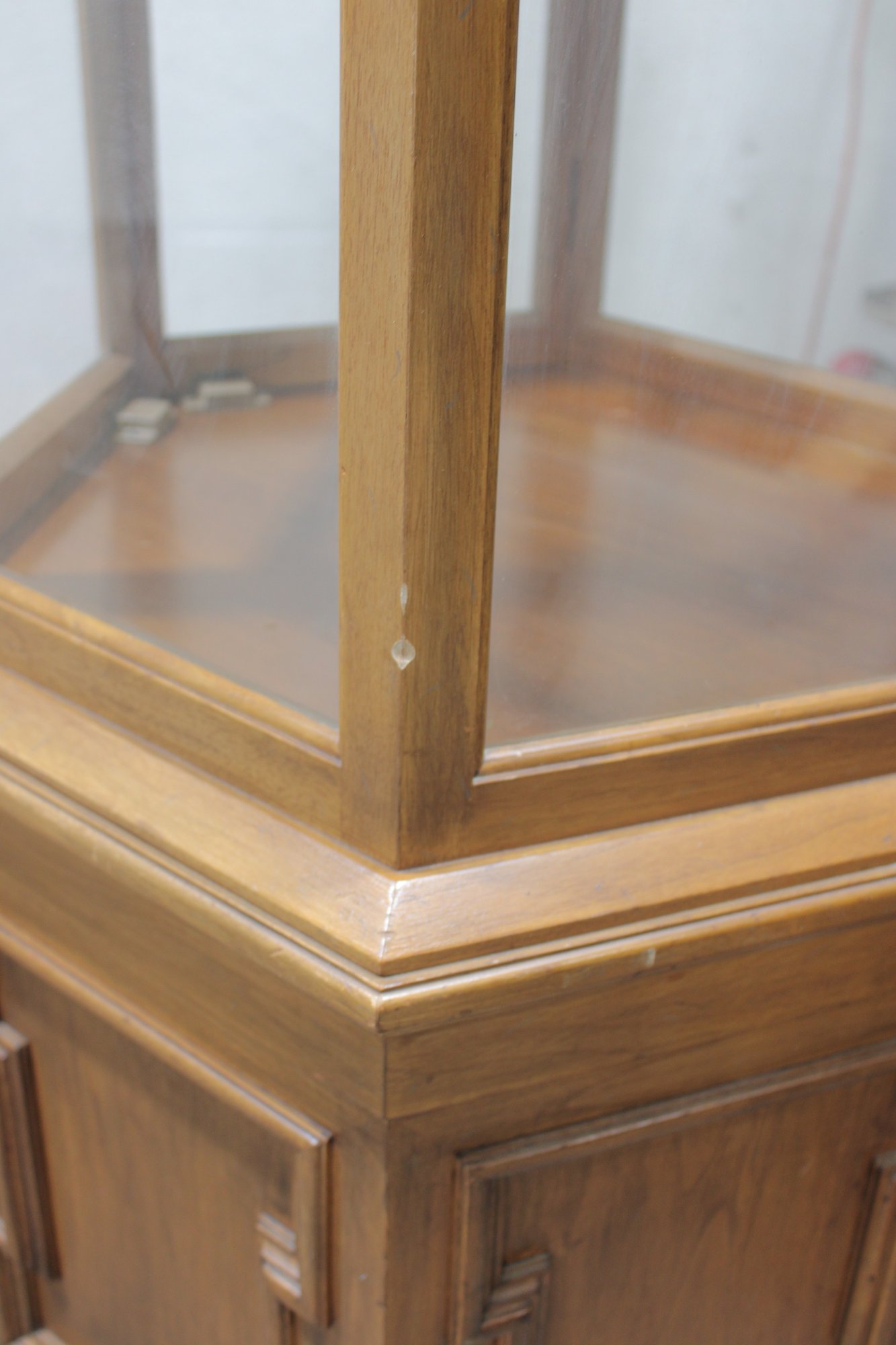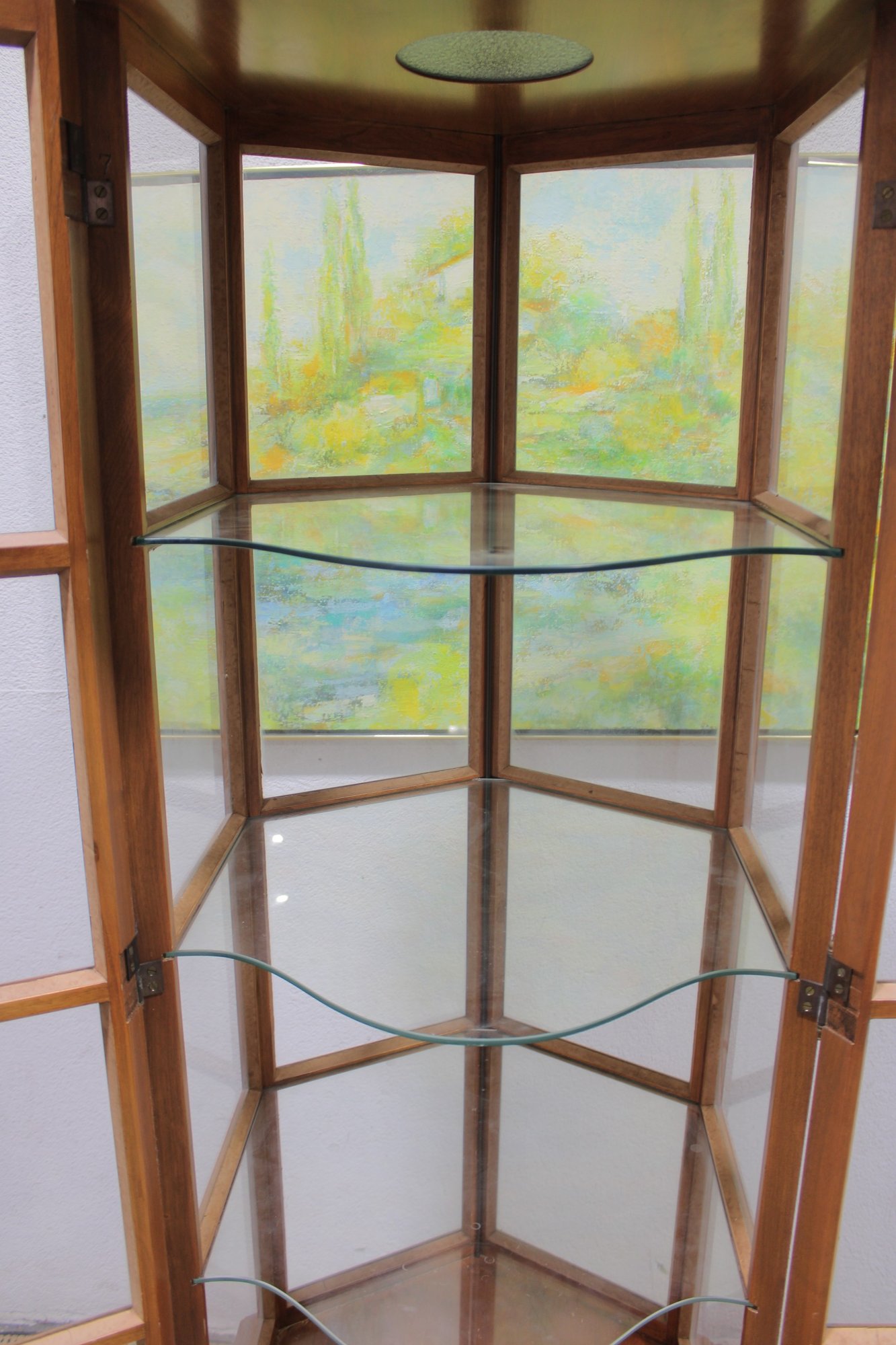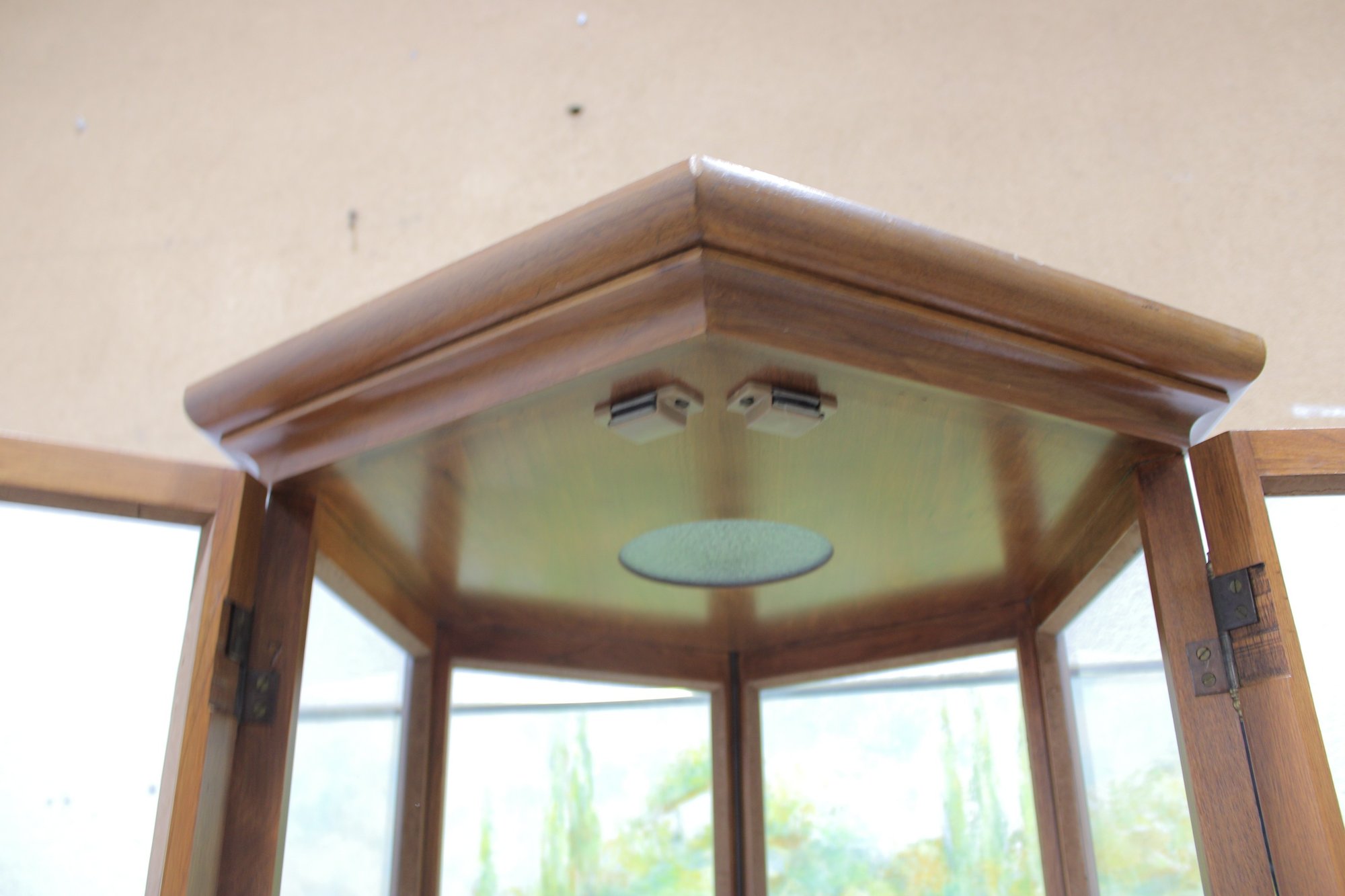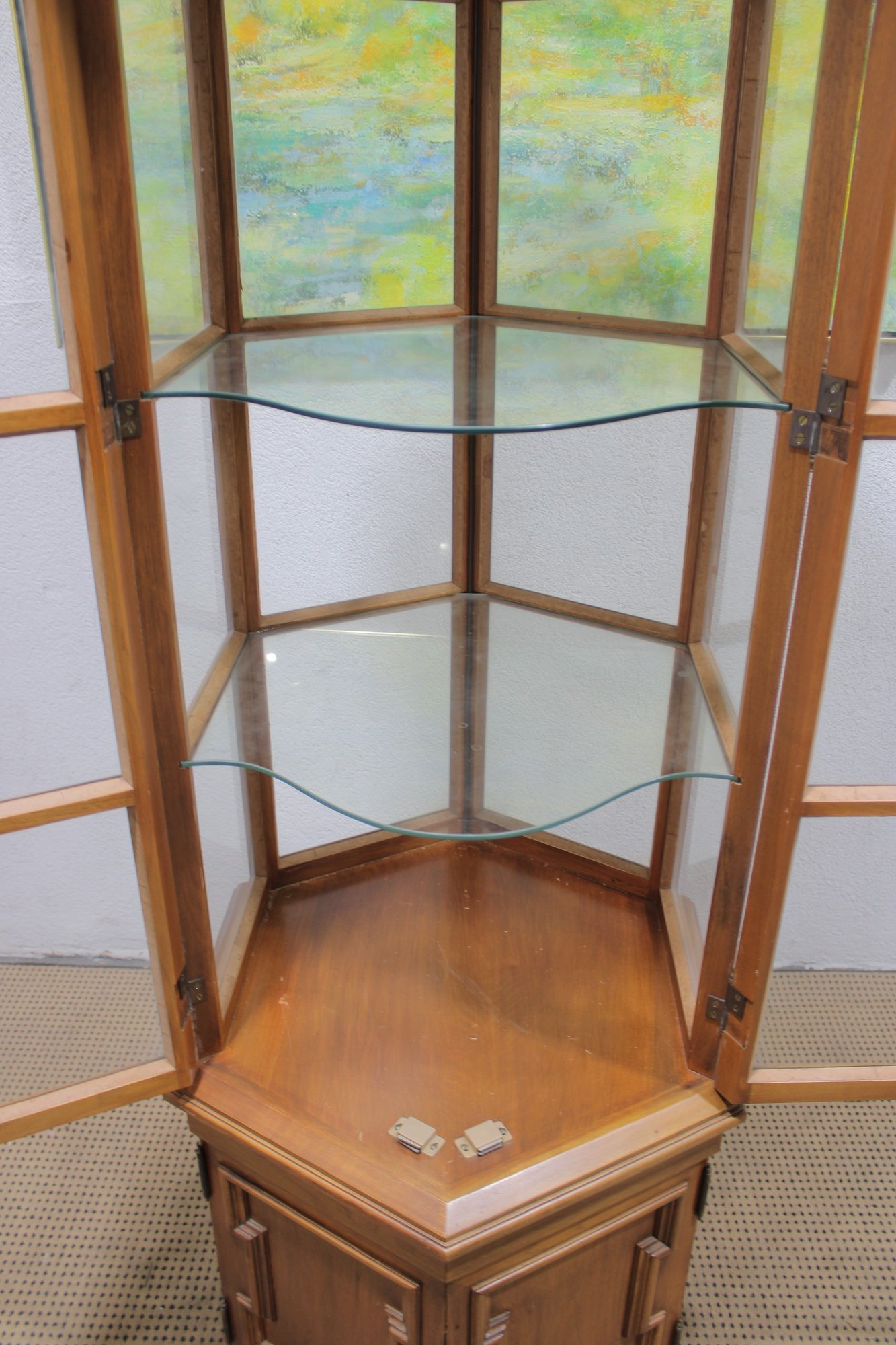 this tall corner curio cabinet is designed to showcase your favorite collectibles, antiques, or décor pieces in style. Standing an impressive 77 inches high, the cabinet features a multi-pane glass display with a built-in interior light that beautifully illuminates your items from above.