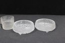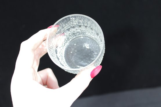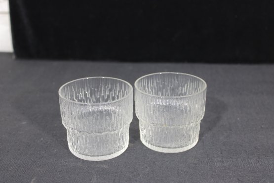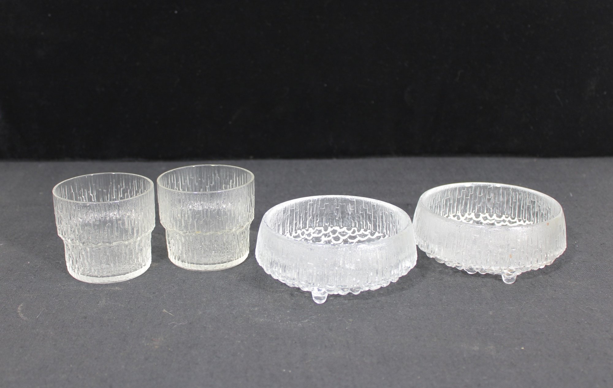This lot includes two small footed bowls and two double old fashioned glasses, all showcasing the signature drip-textured design that defines the Ultima Thule line.