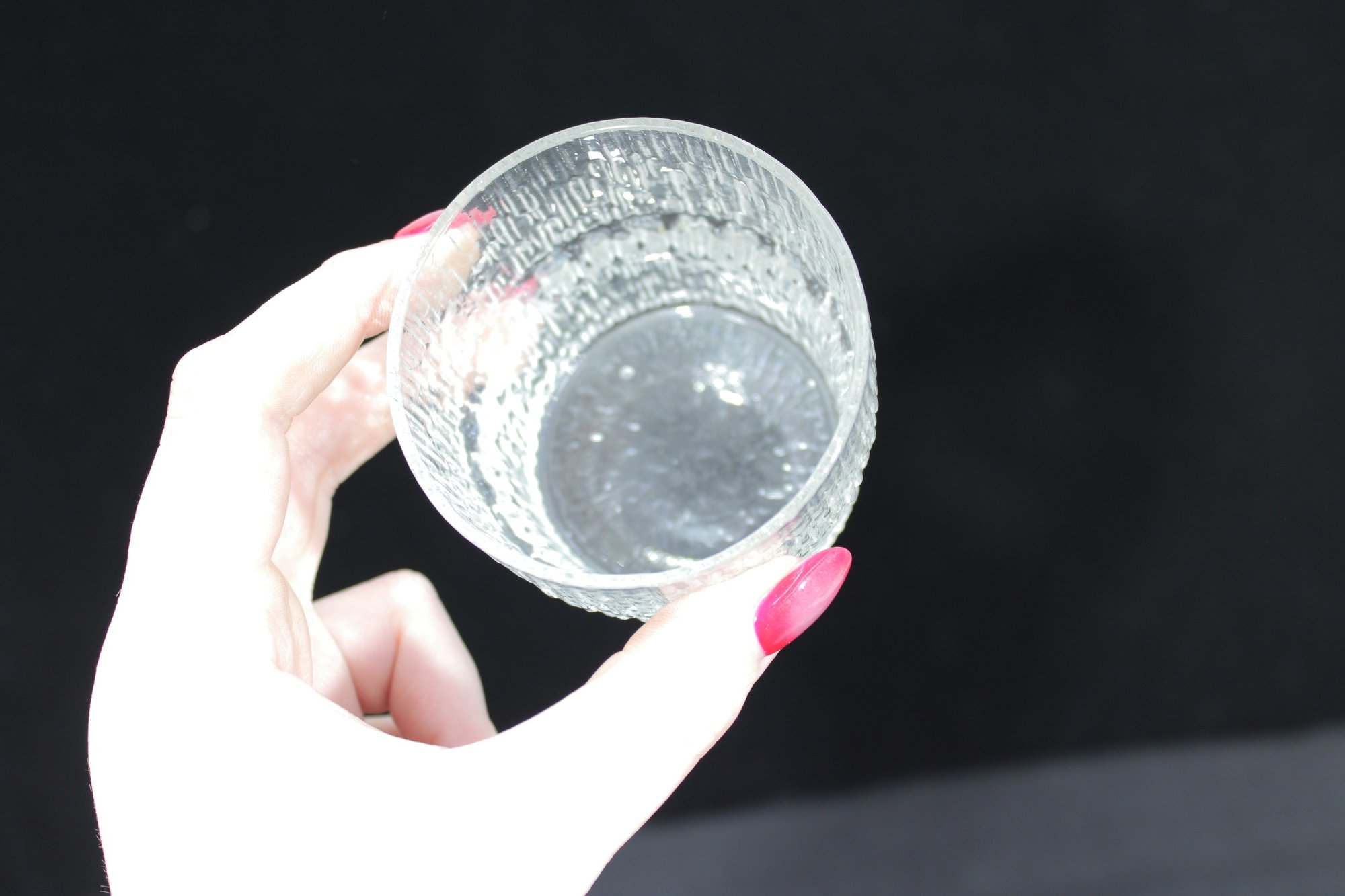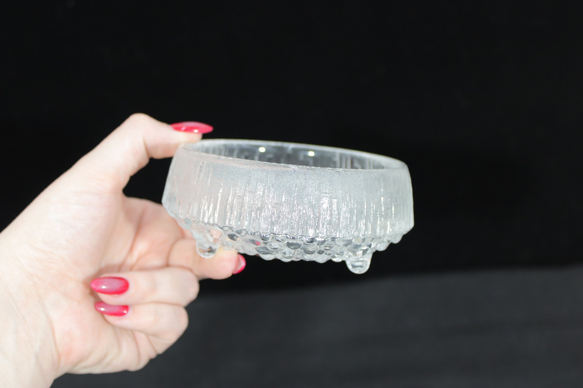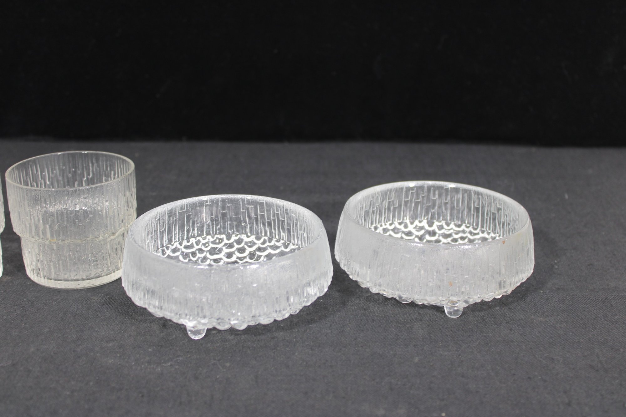 Iconic mid-century modern glassware set designed by Tapio Wirkkala for Iittala, featuring the highly collectible Ultima Thule pattern. Inspired by melting ice in Lapland, the textured surface creates a striking, organic look that beautifully diffuses light.