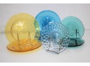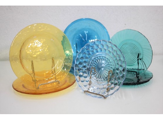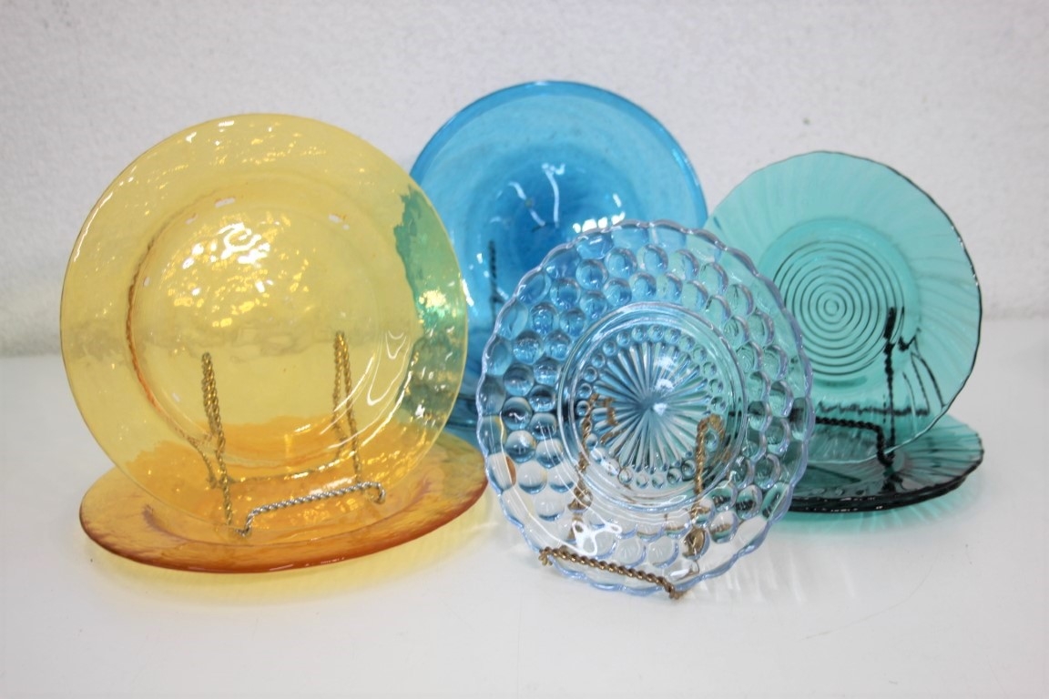 Terrific Group Lot Of Colorful Pressed Depression Glass Plates