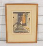 The print appears to be signed (lower right) and includes a titled margin below the image. It is presented in a simple wood frame with matting, complementing the warm tones of the artwork.