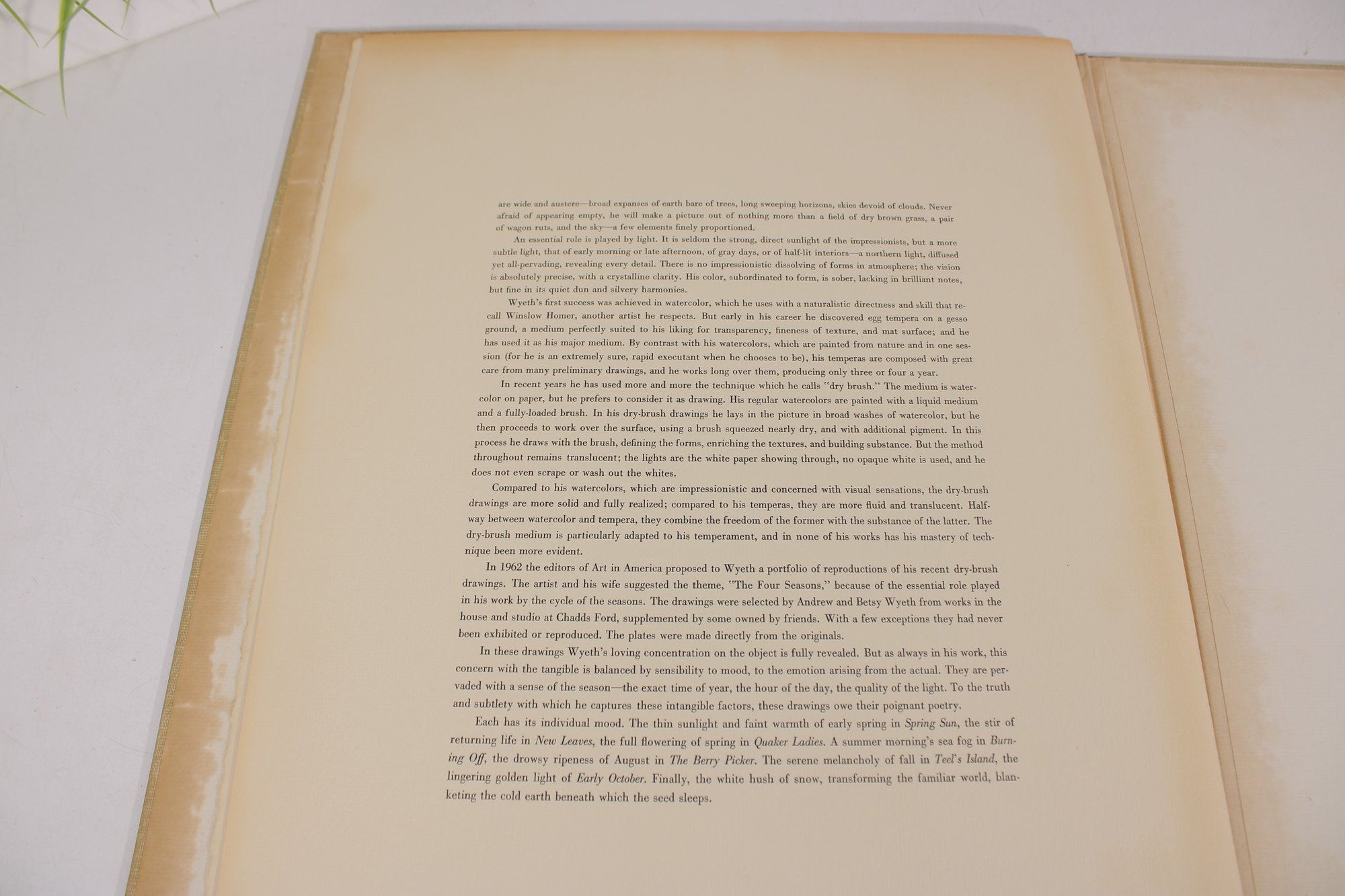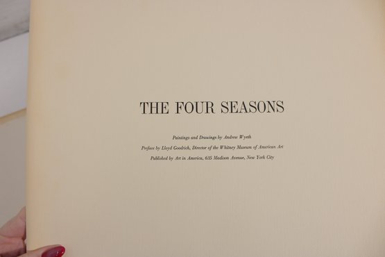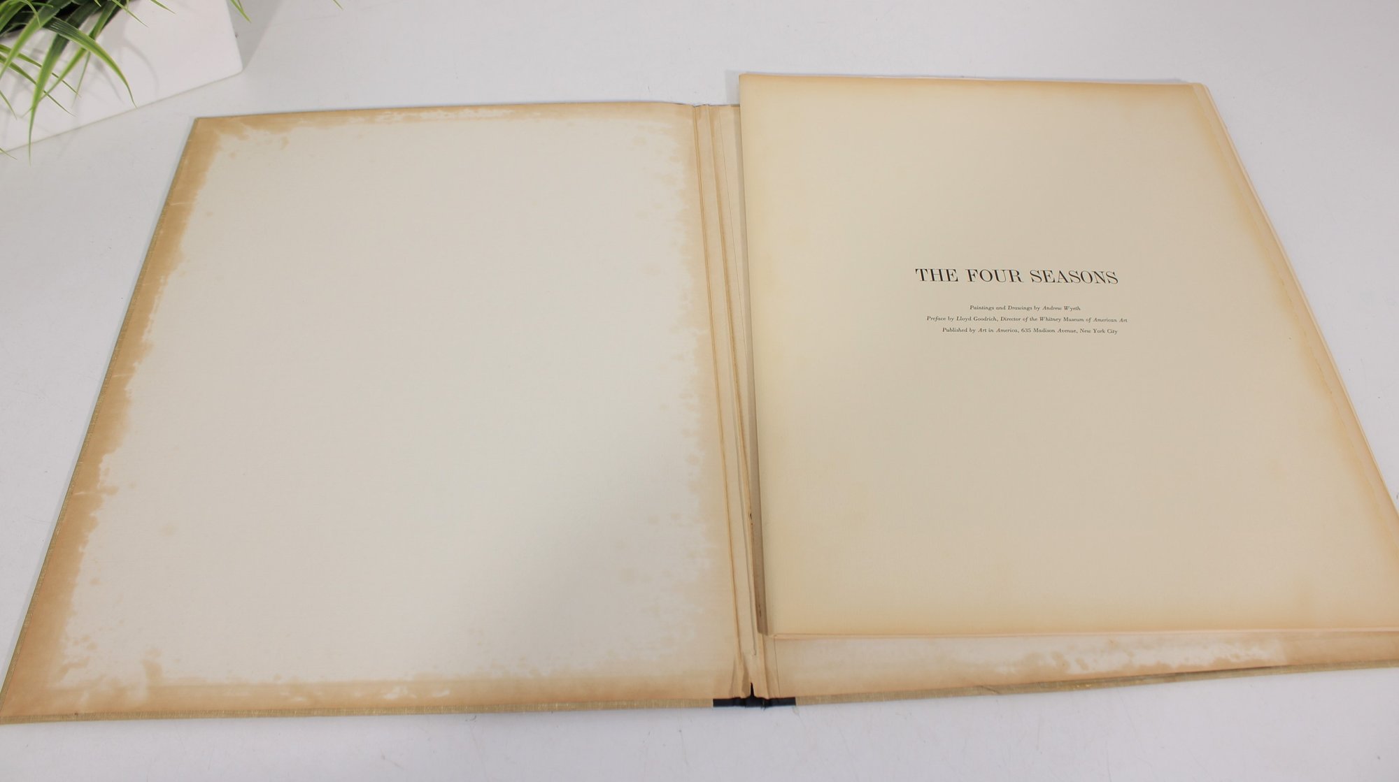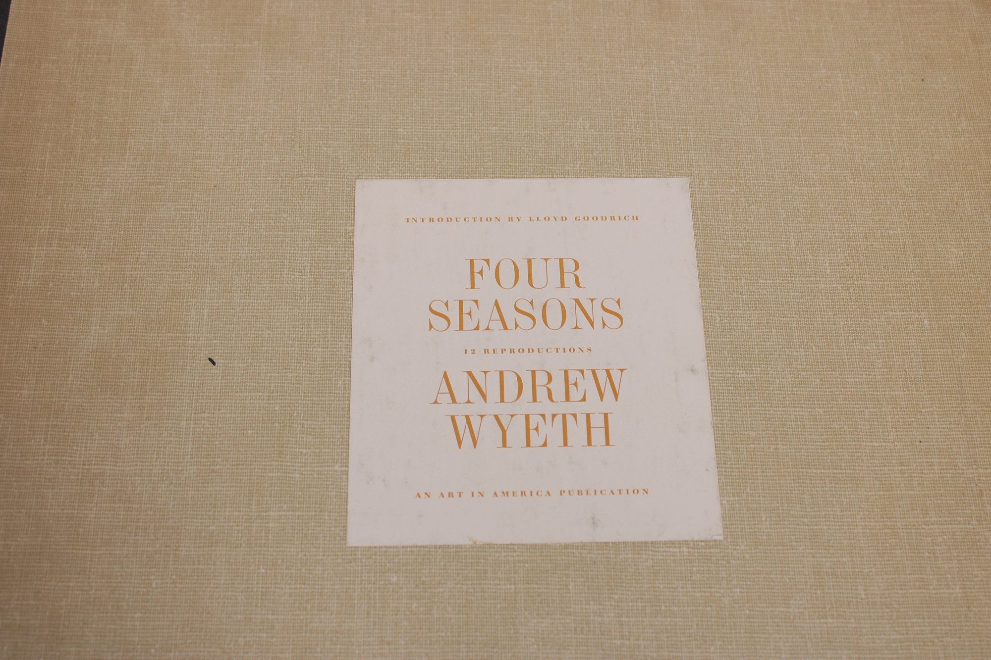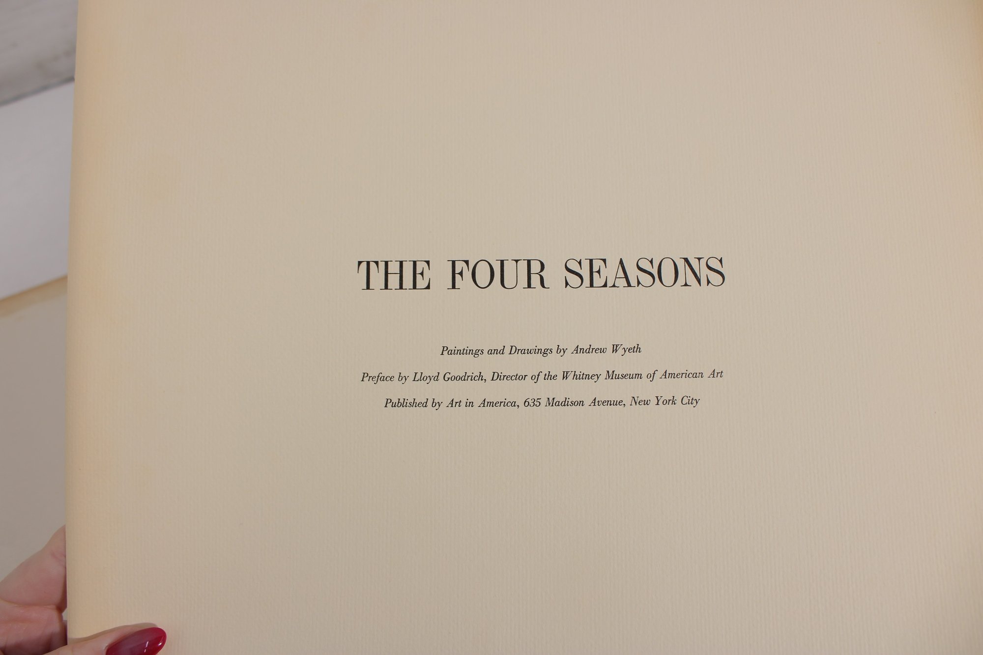 Rare and collectible art portfolio titled The Four Seasons by renowned American artist Andrew Wyeth. Originally published in 1950, this folio contains a selection of beautifully reproduced prints capturing Wyeth’s signature realism and evocative seasonal landscapes.