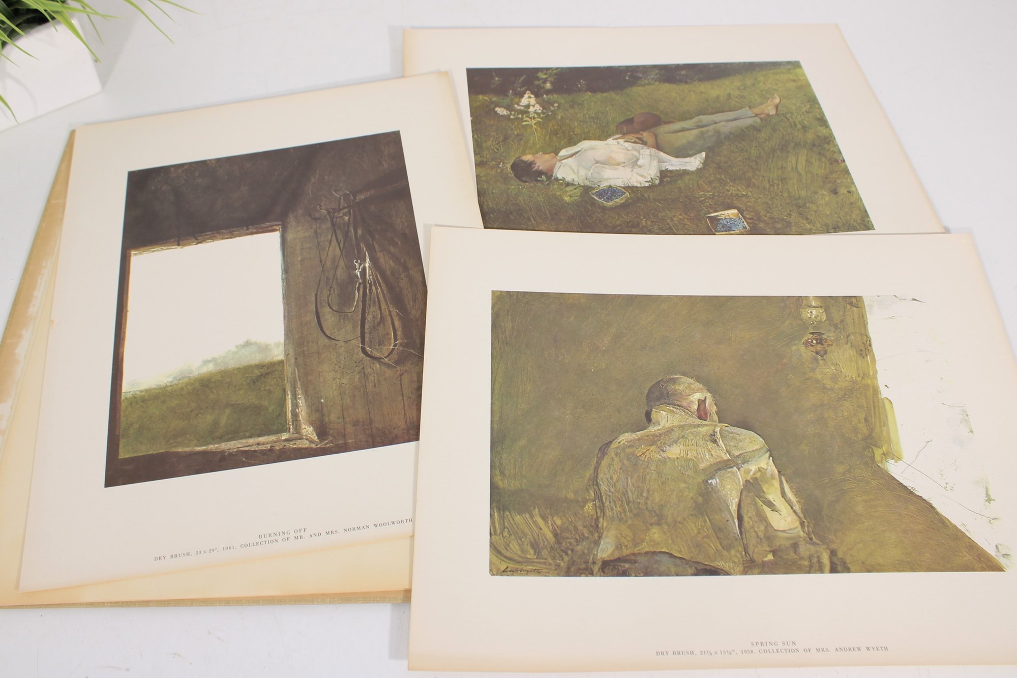 The set includes multiple loose prints housed in the original folio cover, featuring a mix of color and black-and-white works. Subjects include rural scenes, interiors, nature studies, and figure compositions, all reflecting Wyeth’s distinctive style and attention to detail.