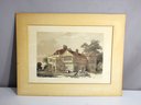 Antique 1854 hand-colored engraving titled "The Hall in the Wood, Lancashire" published by Chapman & Hall, London. This detailed artwork is based on a sketch by J.D. Dowd and illustrated by J.D. Harding. The scene depicts a charming English countryside estate with figures engaging in daily activities outside a Tudor-style hall. Framed in a classic matting with vintage patina, this print captures both historical architecture and period attire with exceptional detail. Ideal for collectors of English landscapes or historical engravings.