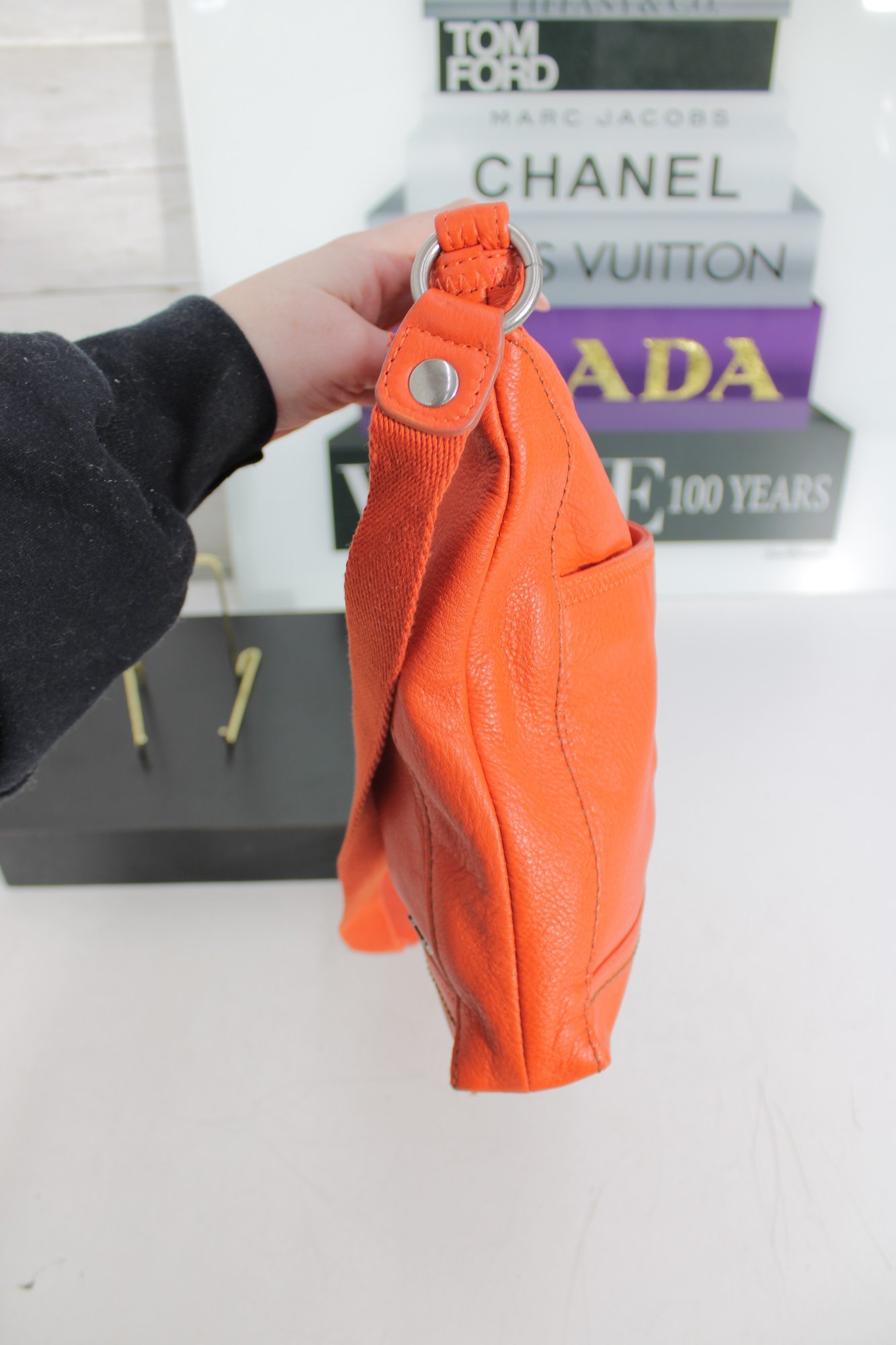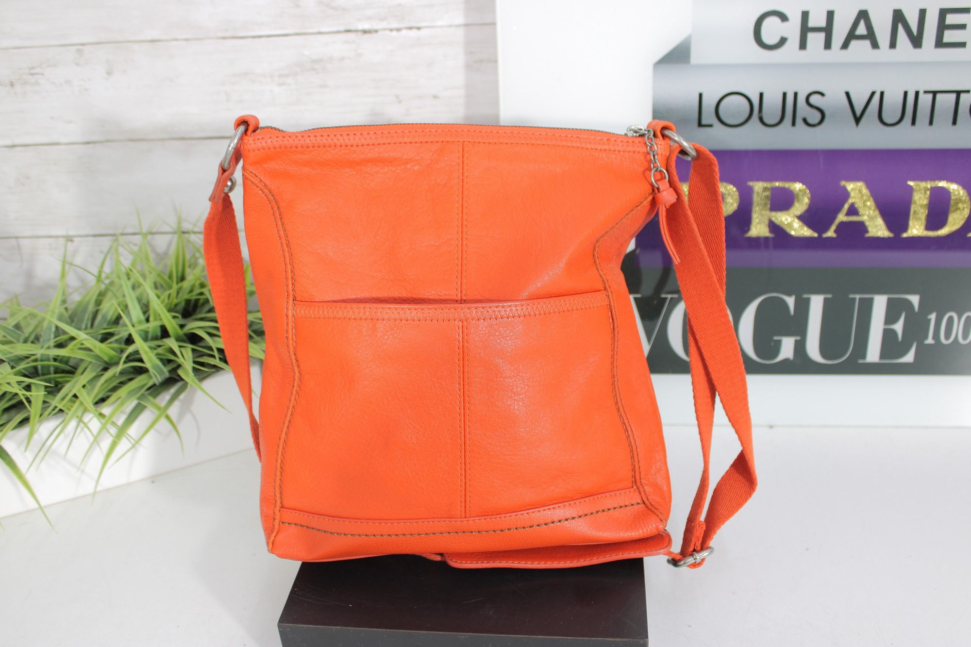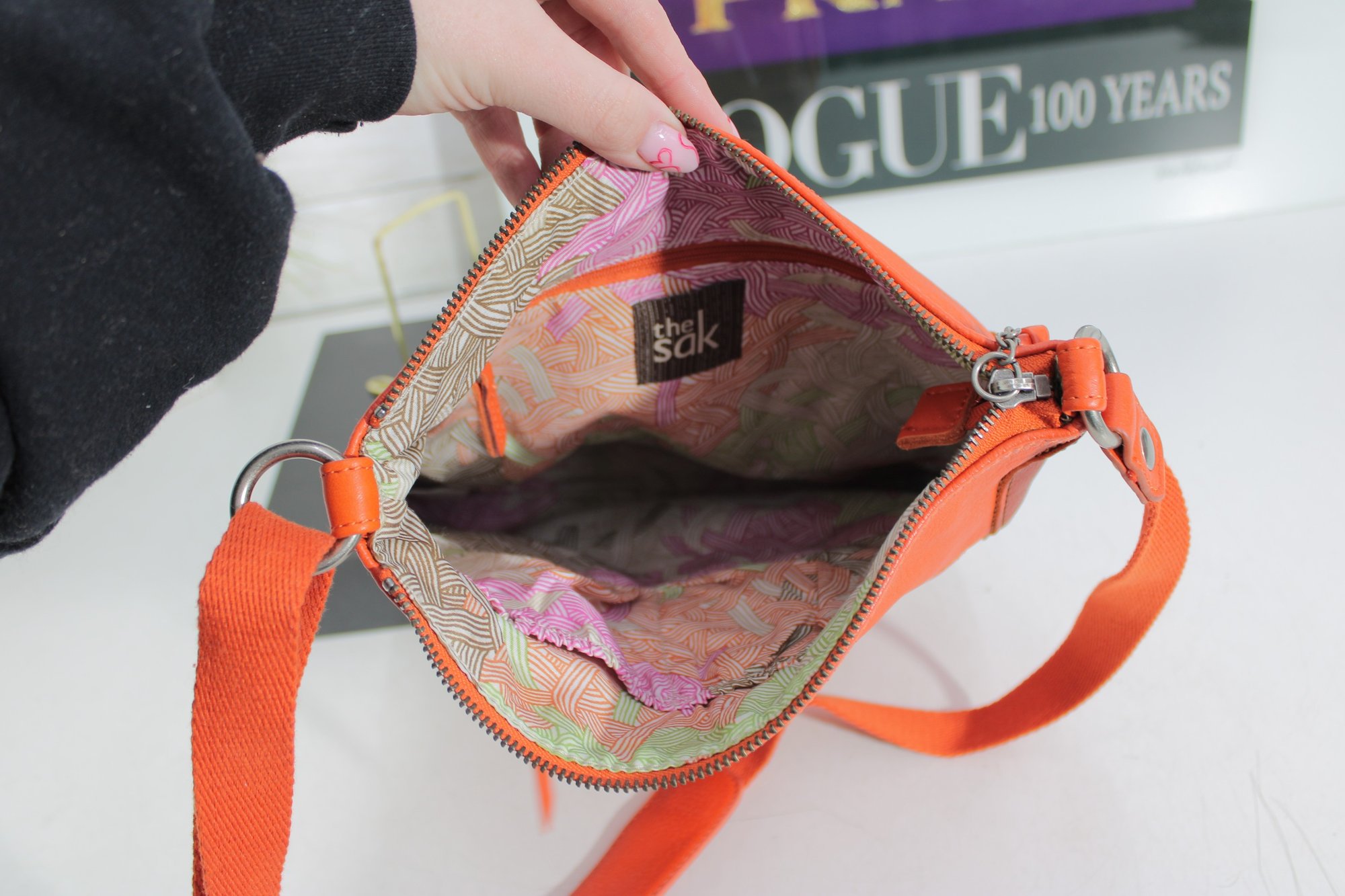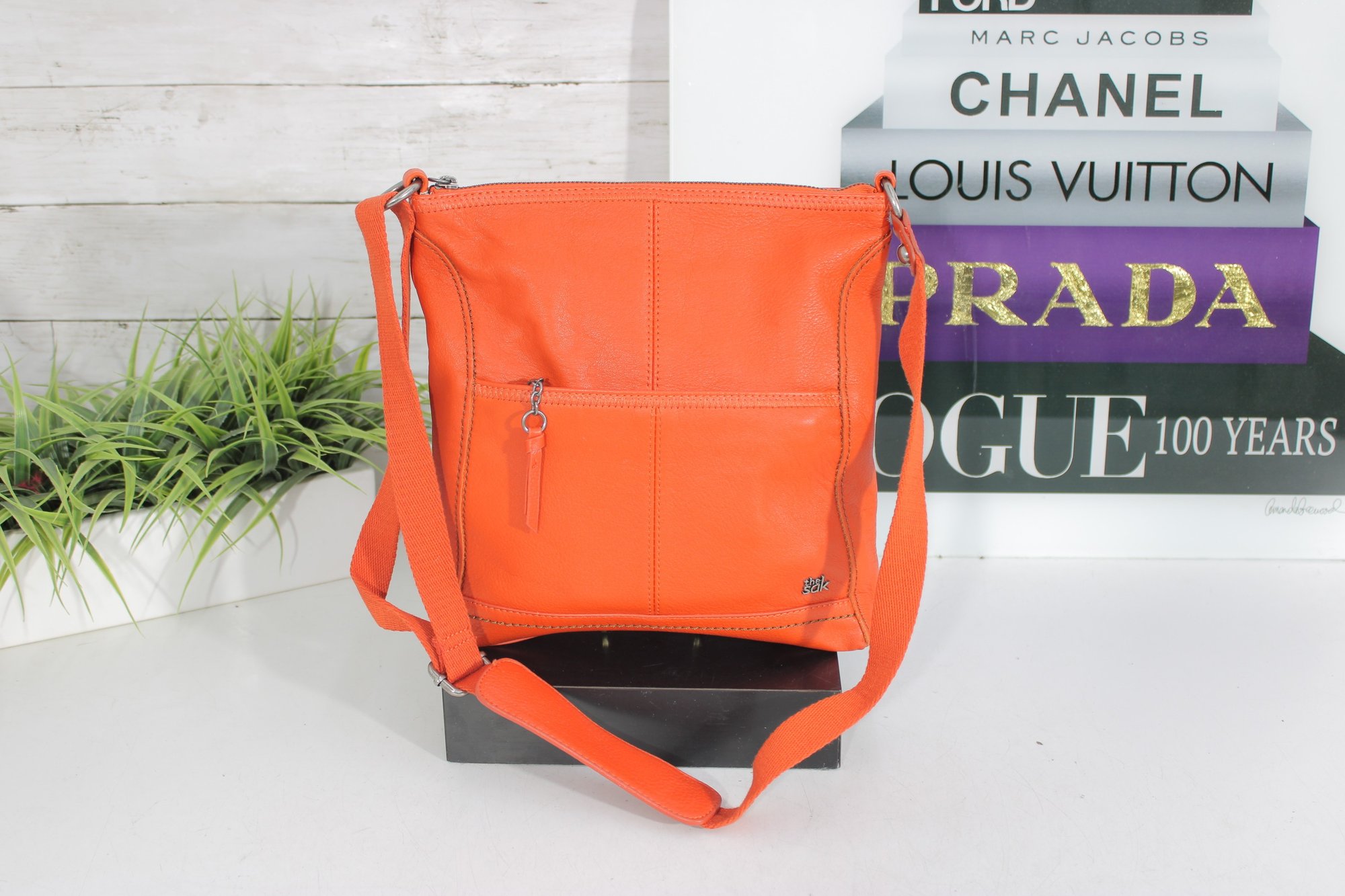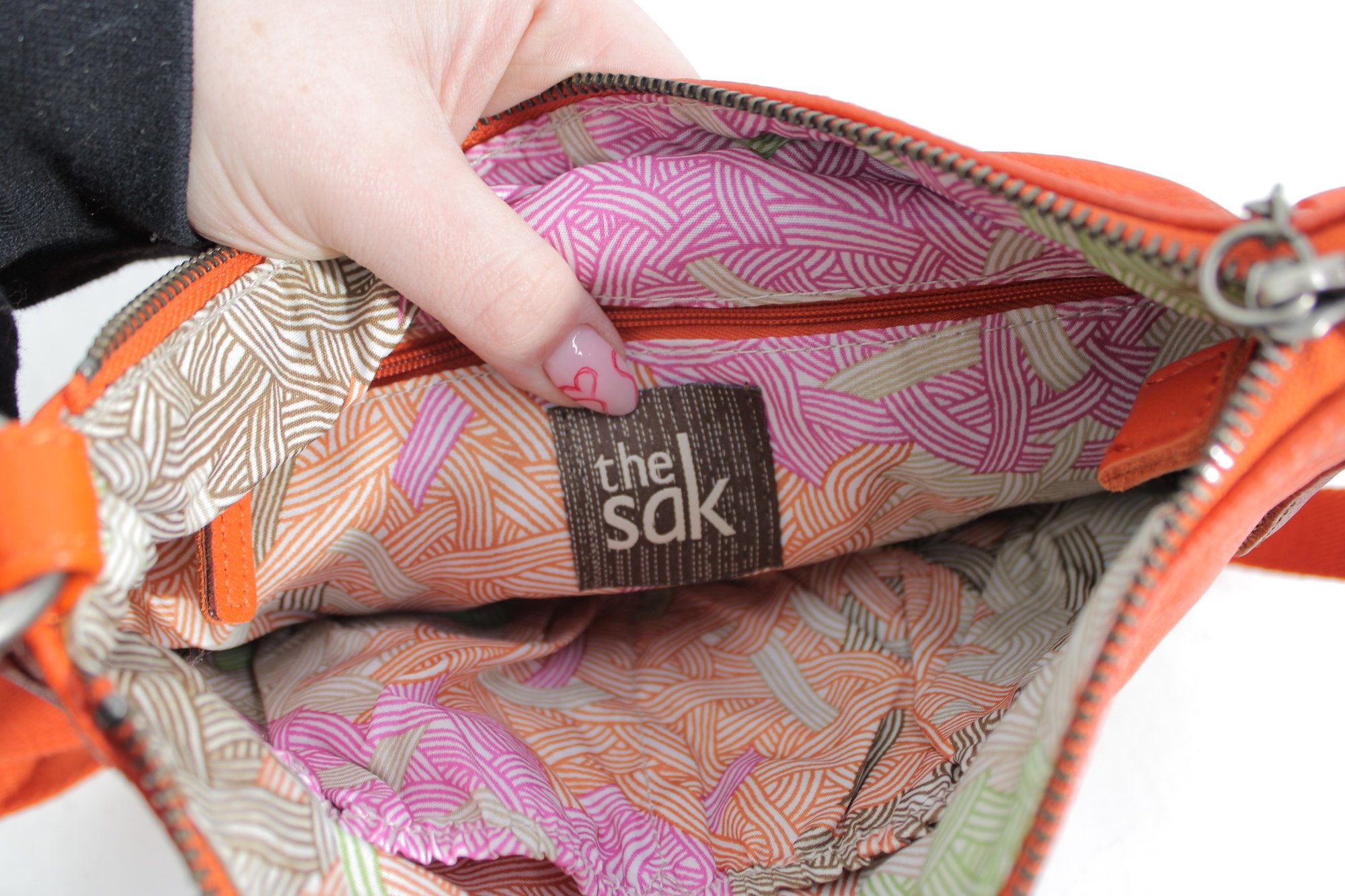 Vibrant and stylish The Sak crossbody bag crafted in bright orange pebbled leather, perfect for adding a bold pop of color to any outfit. Designed for everyday functionality, this lightweight handbag features a relaxed silhouette with multiple pockets for easy organization.