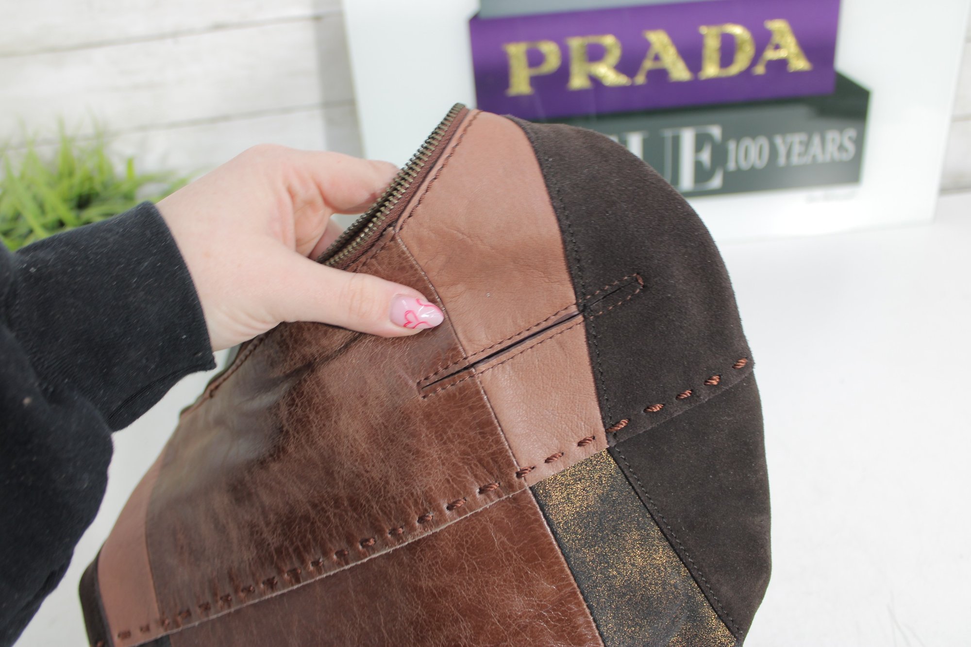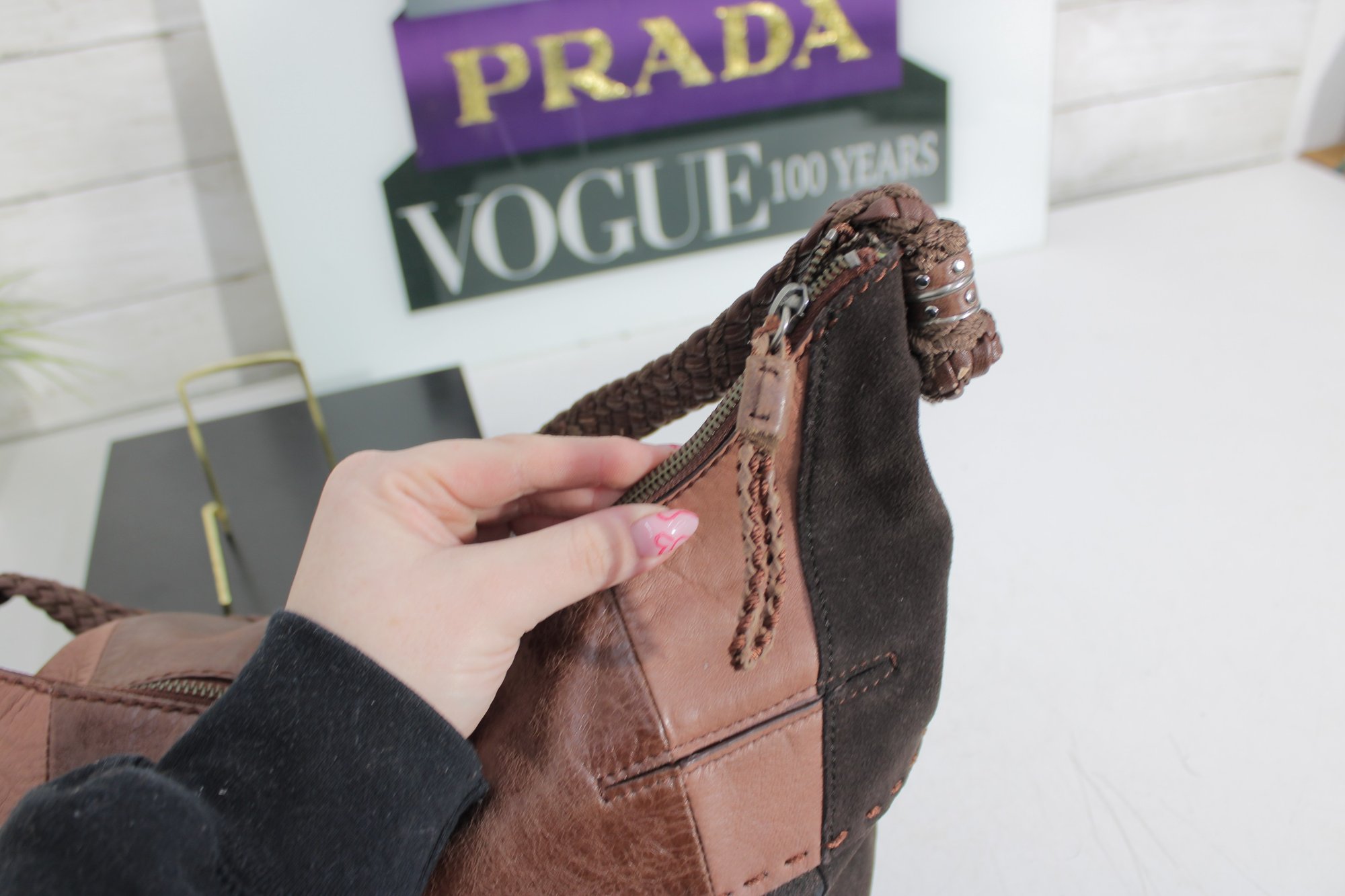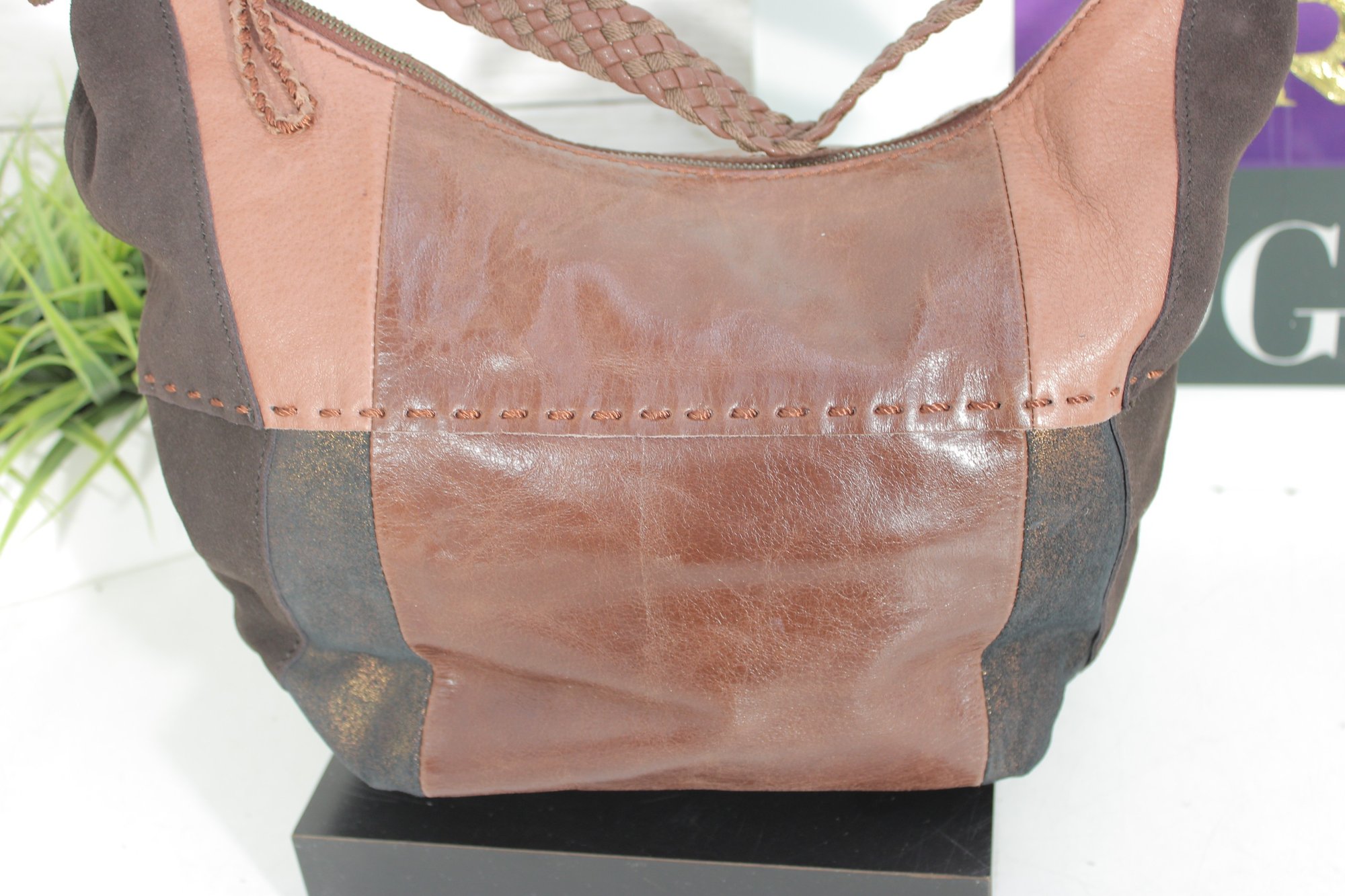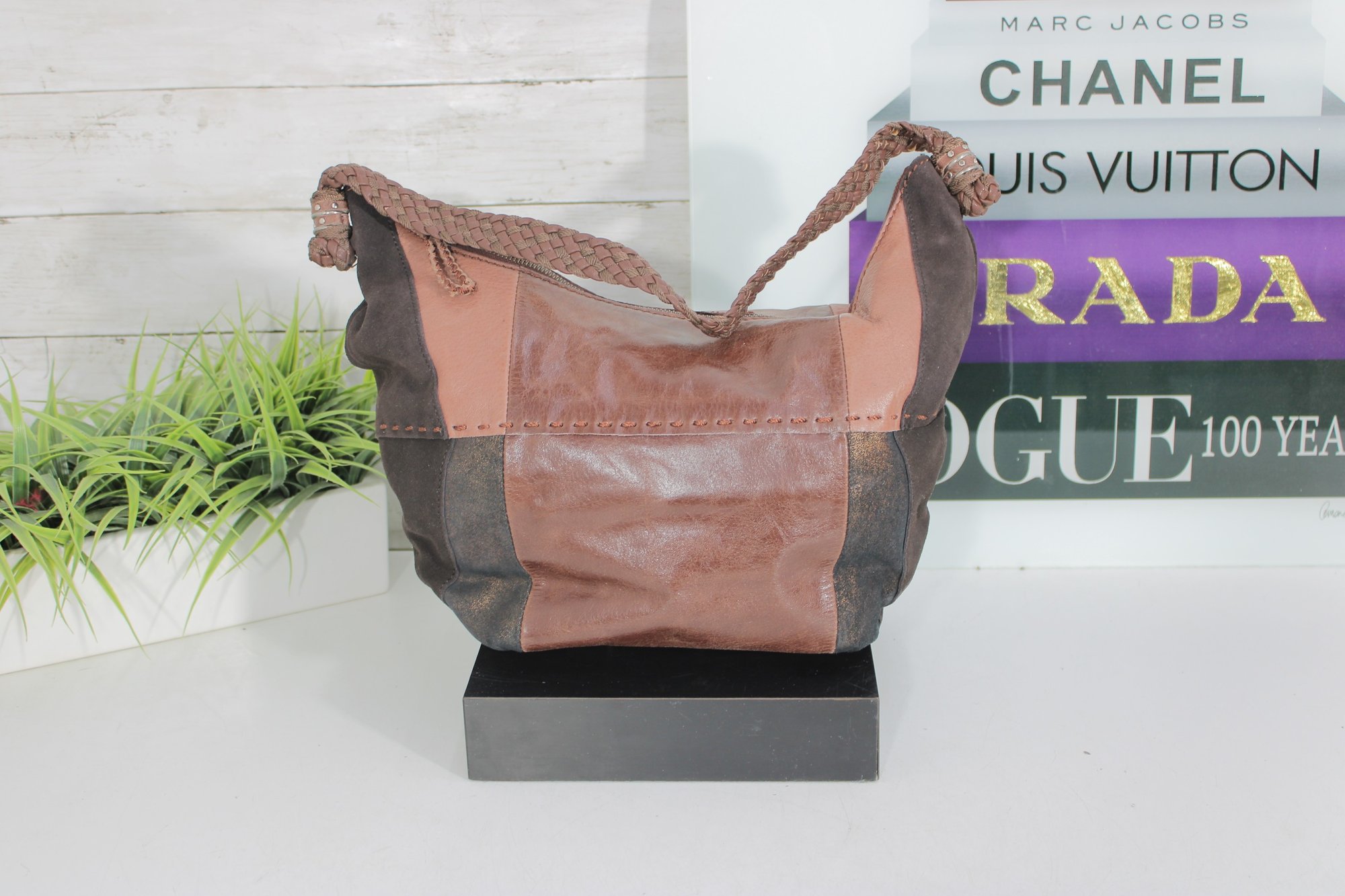 Stylish and relaxed The Sak hobo shoulder bag featuring a unique multi-tone patchwork leather design in warm brown shades. The soft, slouchy silhouette is complemented by a distinctive braided shoulder strap, giving this bag a casual boho-inspired look perfect for everyday wear.