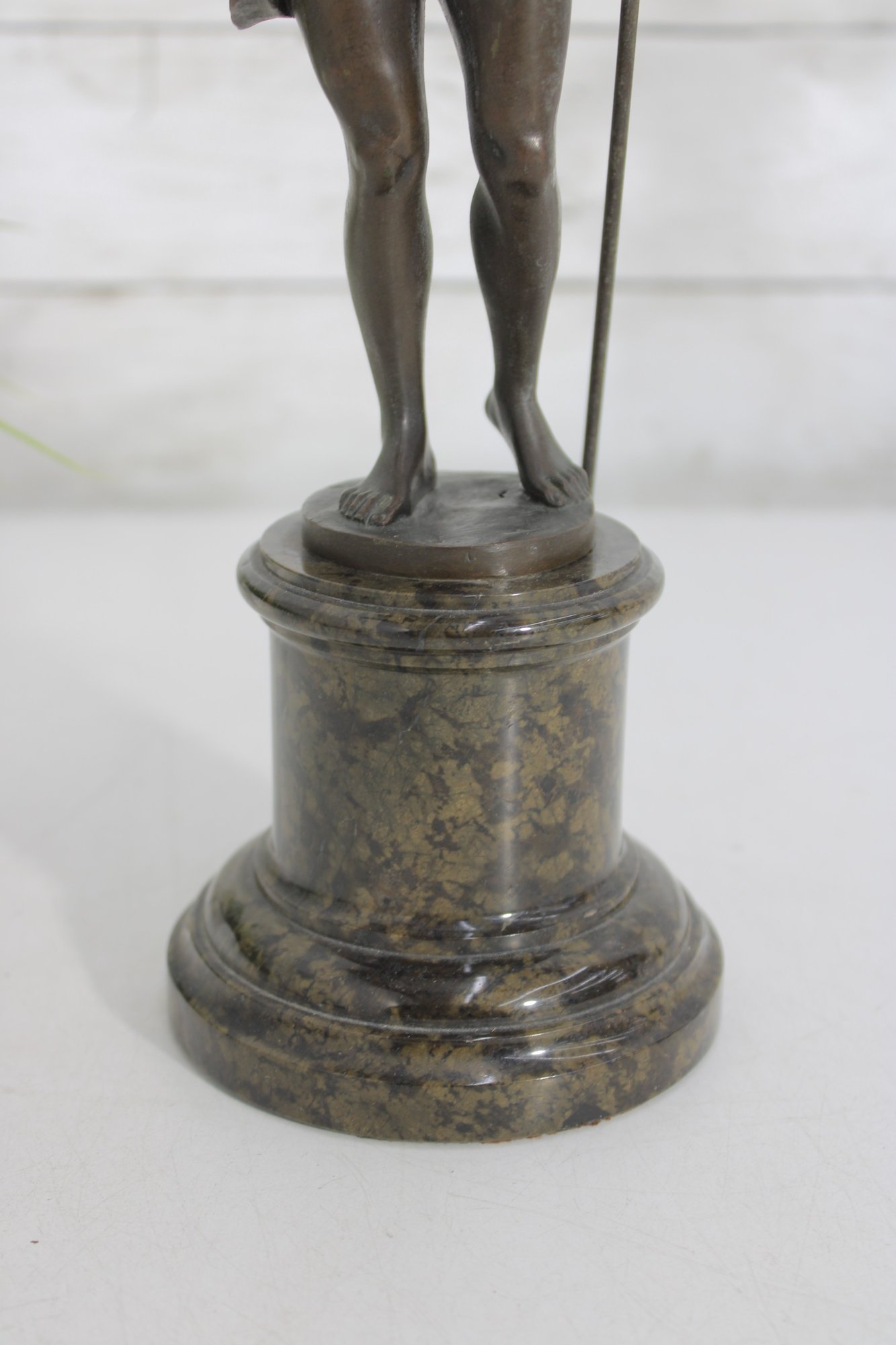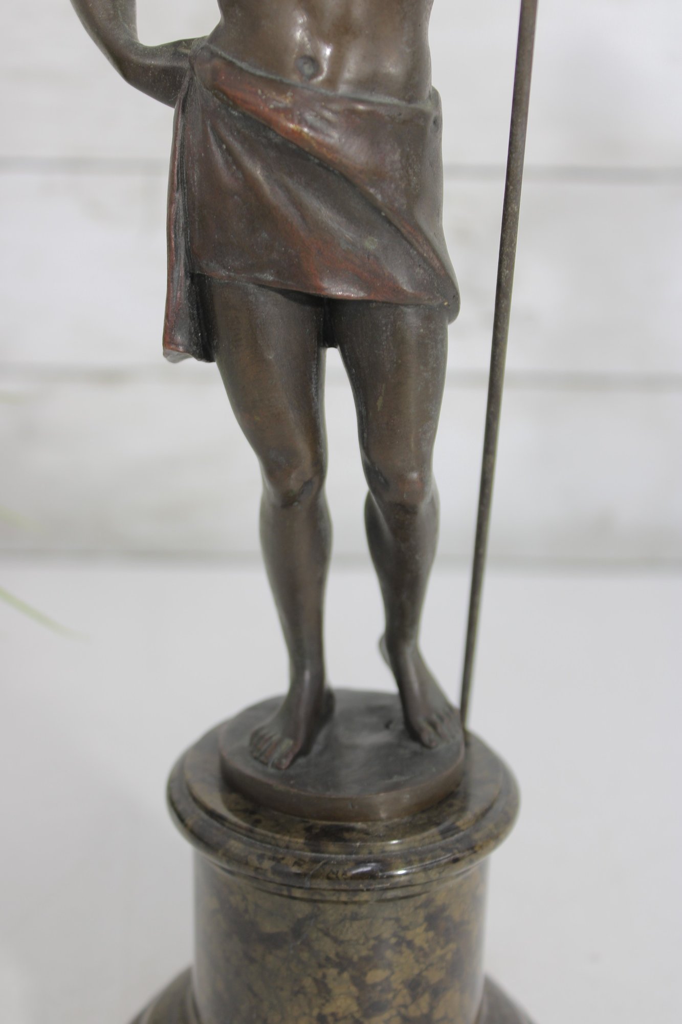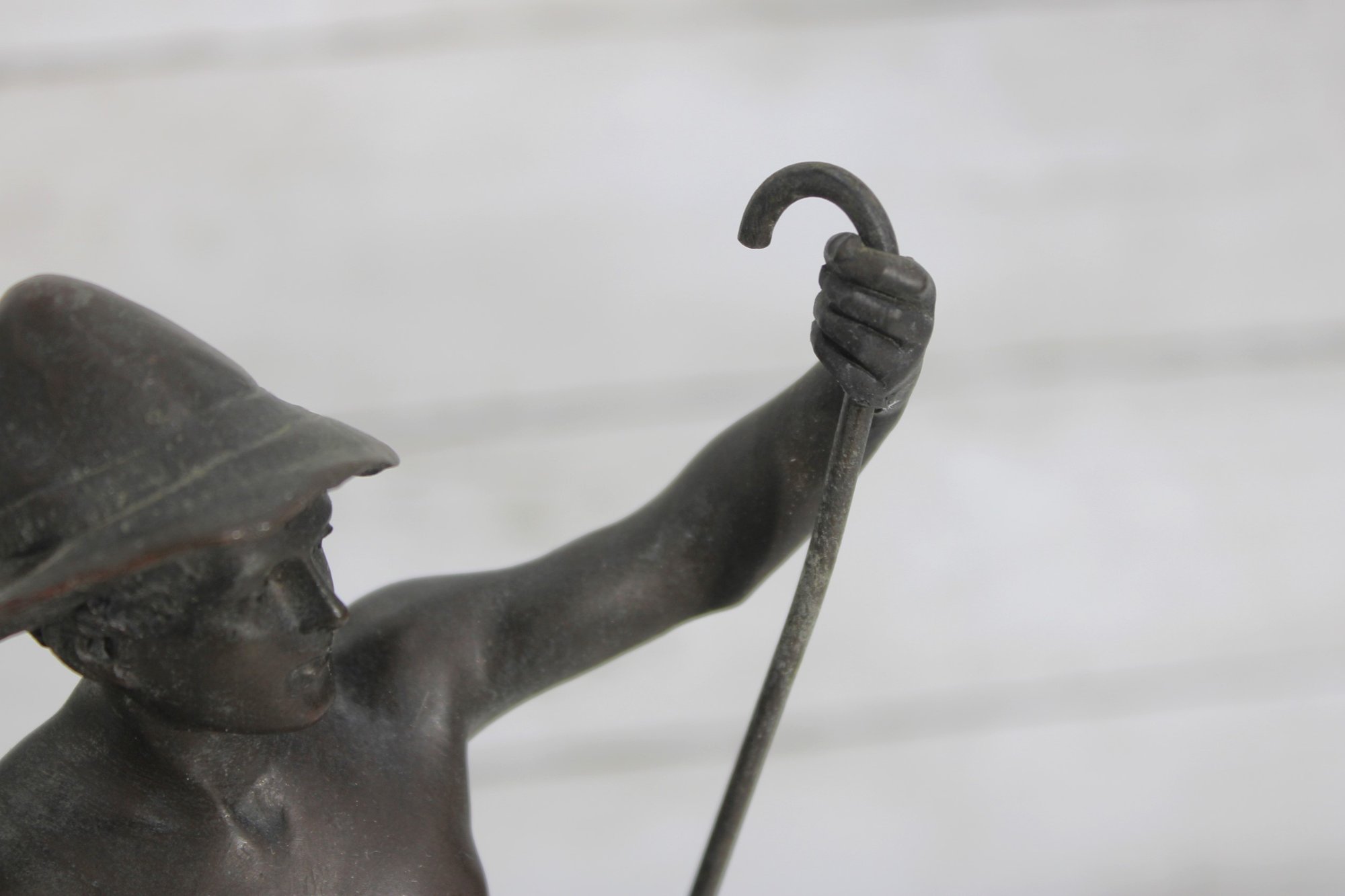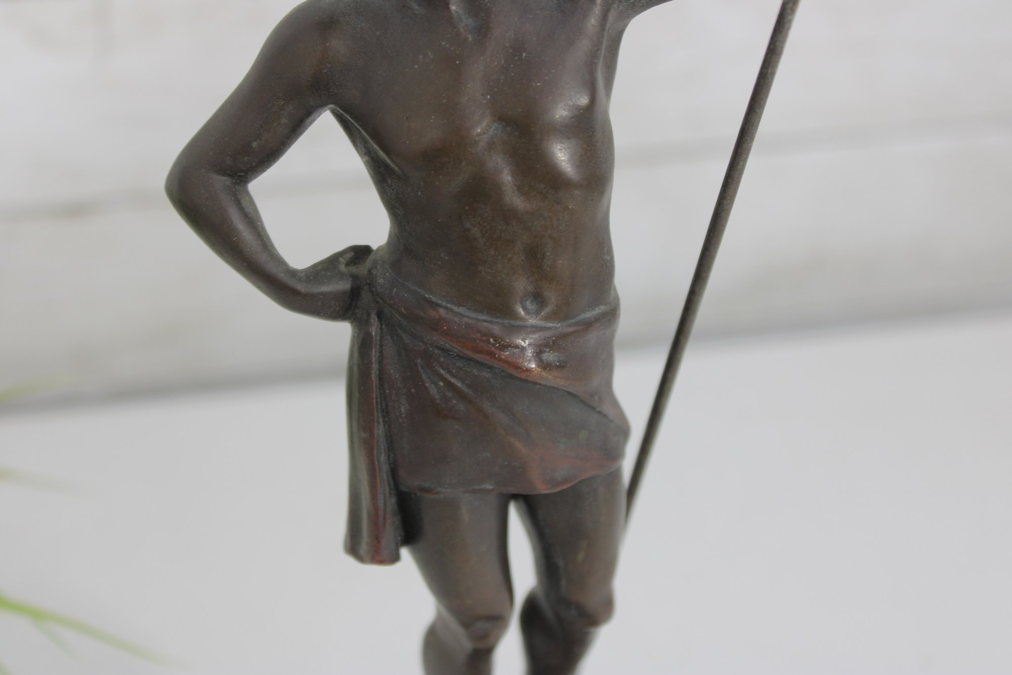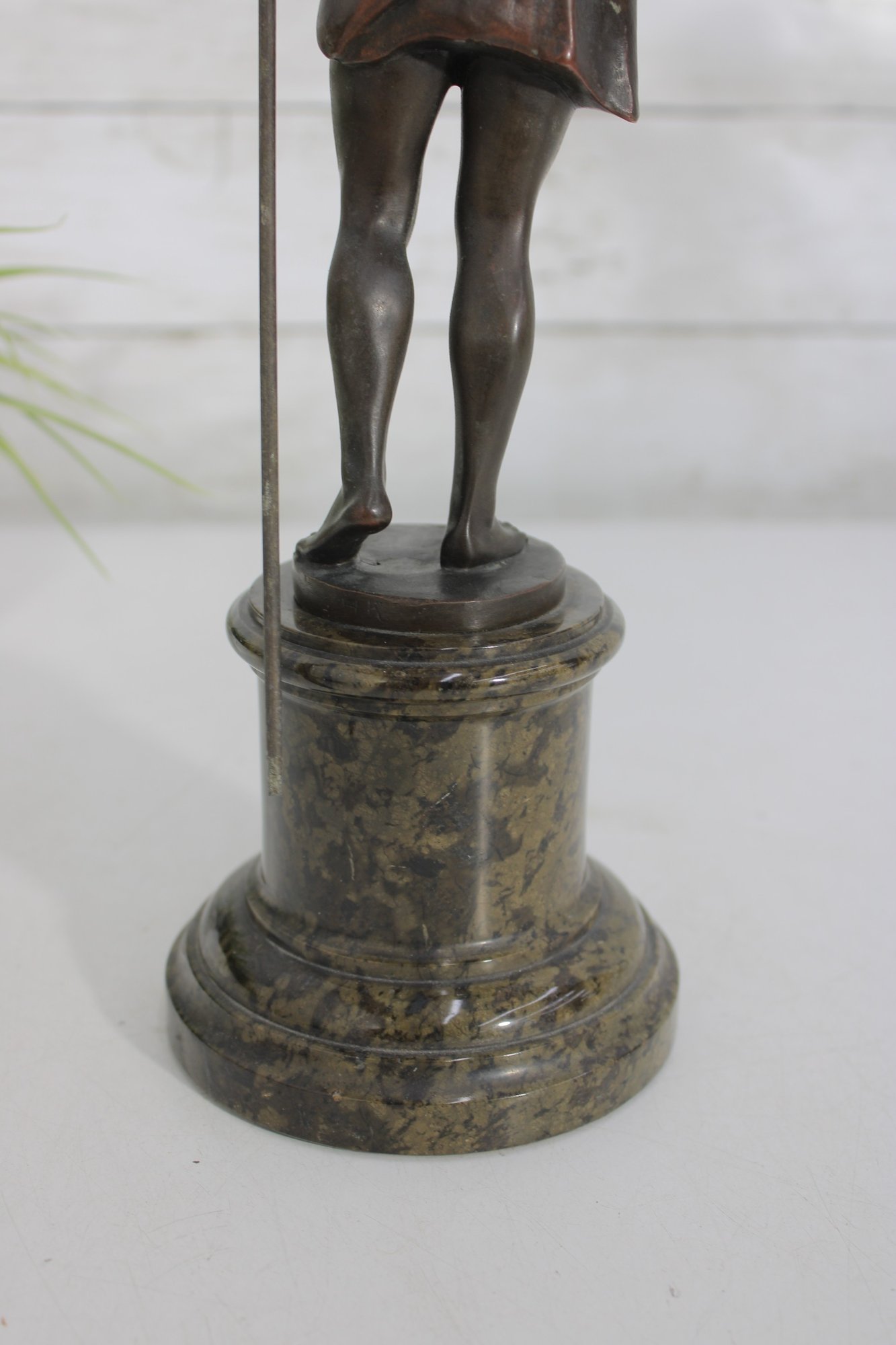 here is “The Shepherd,” a finely detailed patinated bronze sculpture depicting a classical shepherd figure standing confidently with staff in hand. The composition captures a timeless pastoral elegance, blending naturalism with classical proportion and movement.