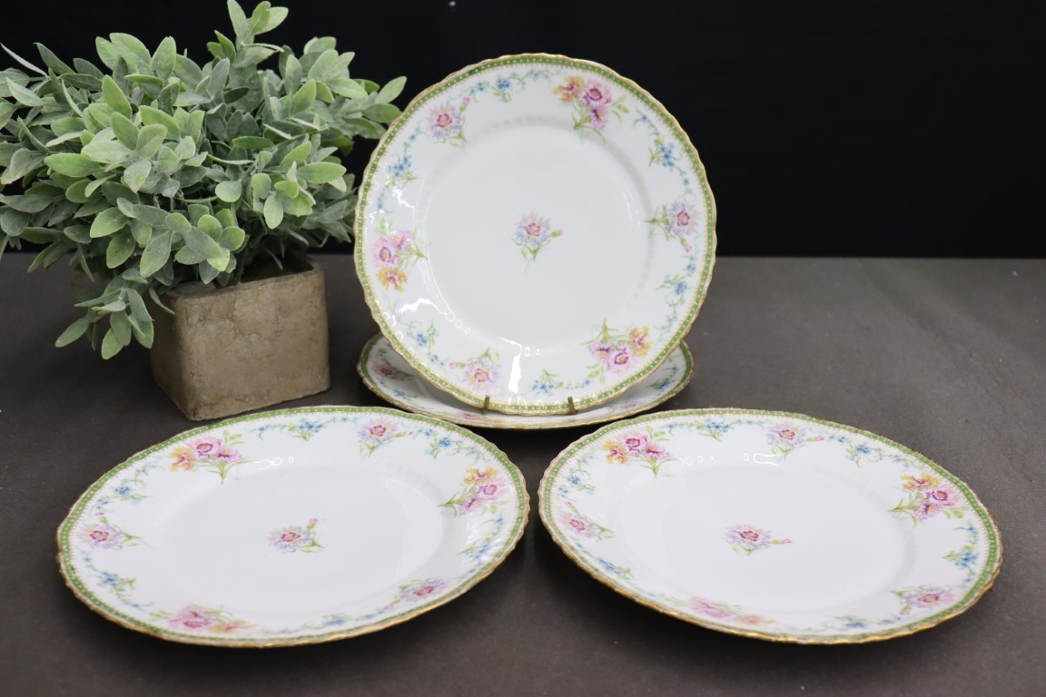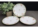 Theodore Haviland Limoges: Set Of Four Hand-painted Floral Ring Plates