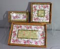 Three (3) Vintage Ceramic Tiled Tray With Wood Frame