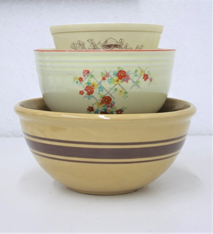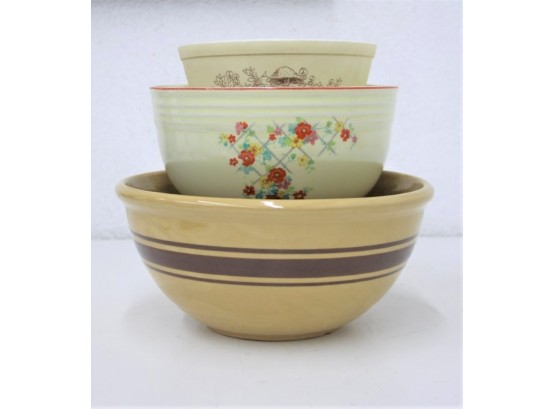 Three Mixing Bowls, Including Pyrex And Hall's Superior Quality Kitchenware