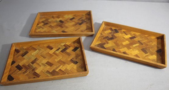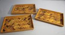 Three Modern Wooden Inlay Trays 11.5" X 8"