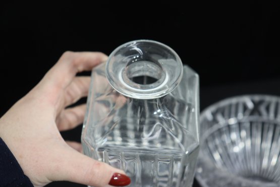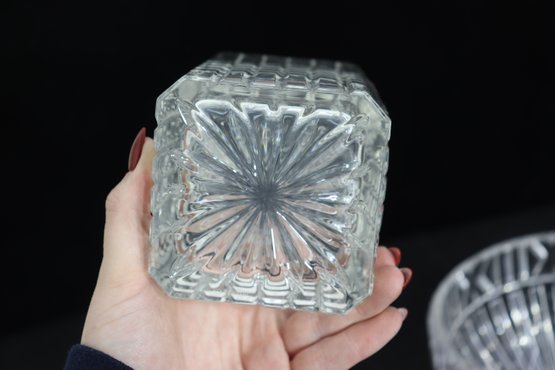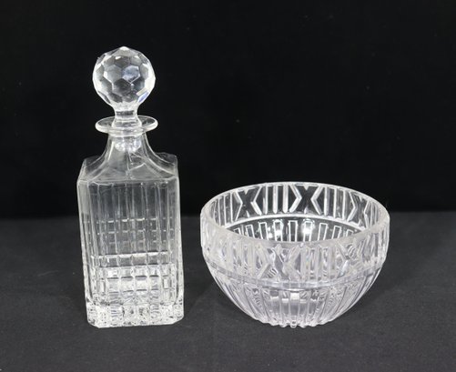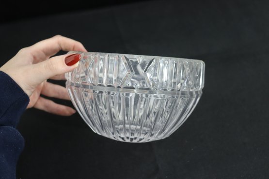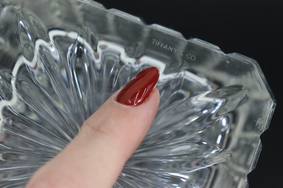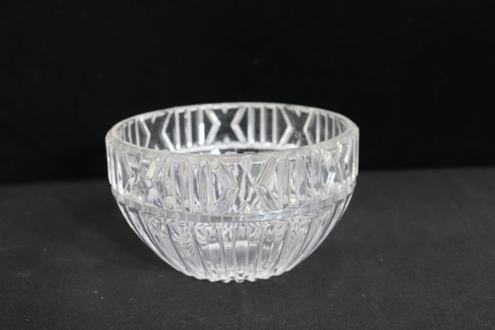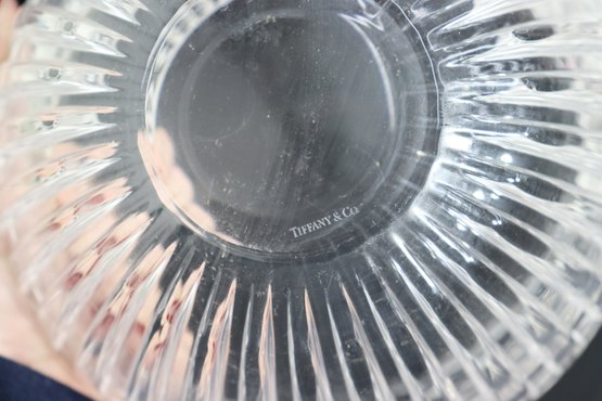 Tiffany & Co. Crystal Bowl – approx. 4” H x 7” round. Marked Tiffany & Co. on base. Features Roman numeral style banding with ribbed vertical cut detail.