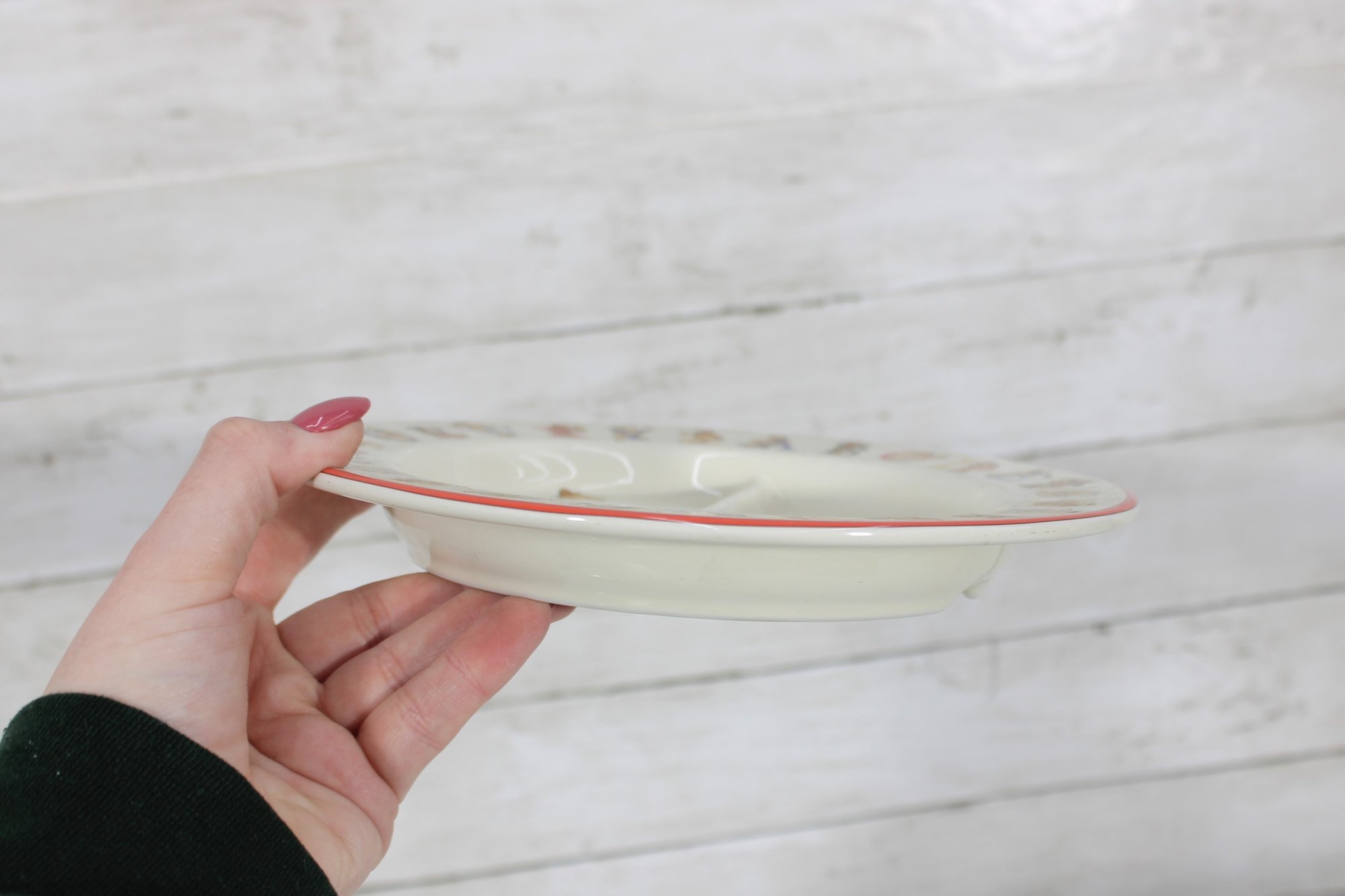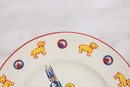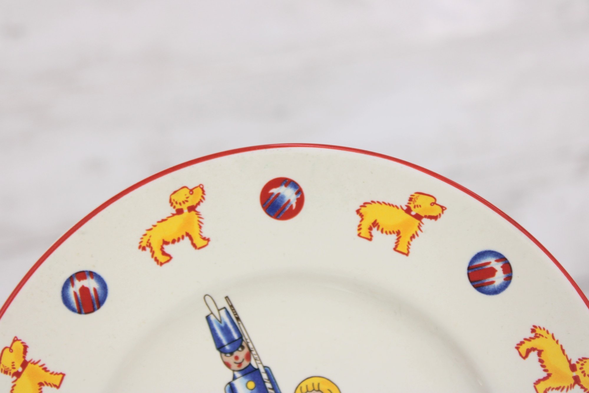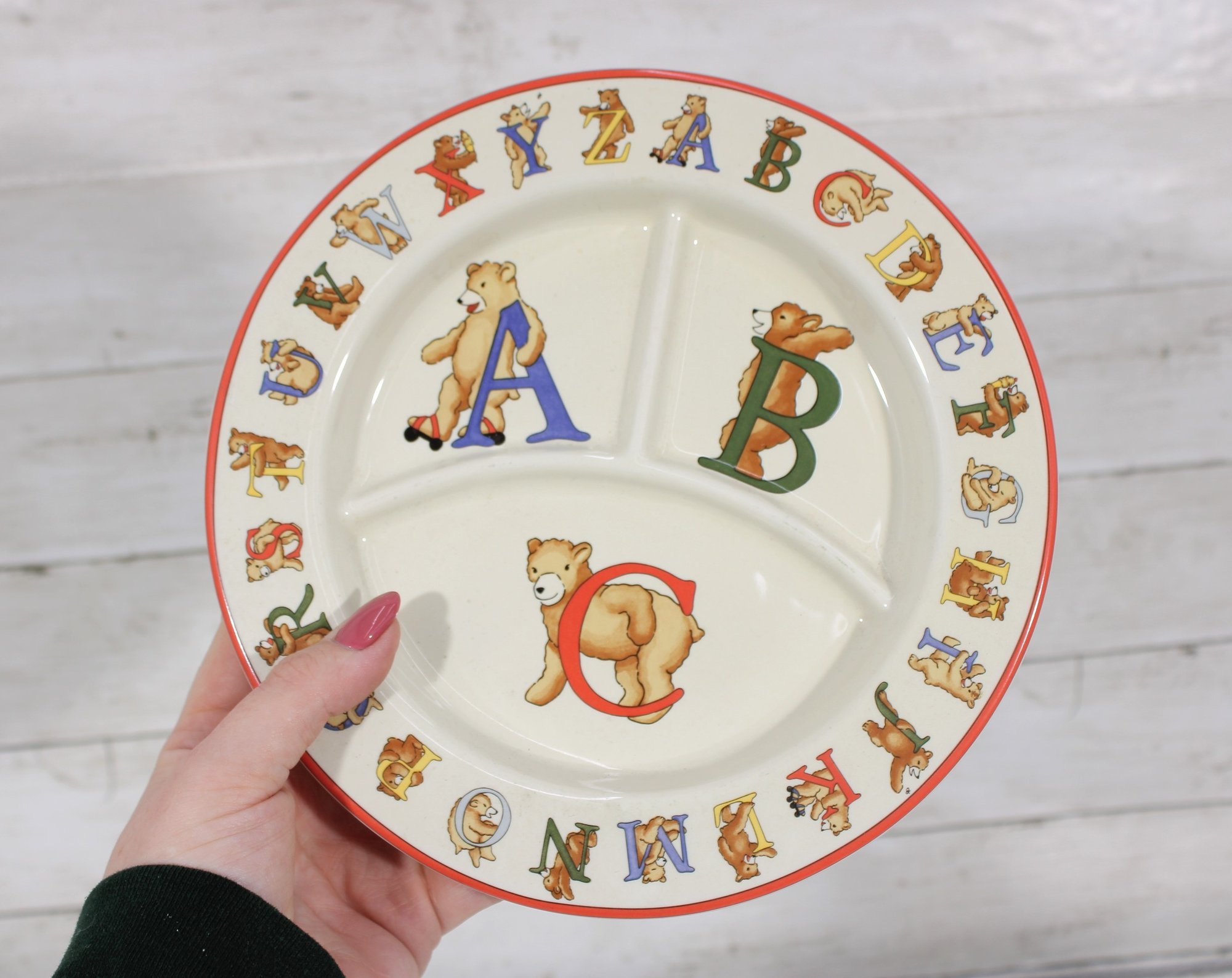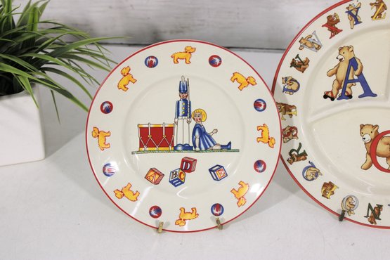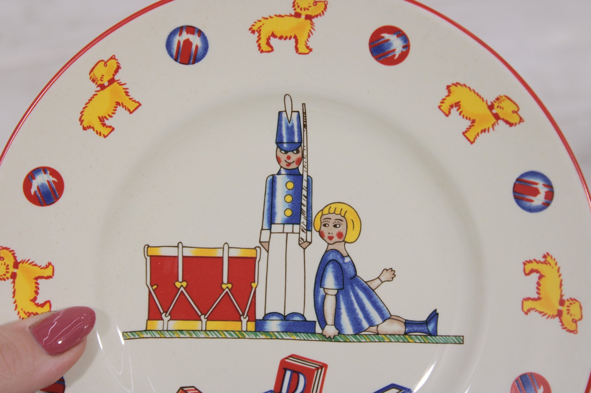 a charming Tiffany & Co. “Tiffany Toys” children’s dish set featuring colorful illustrations of toys, alphabet letters, and bears. This delightful set includes three coordinating pieces with playful designs perfect for collectors or display.
