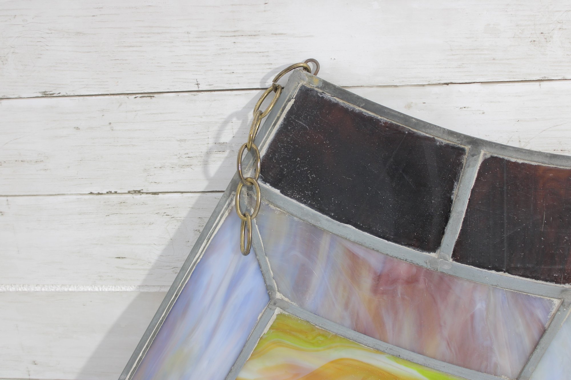 The gentle arch shape makes this especially eye-catching over a doorway, window, bed, mantel, or as a focal point in an entryway. It catches light beautifully and adds color even when not backlit.