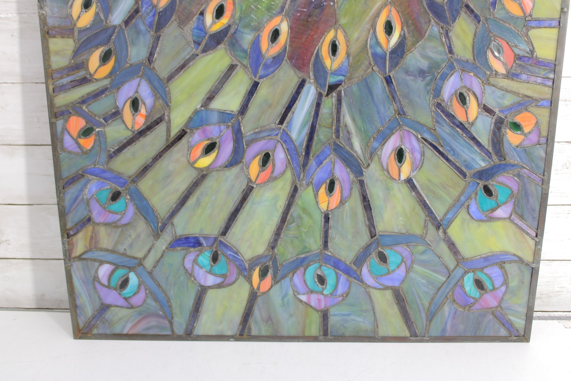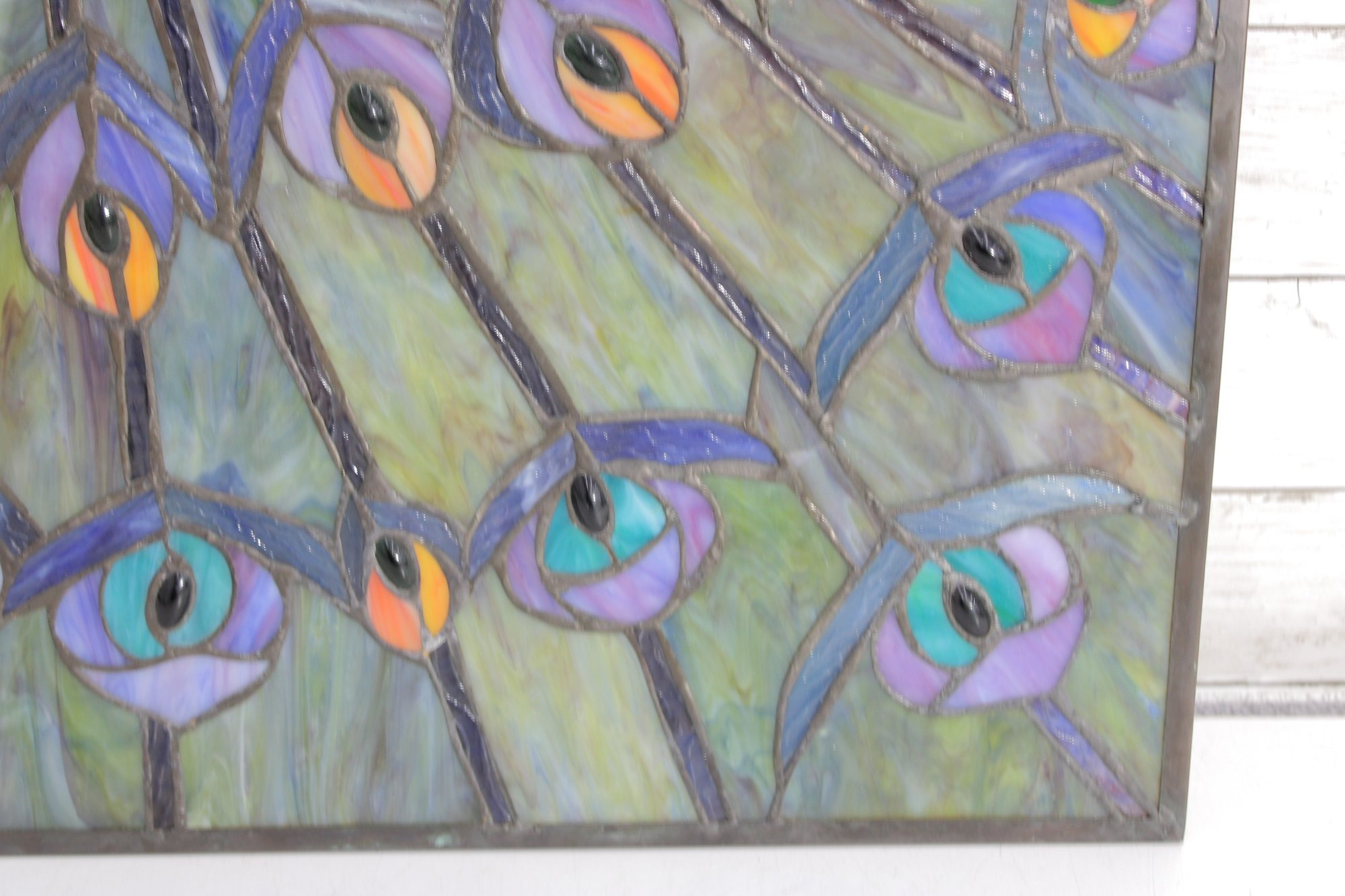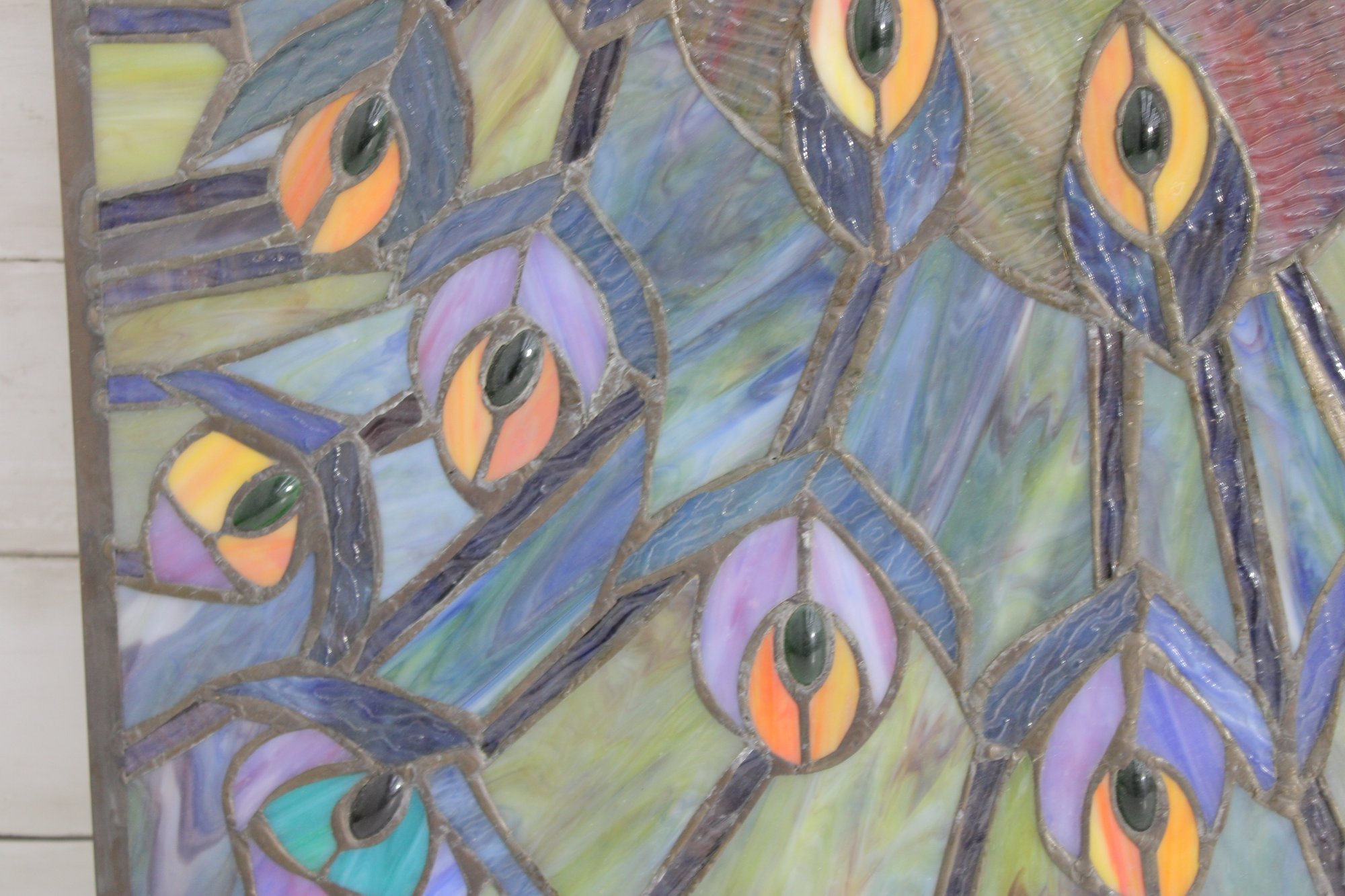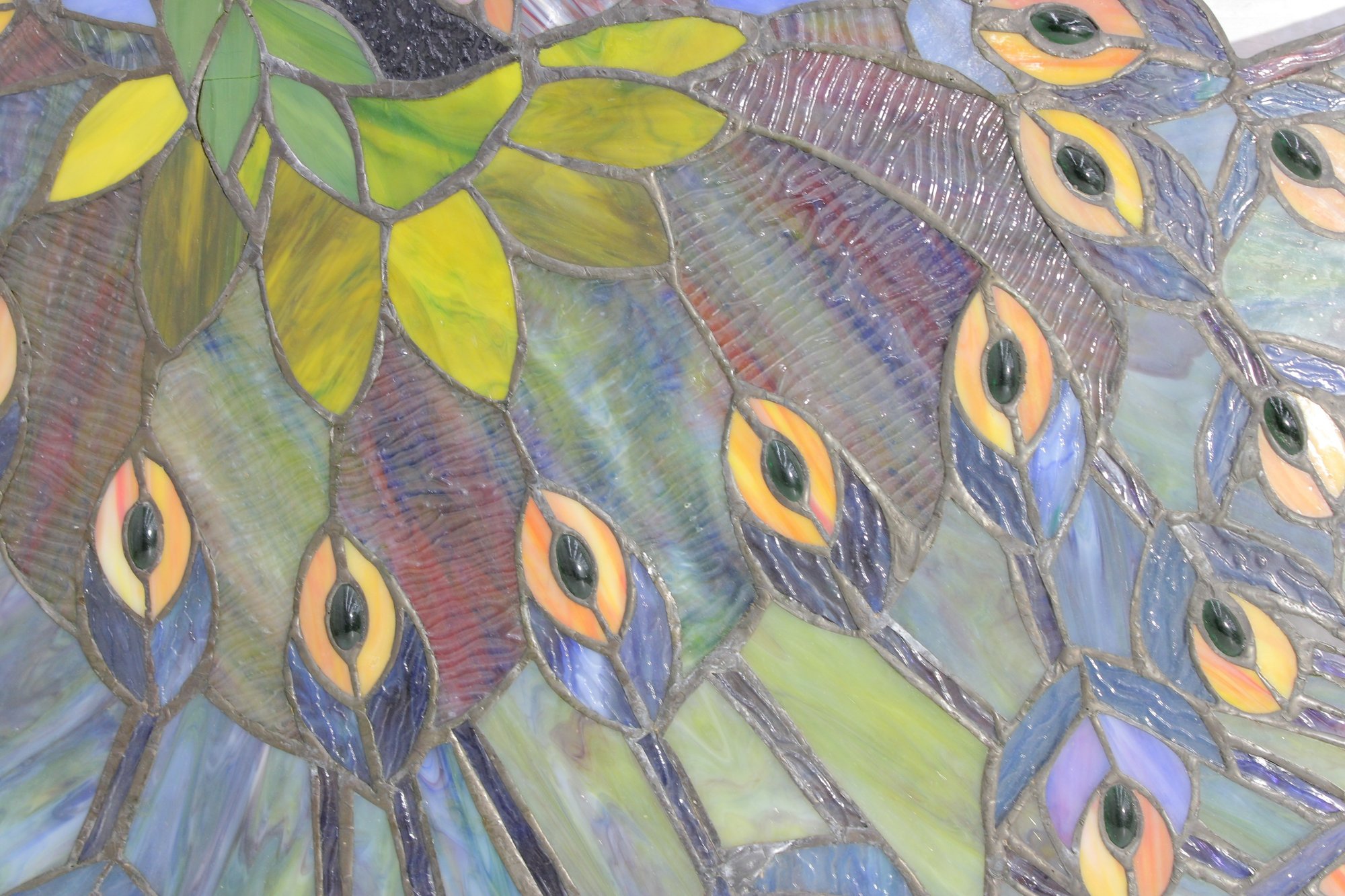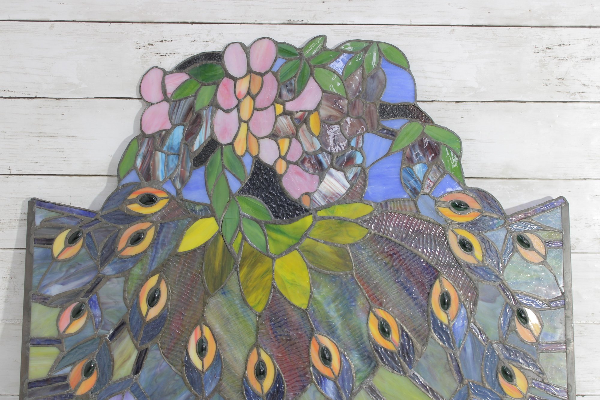 Make a bold statement with this stunning Tiffany Style peacock panel featuring a vibrant, colors.