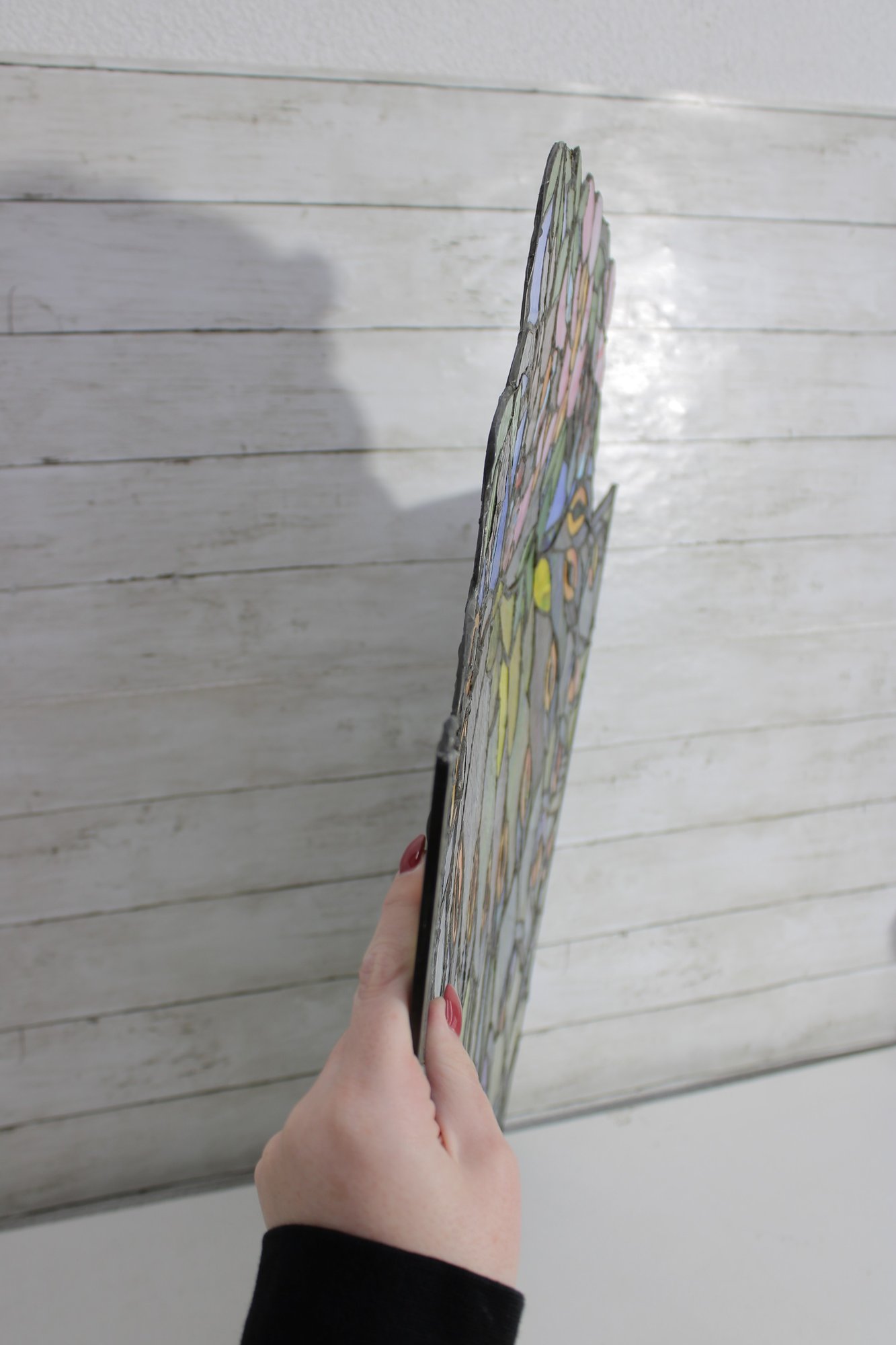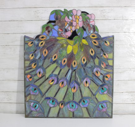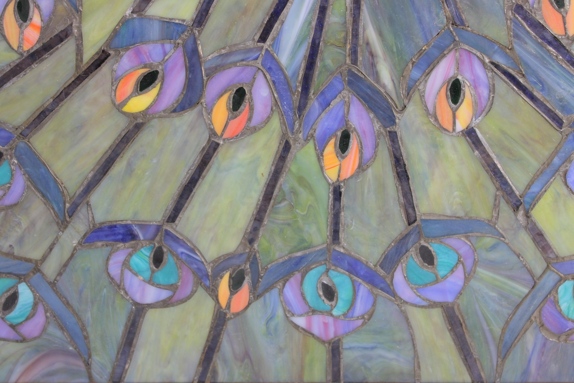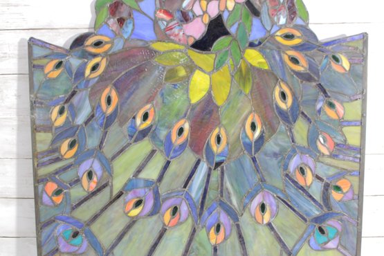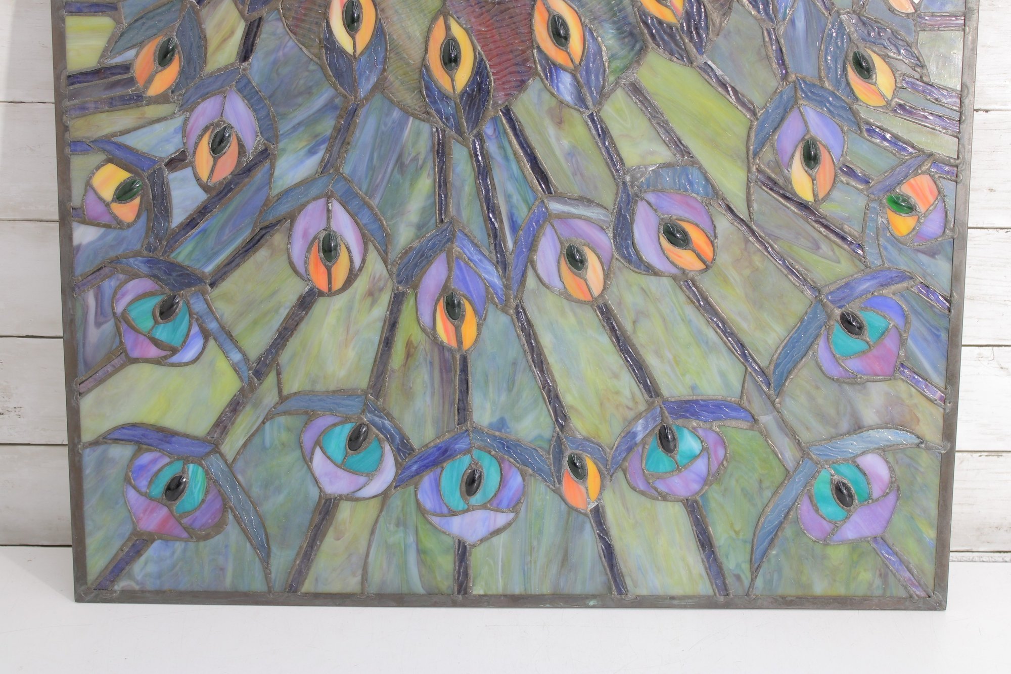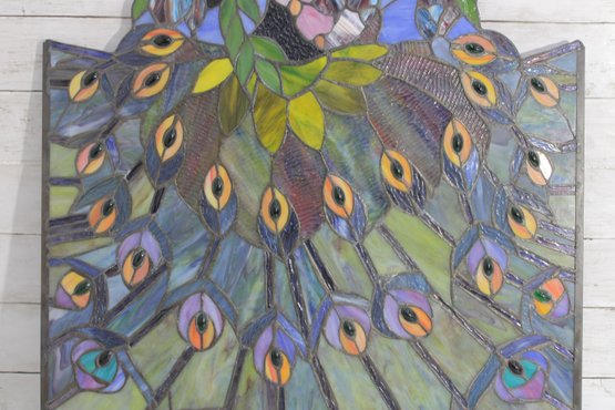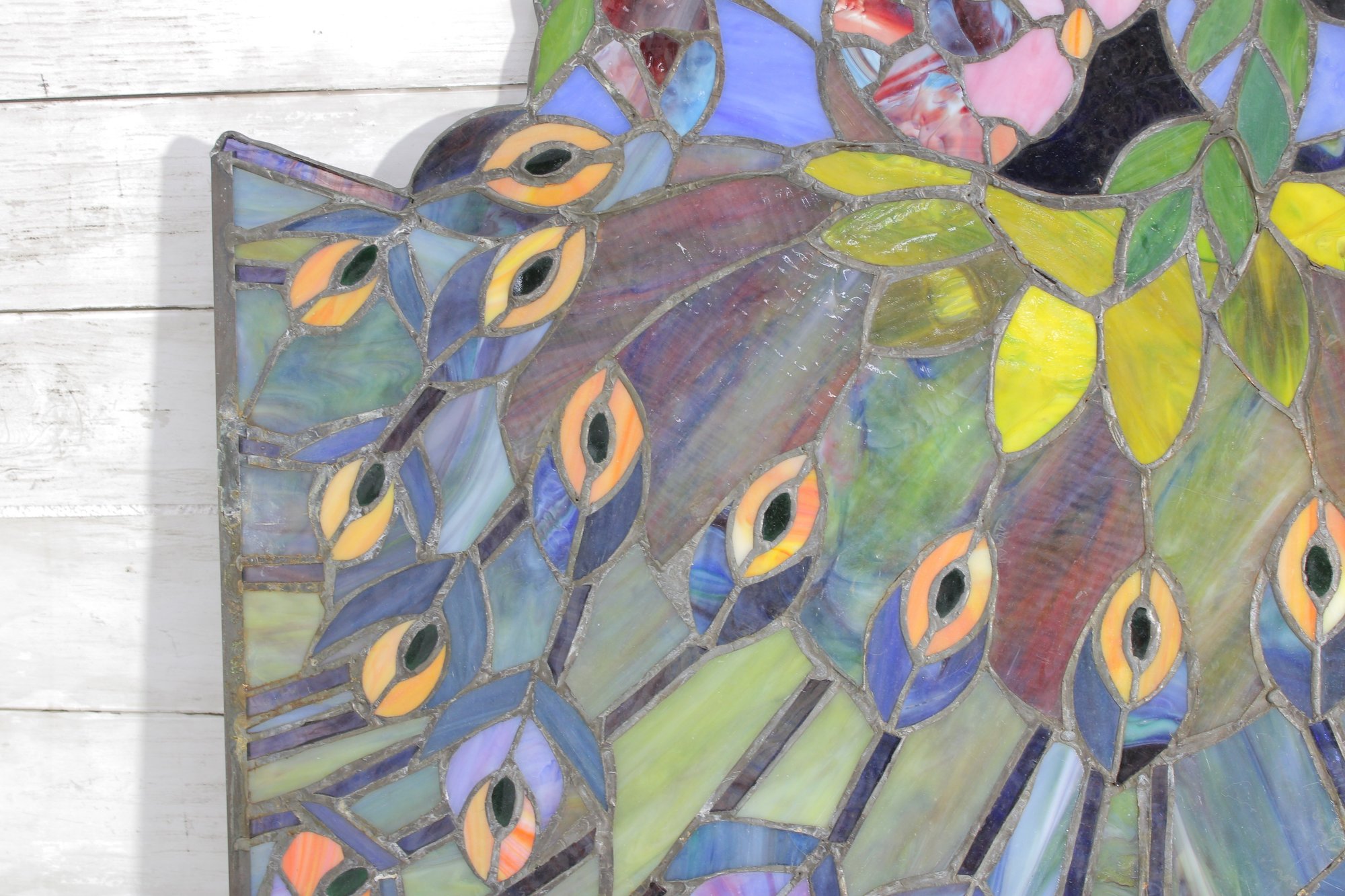 Make a bold statement with this stunning Tiffany Style peacock panel featuring a vibrant, colors.