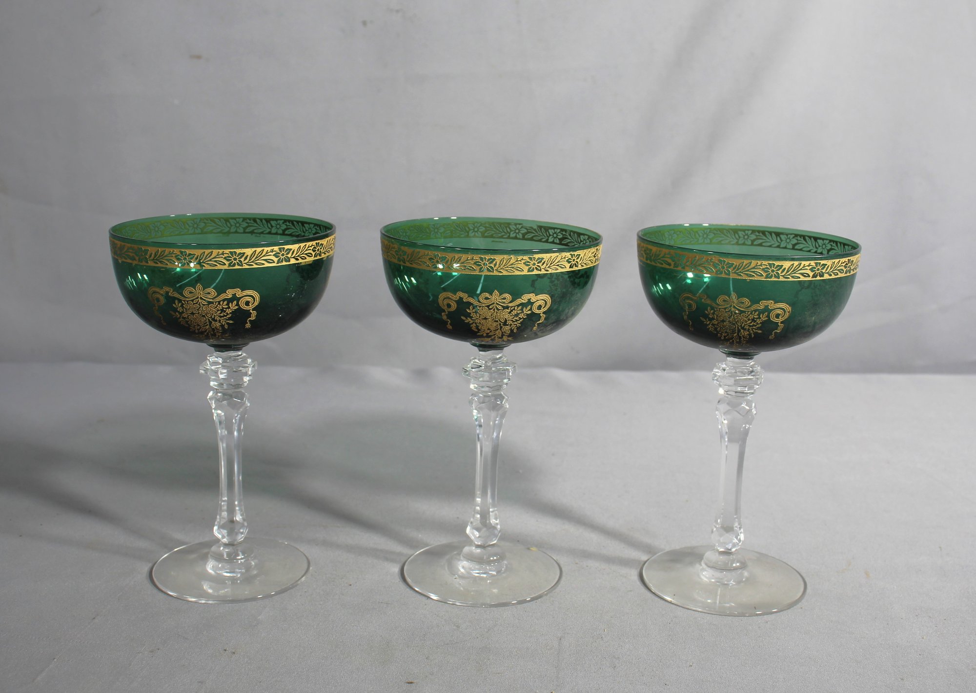 The Melrose-Green bowls sit atop clear, intricately designed stems, leading down to a stable base, ensuring both beauty and balance. These glasses are adorned with a lavish gold encrusted pattern, adding a touch of opulence to any table setting. Perfect for after-dinner drinks, these cordial glasses will elevate your hosting to a realm of sophistication and luxury.