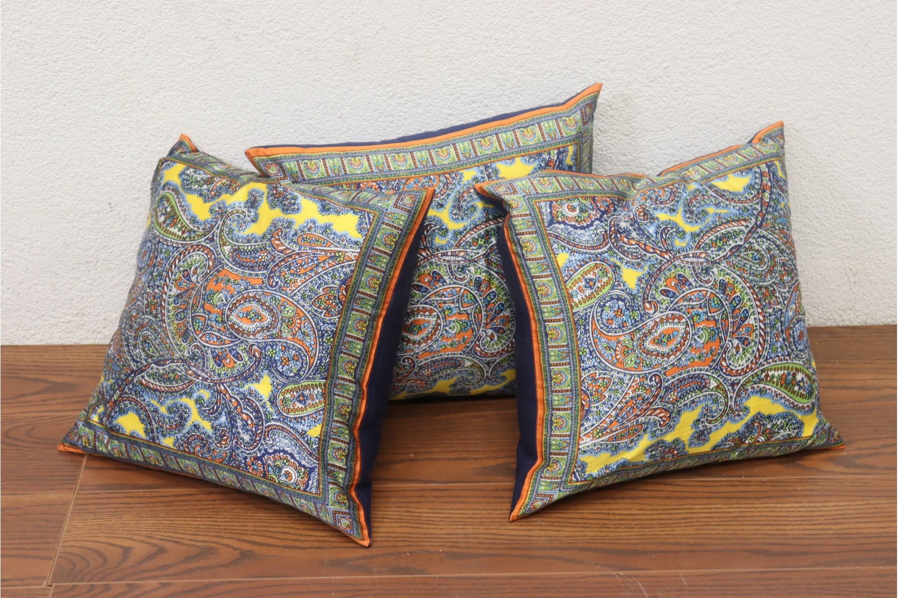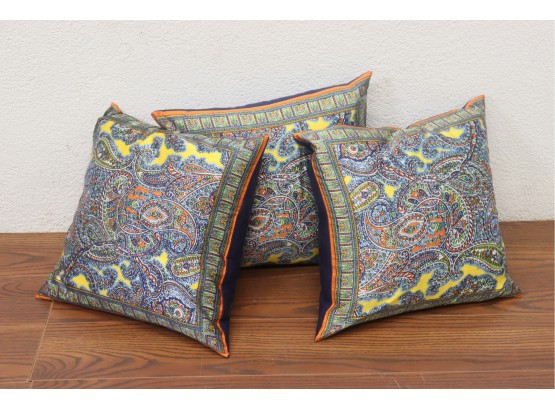 Trio Of Psychedelic, Plump, Paisley Print Silk Pillows - Of The Throw Type