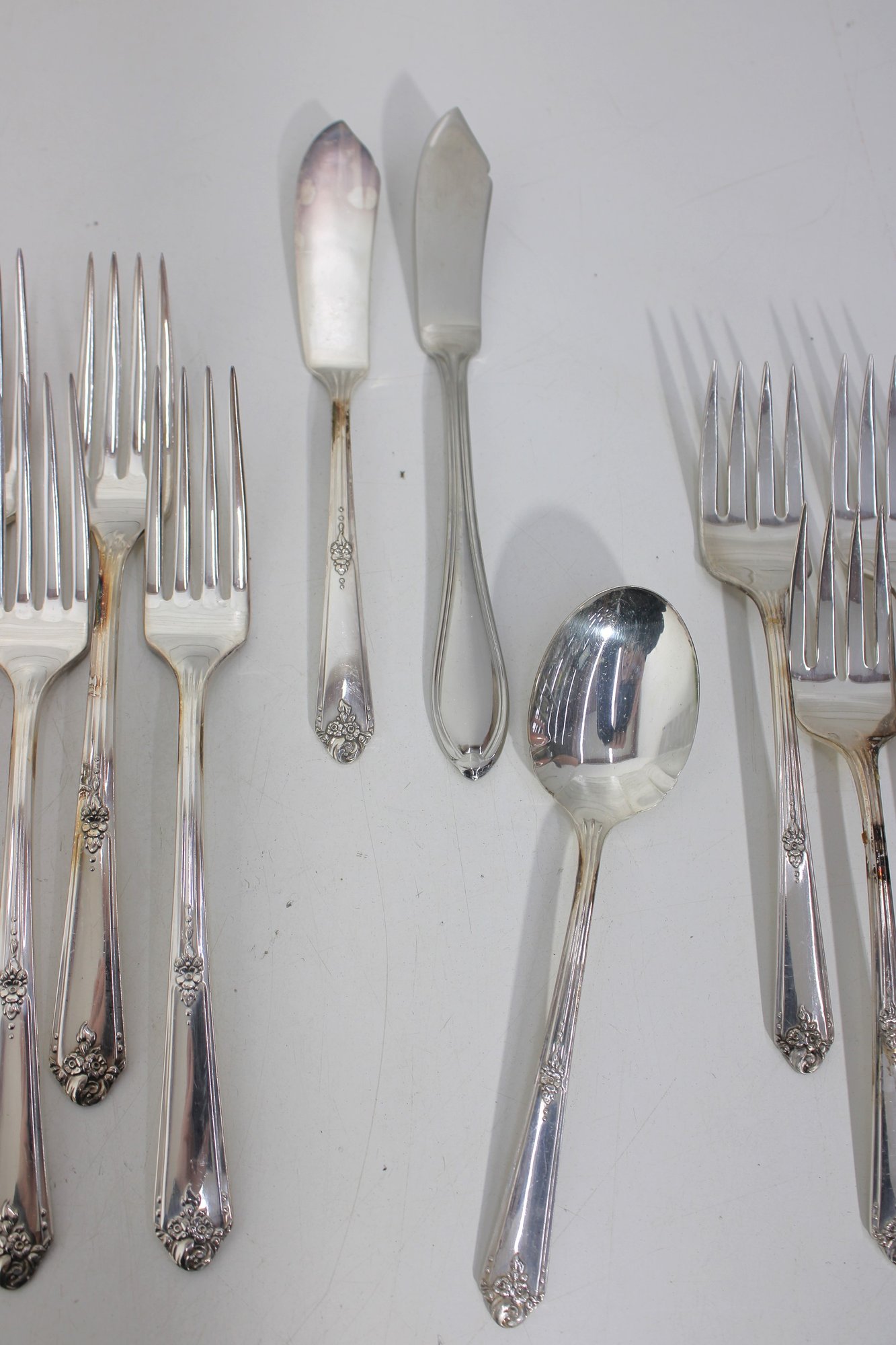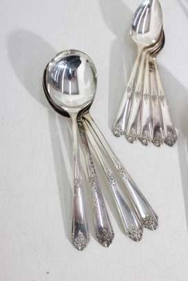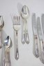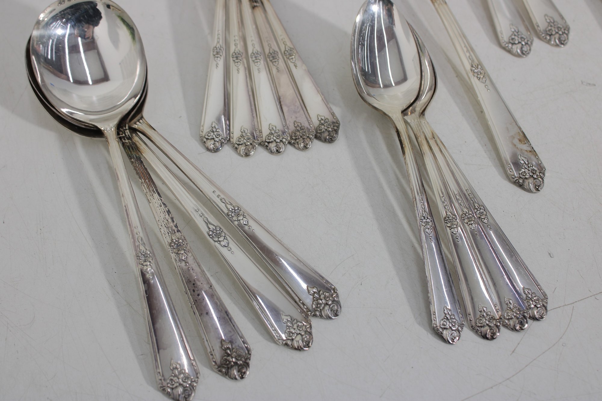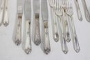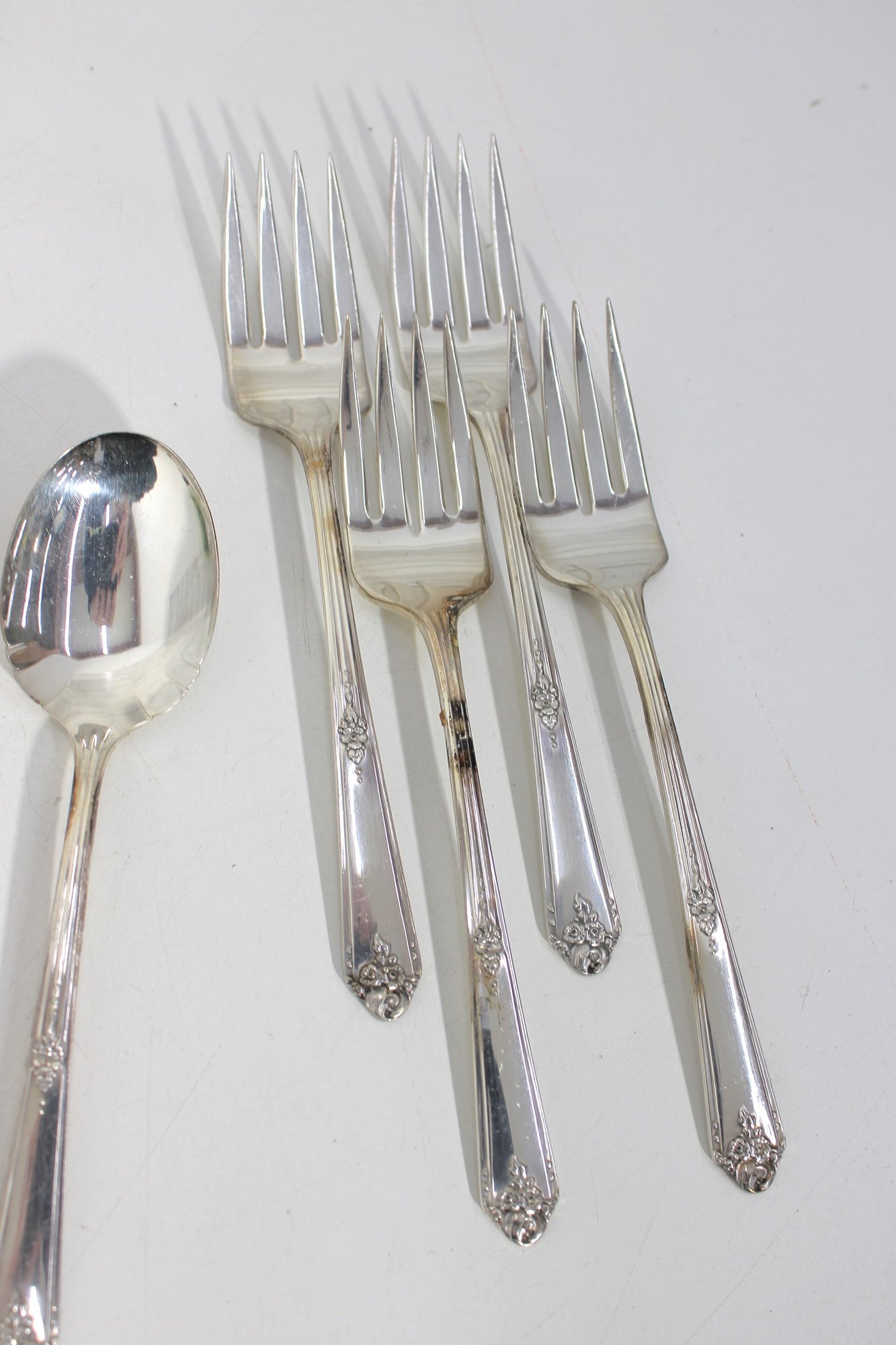 a partial vintage flatware set in the Tudor pattern by Oneida Community, crafted in classic silverplate. This elegant pattern features traditional lines with ornate detailing at the handles, making it a timeless choice for both everyday dining and special occasions.