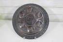 Nice pair of decorative Judaica Seder plates used for the Passover Seder ceremony. These plates feature traditional symbolic sections representing the ritual foods used during Passover.