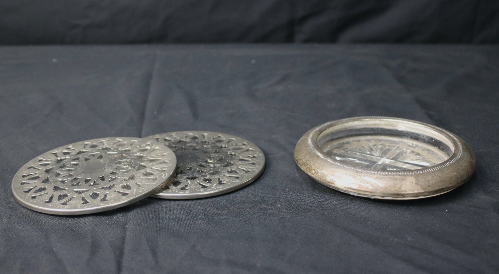 Two Round Silver-plate Trivets And Wine Coaster
