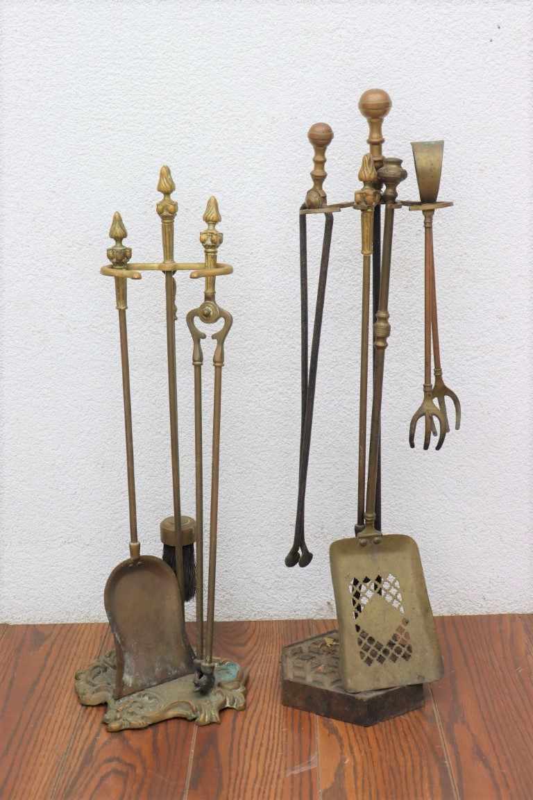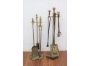 Two Sets Of Brass Fireplace Tools With Stands