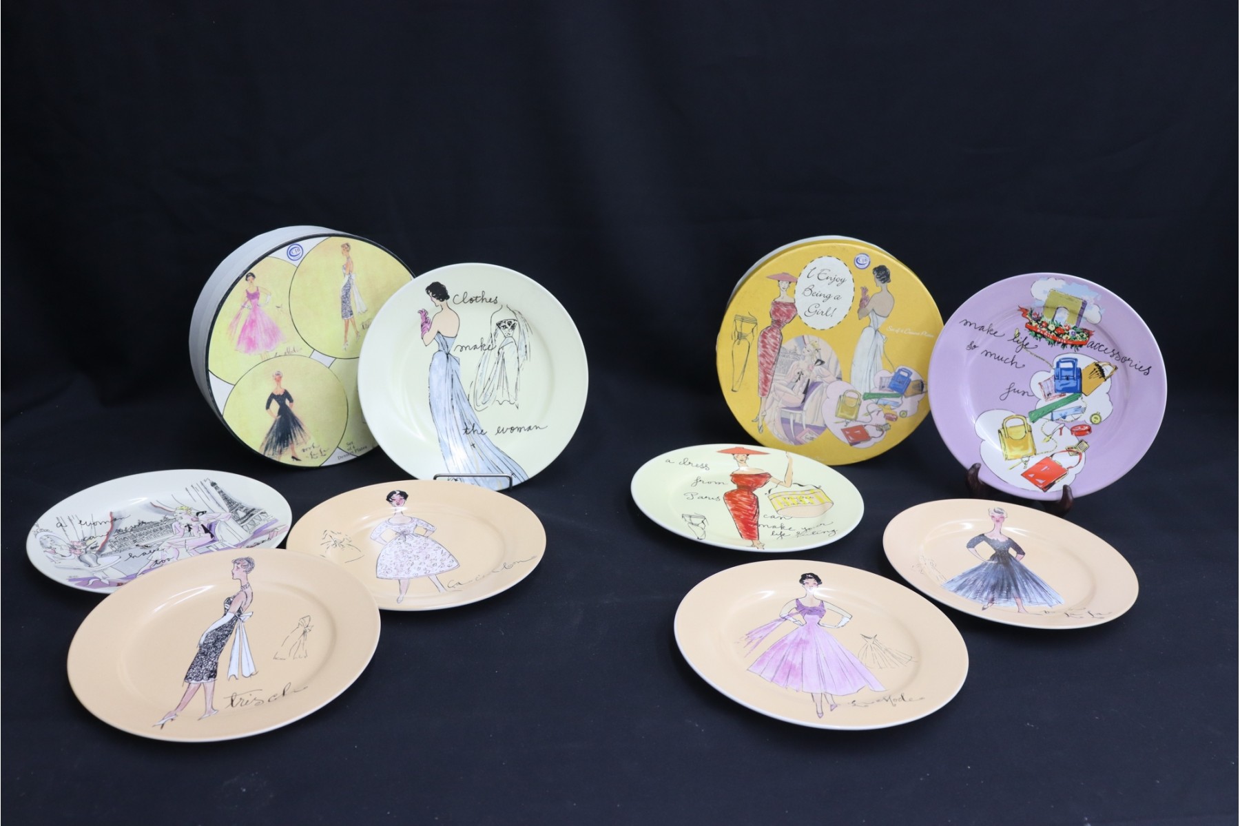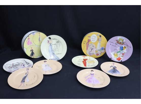 Two Sets Of Four Fashion-themed Dessert Plates - Rosanna - With Two Round Boxes