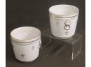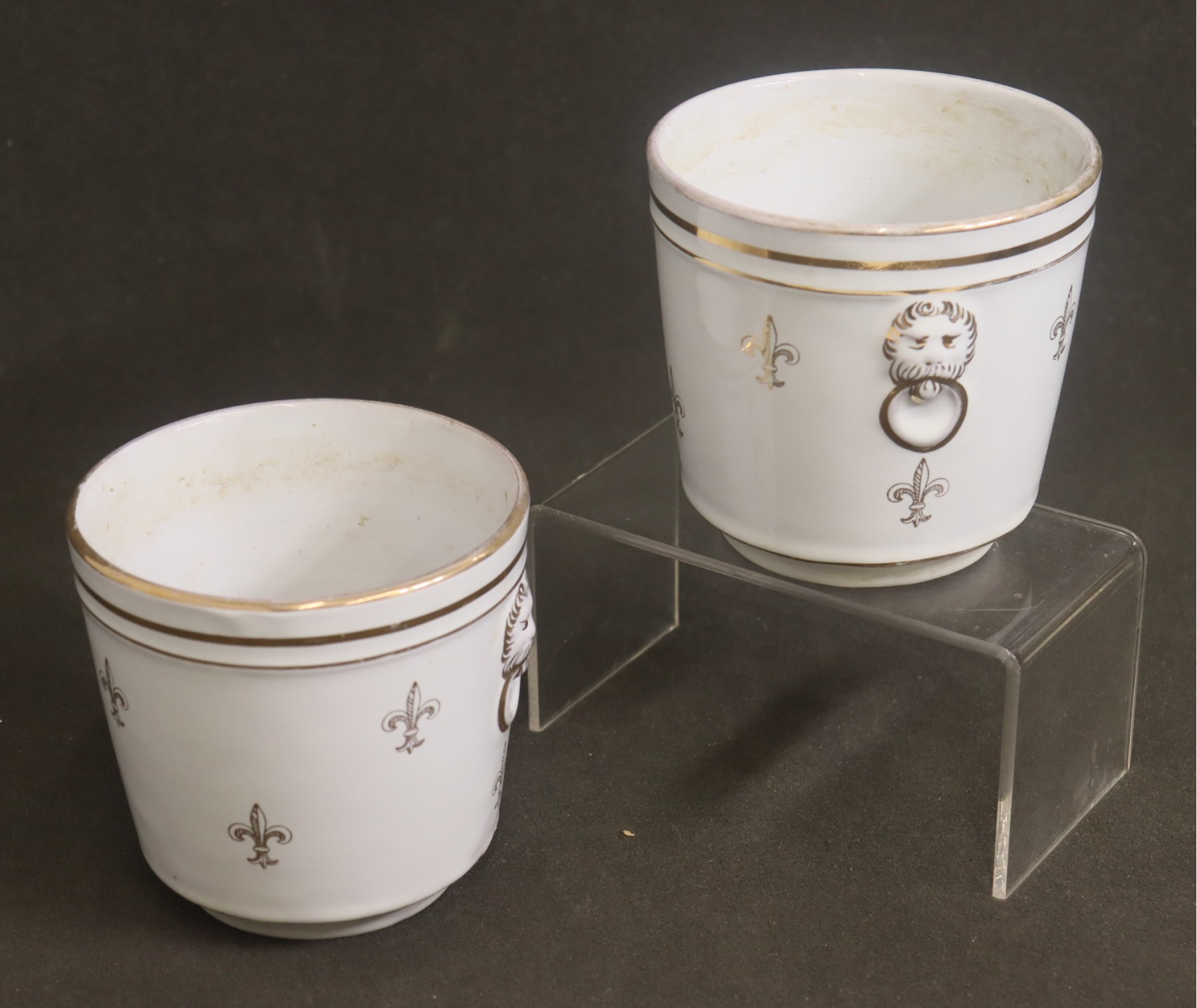 Two White/Gold Porcelain Planters - Fluer De Lys Lion Motif, Italy #897