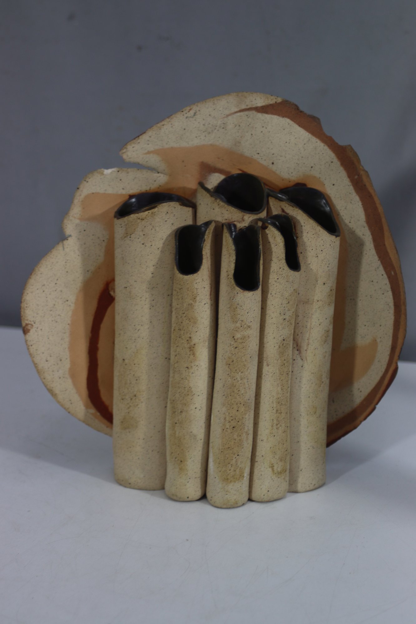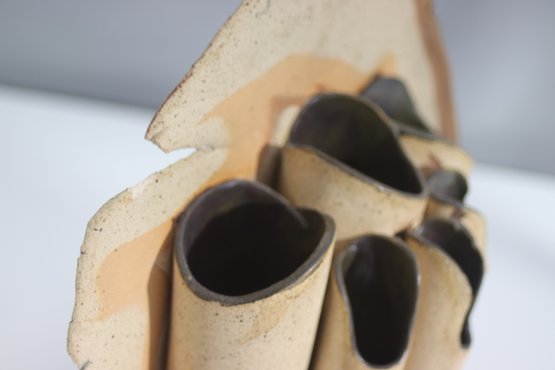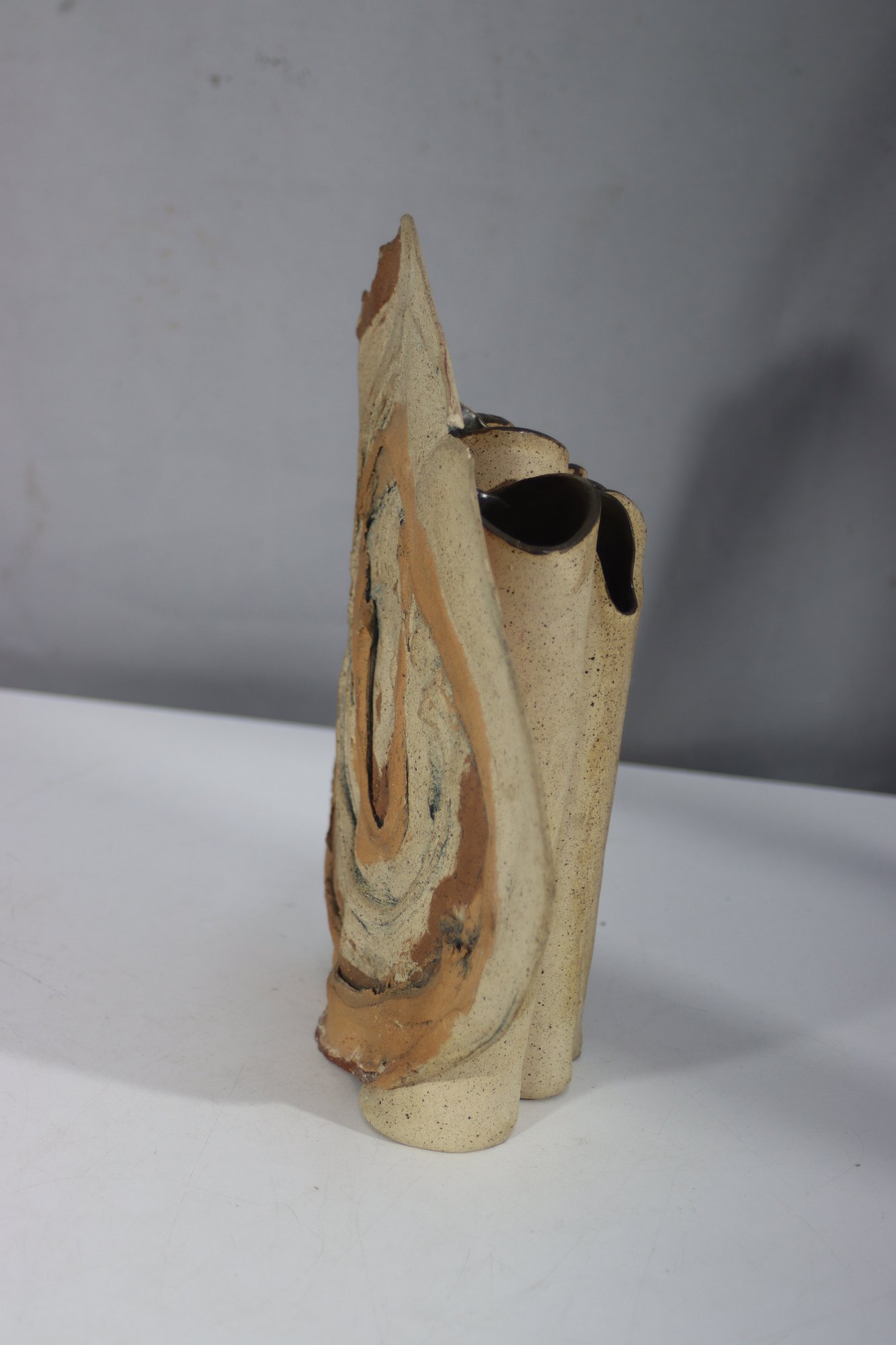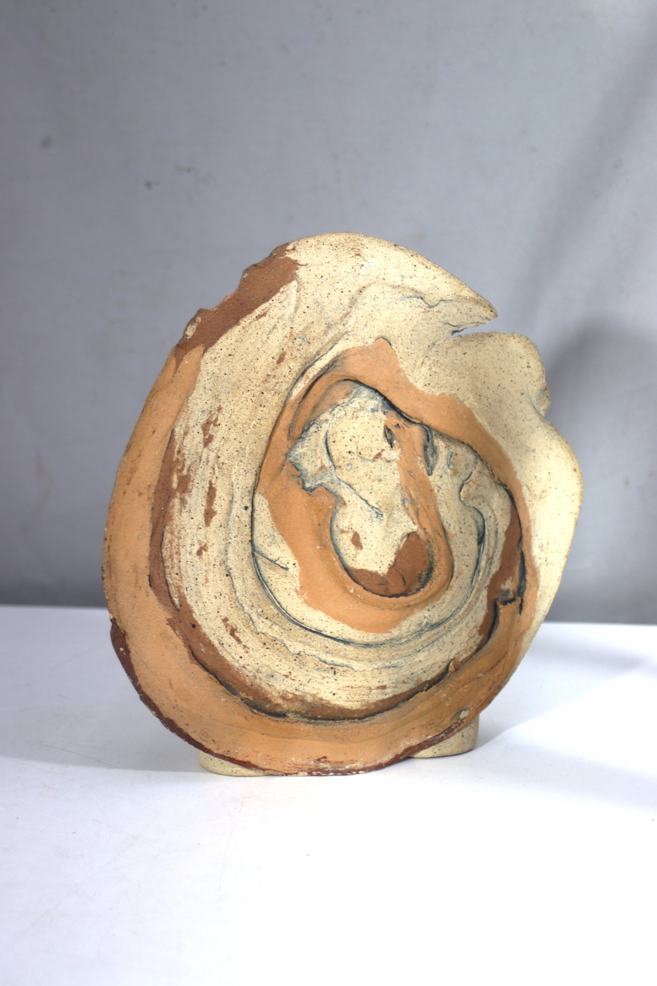 This one-of-a-kind handcrafted ceramic sculpture is a stunning work of art with a distinctive organic form and intricate swirling patterns. The natural earthy tones and layered textures highlight the raw beauty of clay, making this piece a standout for any pottery collector or art enthusiast.