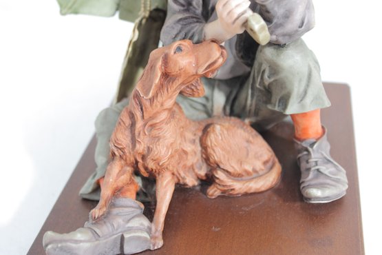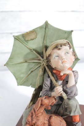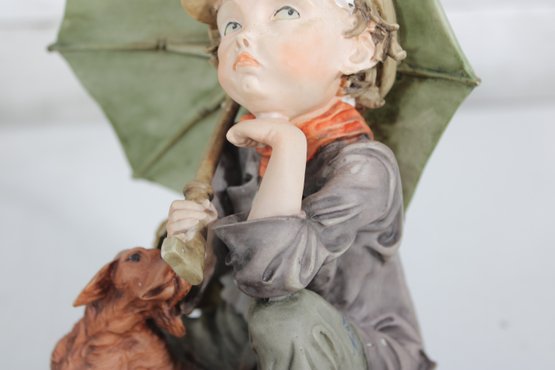 Charming and highly collectible Giuseppe Armani Capodimonte figurine, featuring a young boy seated with his loyal dog beneath a large umbrella. This beautifully detailed composition captures a tender, contemplative moment, showcasing Armani’s signature lifelike expressions and fine craftsmanship.