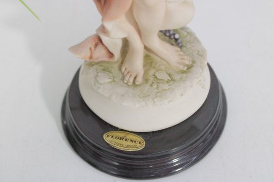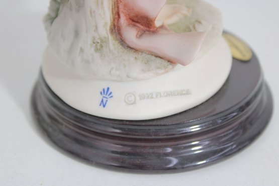 Expertly crafted in Italy, this Capodimonte-style figurine showcases Armani’s signature artistry—delicate facial features, graceful pose, and finely sculpted drapery. The figure stands atop a decorative base mounted on a polished wooden plinth with the Florence label.