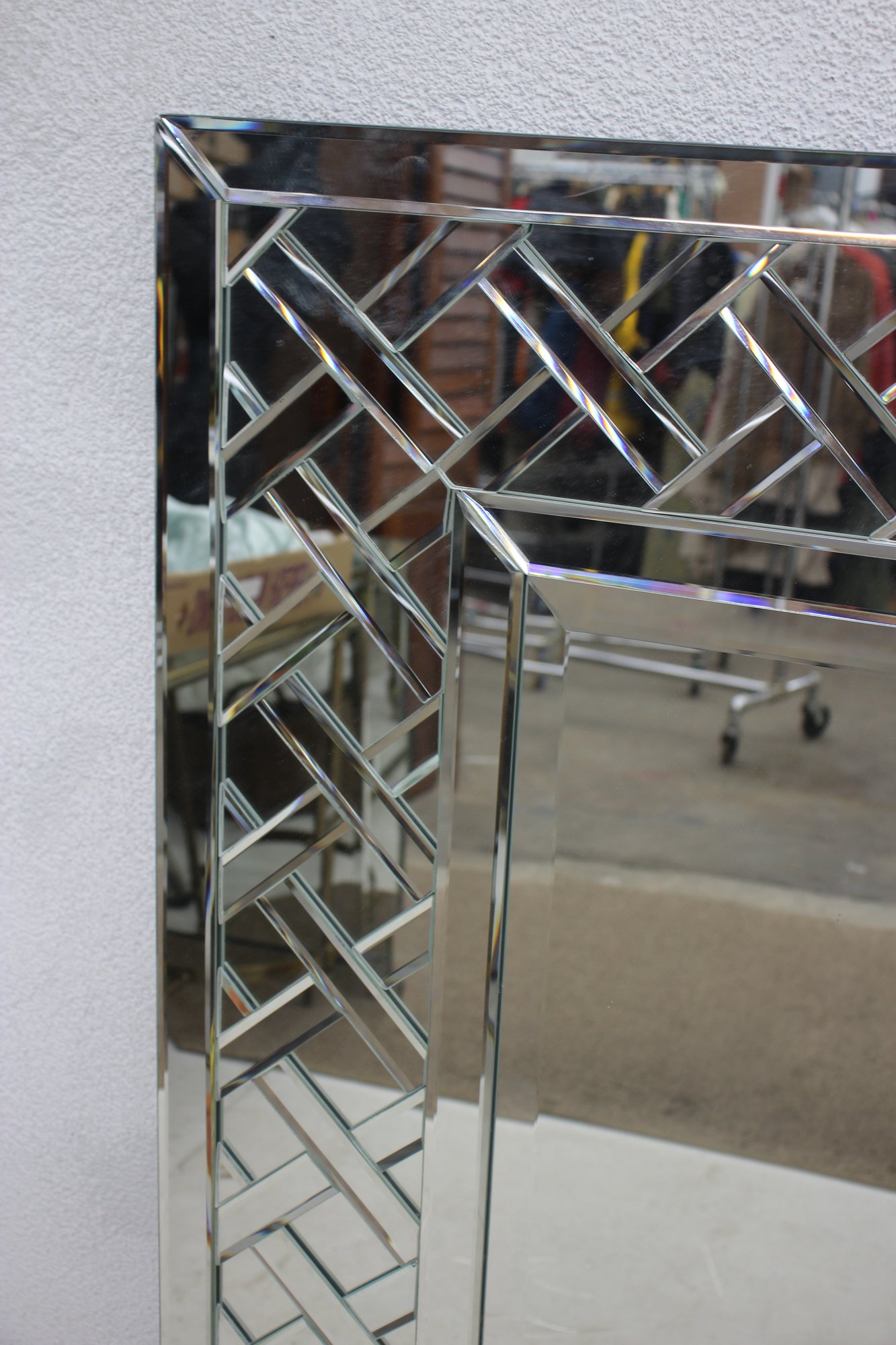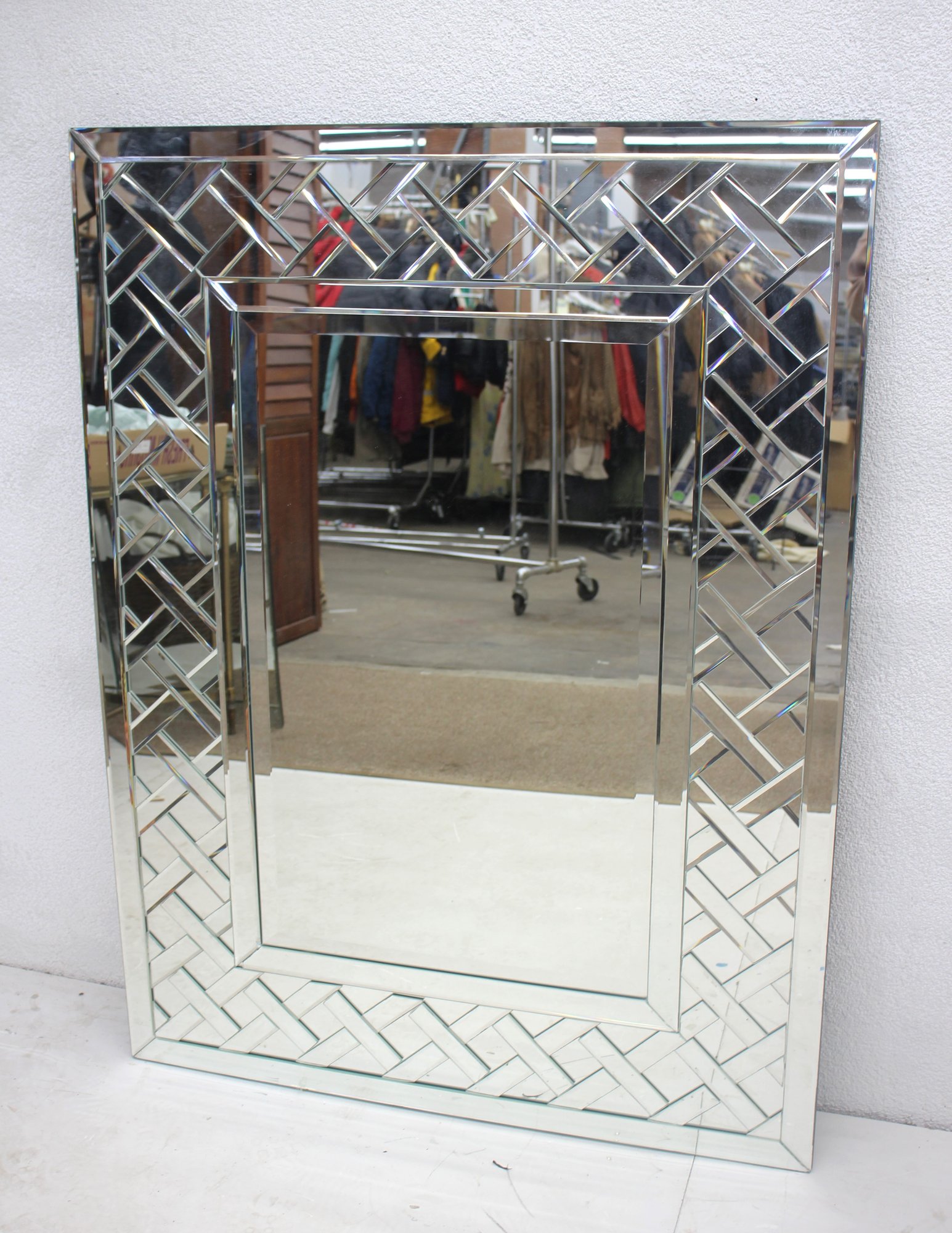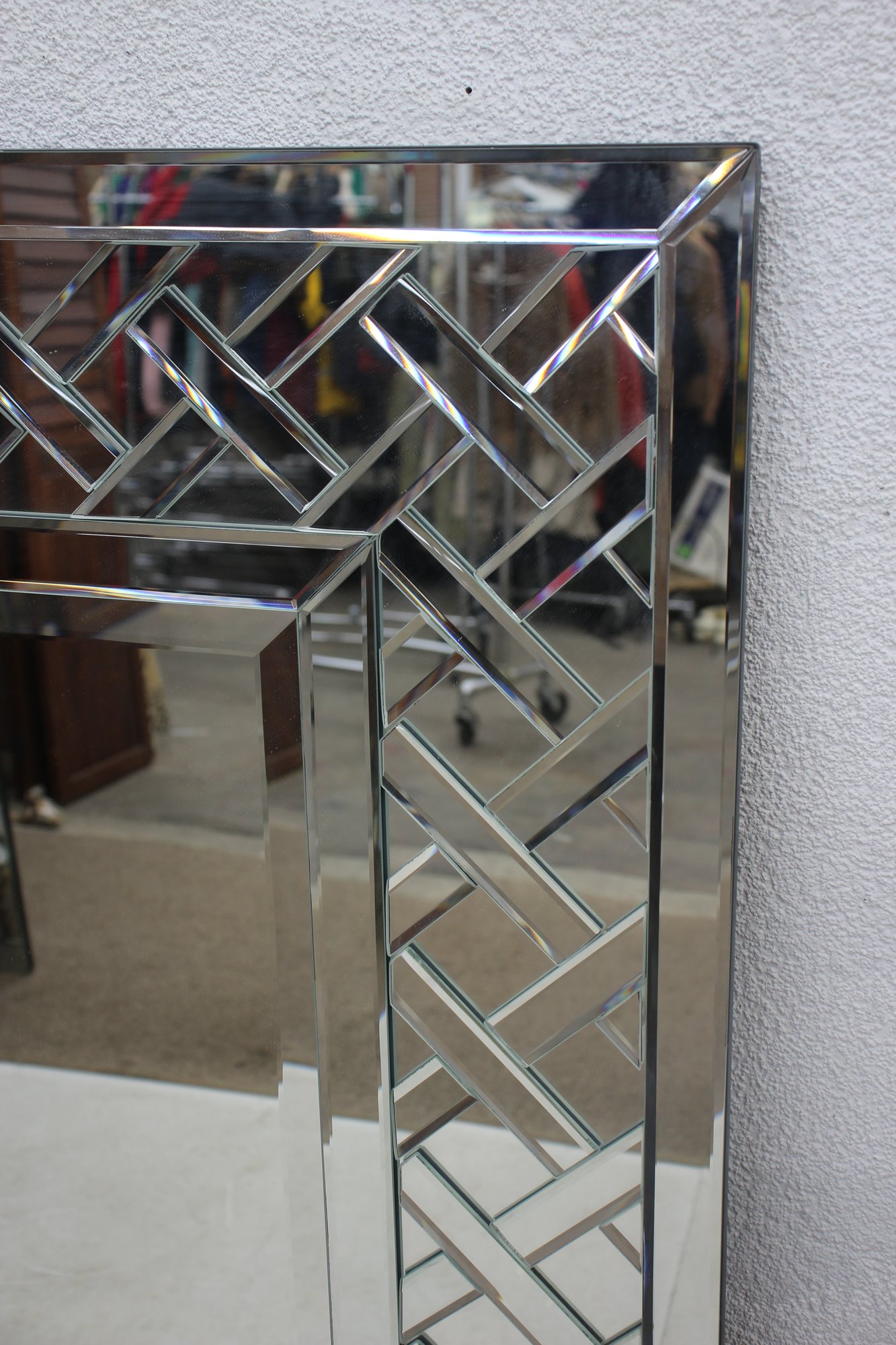 Crafted with high-quality materials, this mirror has precision-cut beveled edges that enhance its reflective depth, making it ideal for brightening up any space. The contemporary lattice-like design adds a touch of elegance and sophistication, making it a perfect fit for modern, Art Deco, or transitional interiors.