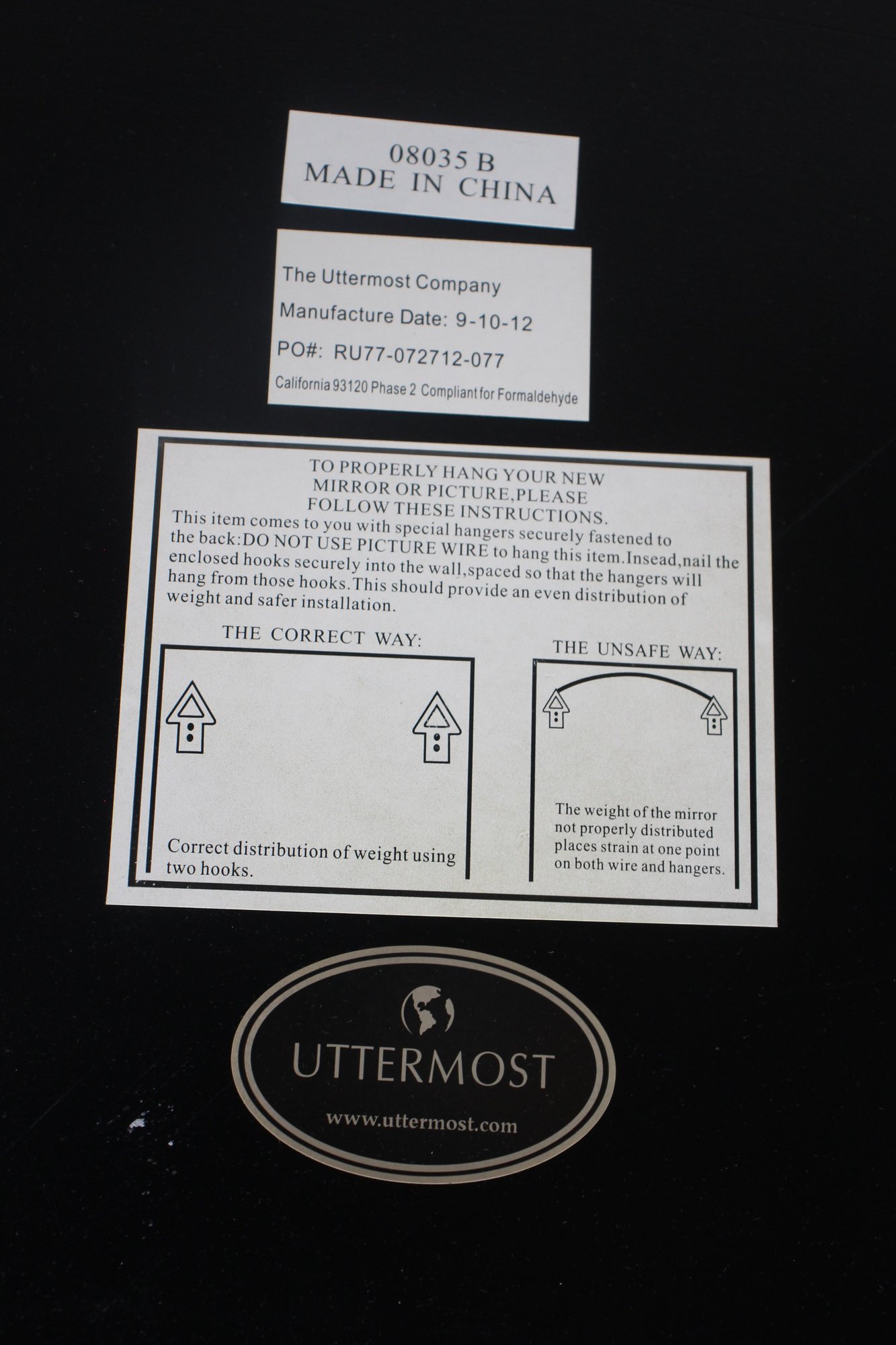 The mirror is backed with a sturdy black panel and includes secure hanging hardware, ensuring safe and easy wall mounting. A high-end decorative piece from Uttermost, this mirror is perfect for entryways, living rooms, bedrooms, or upscale office spaces.