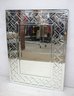 This stunning Uttermost geometric beveled mirror is a statement piece, measuring 48 inches in height and 36 inches in width. The mirror features a modern, sophisticated design with a beveled central mirror, framed by an intricate layered glass border in a sleek, angular geometric pattern.