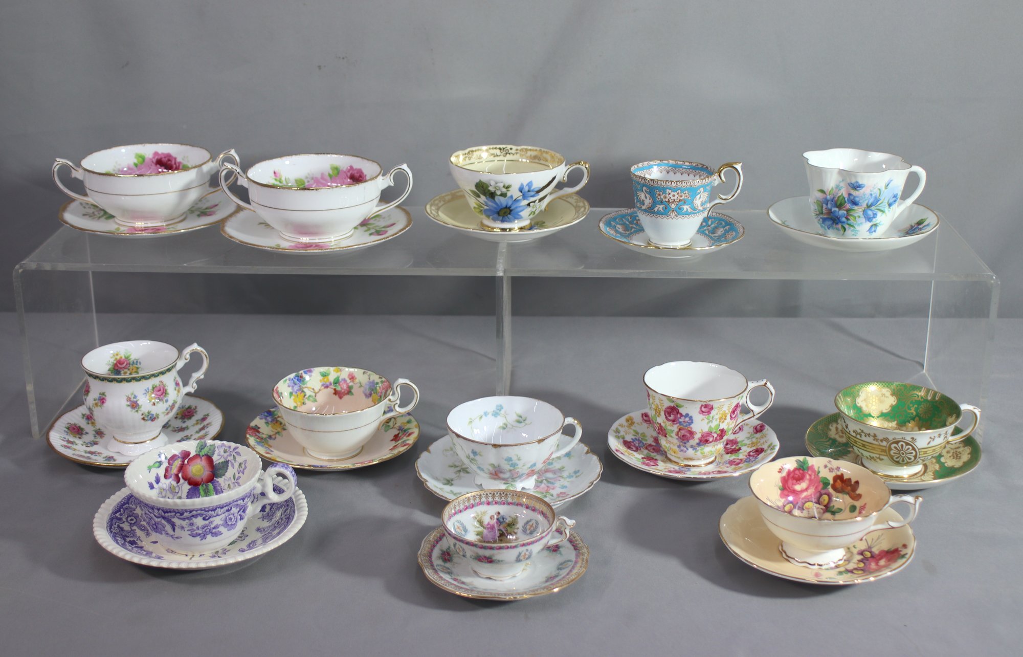 Varied Group Lot Of 13 Vintage Fine Bone China Teacups And Saucers