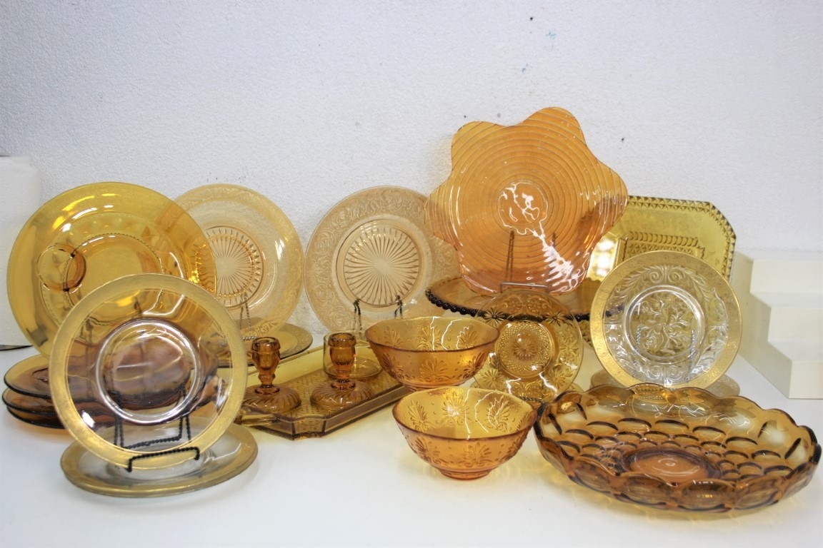 Variegated Dark Amber Glass Lot - Myriad Patterns And Makers - Carnival Glass Depression Style