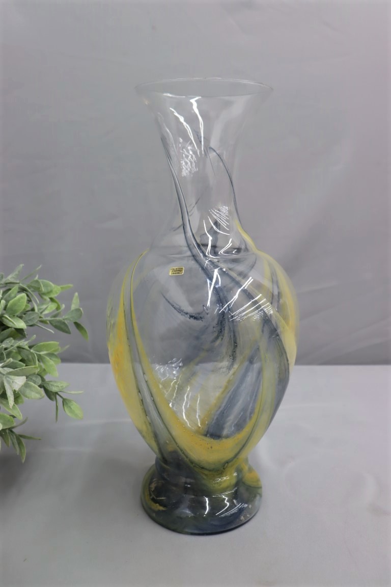 Vetro Opalina Hand-blown Clear Glass Vase With Yellow/blue Swirls