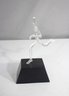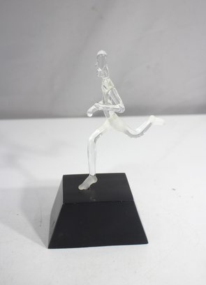 This dynamic and minimalist glass sculpture titled "Sprinter" is a signed original work by artist Victor Meyers, dated 2000. The clear and frosted glass figure captures the energy and motion of a runner mid-stride, mounted on a black rectangular base.