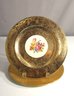 This exquisite 10-inch round vintage plate from Bavaria is a stunning piece, perfect for collectors and those looking to add elegance to their tableware collection. The plate features a vibrant, hand-painted floral centerpiece, surrounded by an intricately embossed 22-karat gold pattern that reflects opulence and fine craftsmanship.