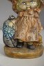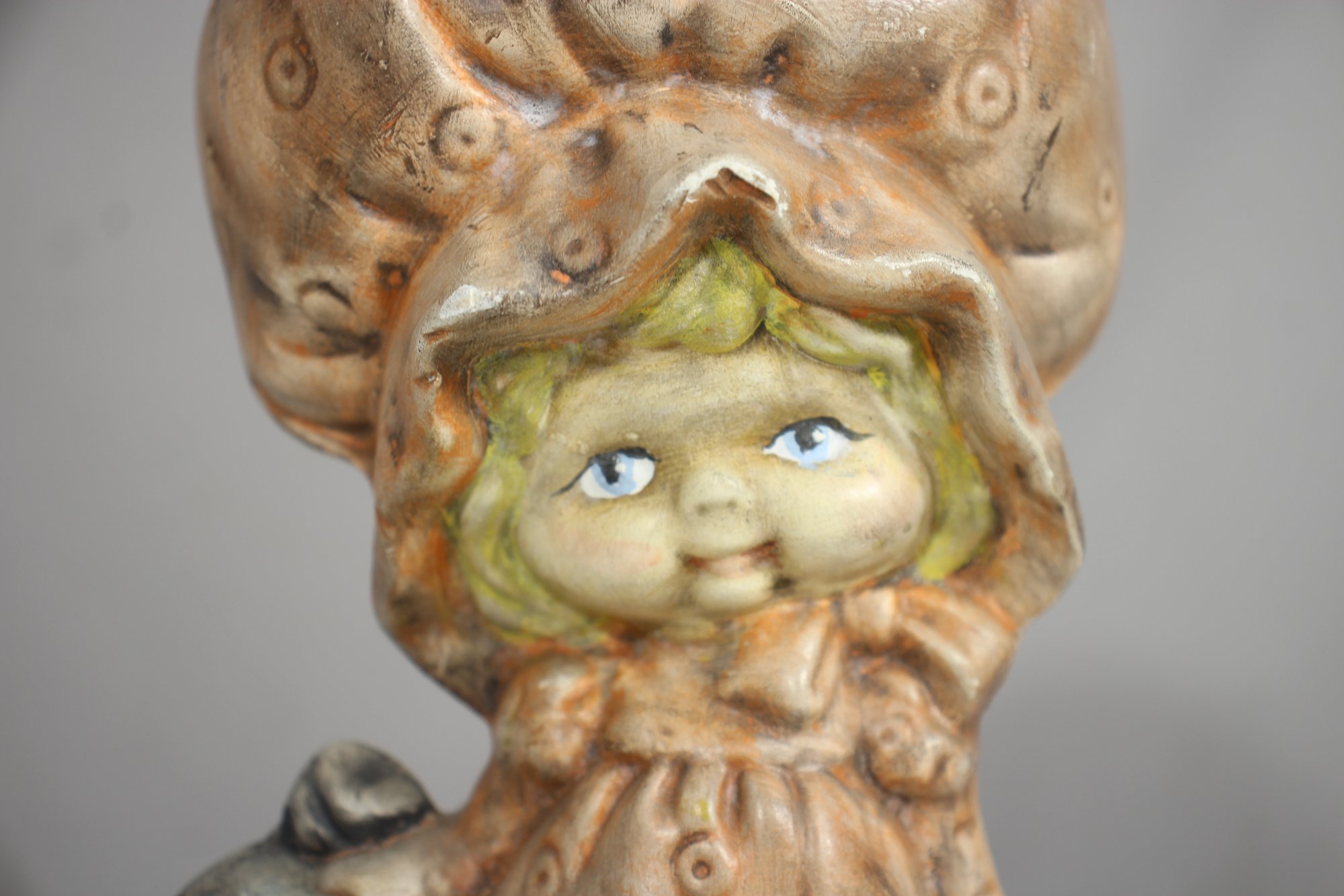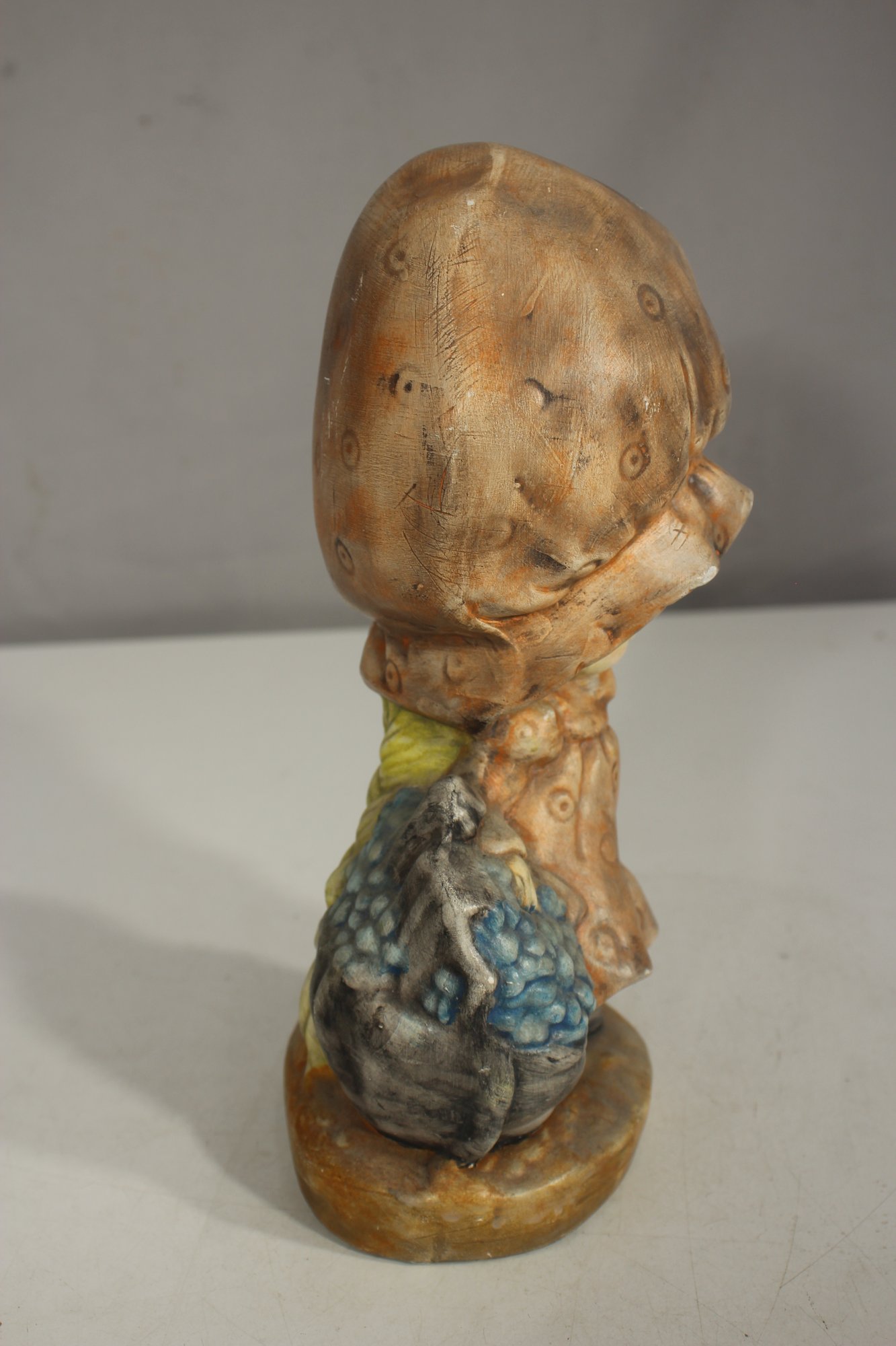 Vintage 10" Hand-Painted Ceramic Figurine Whimsical Girl In Oversized Bonnet