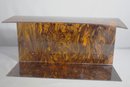 a touch of mid-century modern elegance to your space with this striking vintage Lucite wall shelf. Featuring a rich, marbled design in warm amber and brown tones, this shelf is both functional and visually appealing, making it a perfect addition to any room.