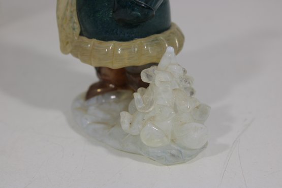The piece features soft, glossy glazing with earthy tones and subtle detailing in the face and clothing, giving it a warm and nostalgic mid-century character.