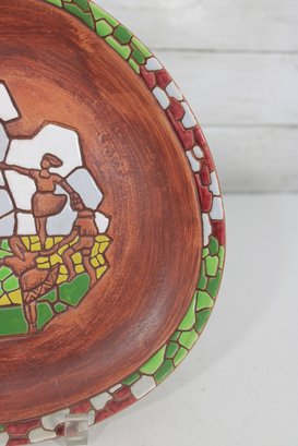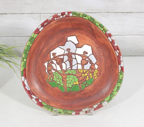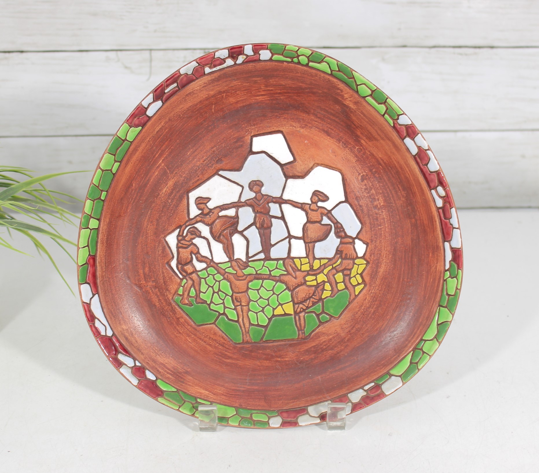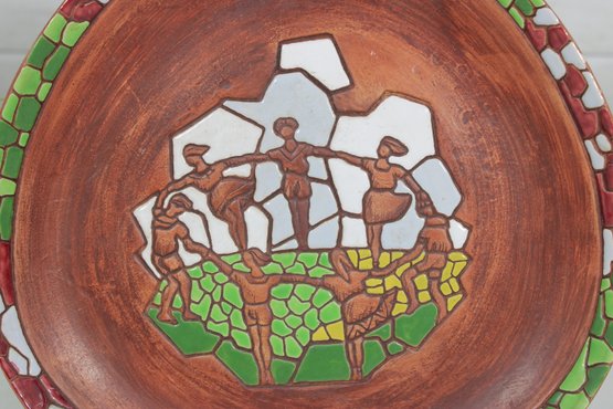 Vintage 1960's Keramos Pottery Israel Hora Dancing Plate Signed- # 454 10.5"x 10.5"
