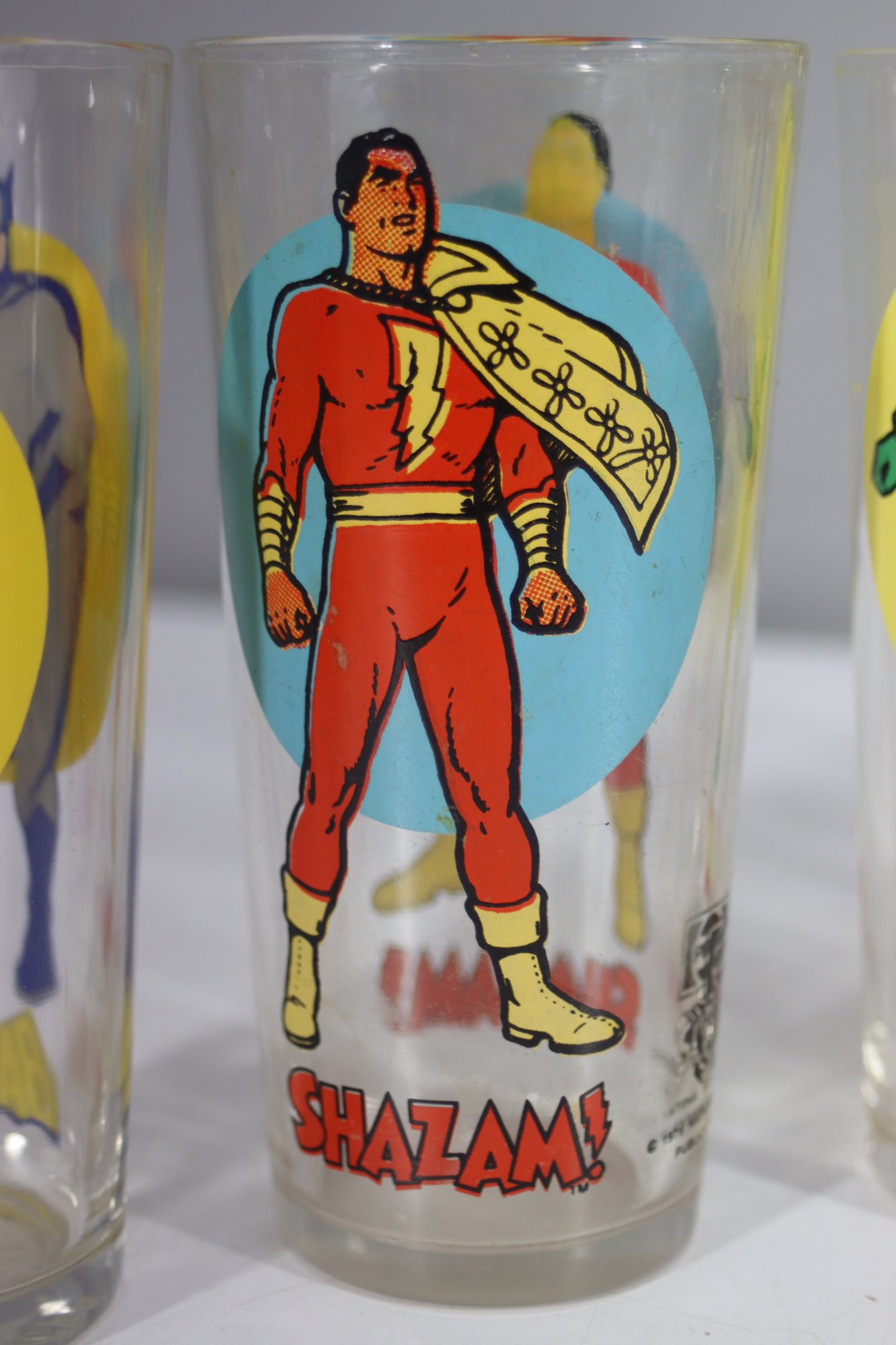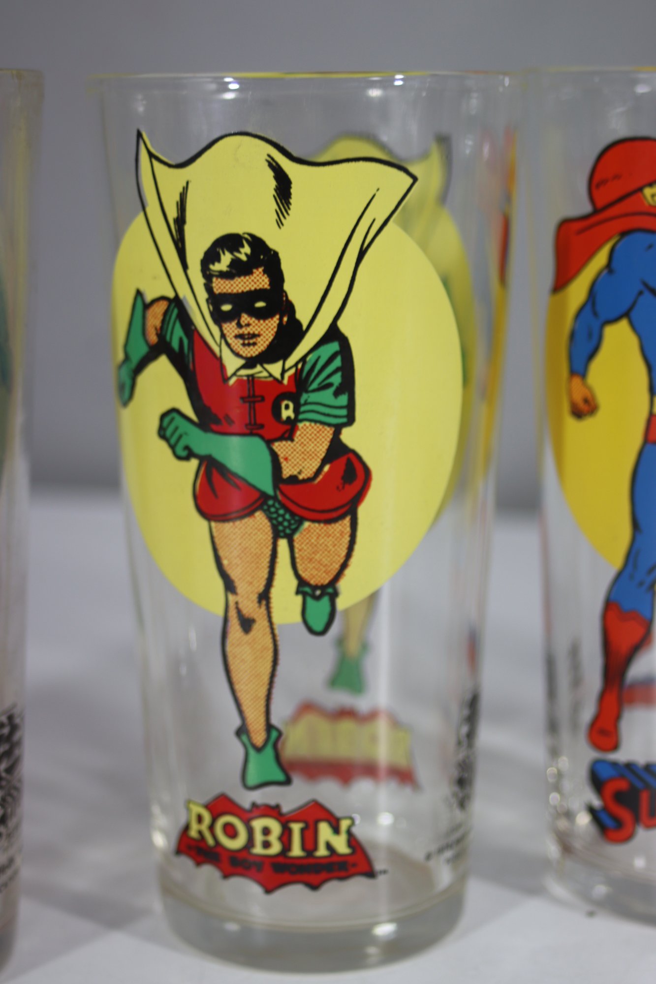 These glasses are a must-have for any comic book or superhero collector, perfect for display or everyday use. They are in good condition with minimal wear, and the designs remain crisp and bold. A great addition to any vintage glassware or superhero memorabilia collection!