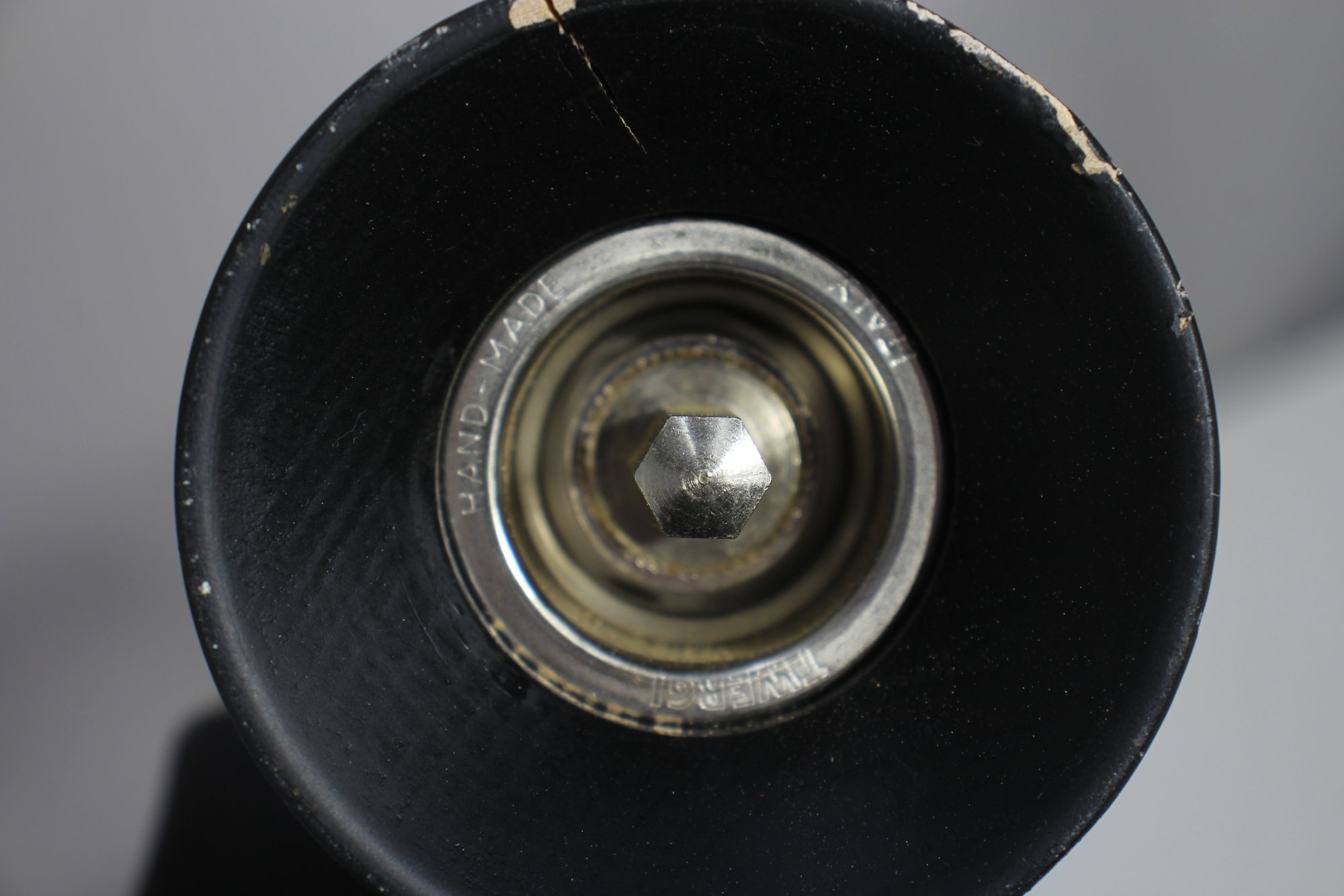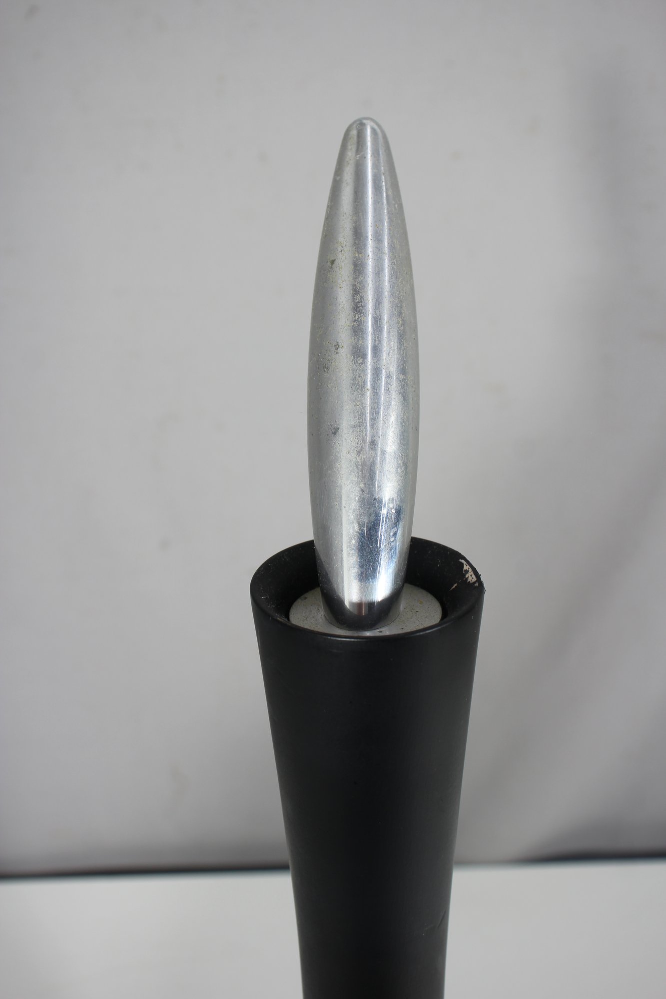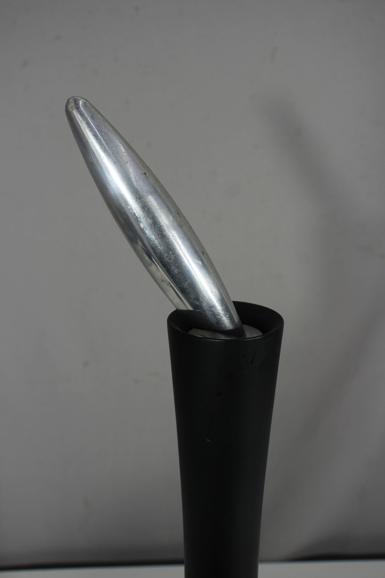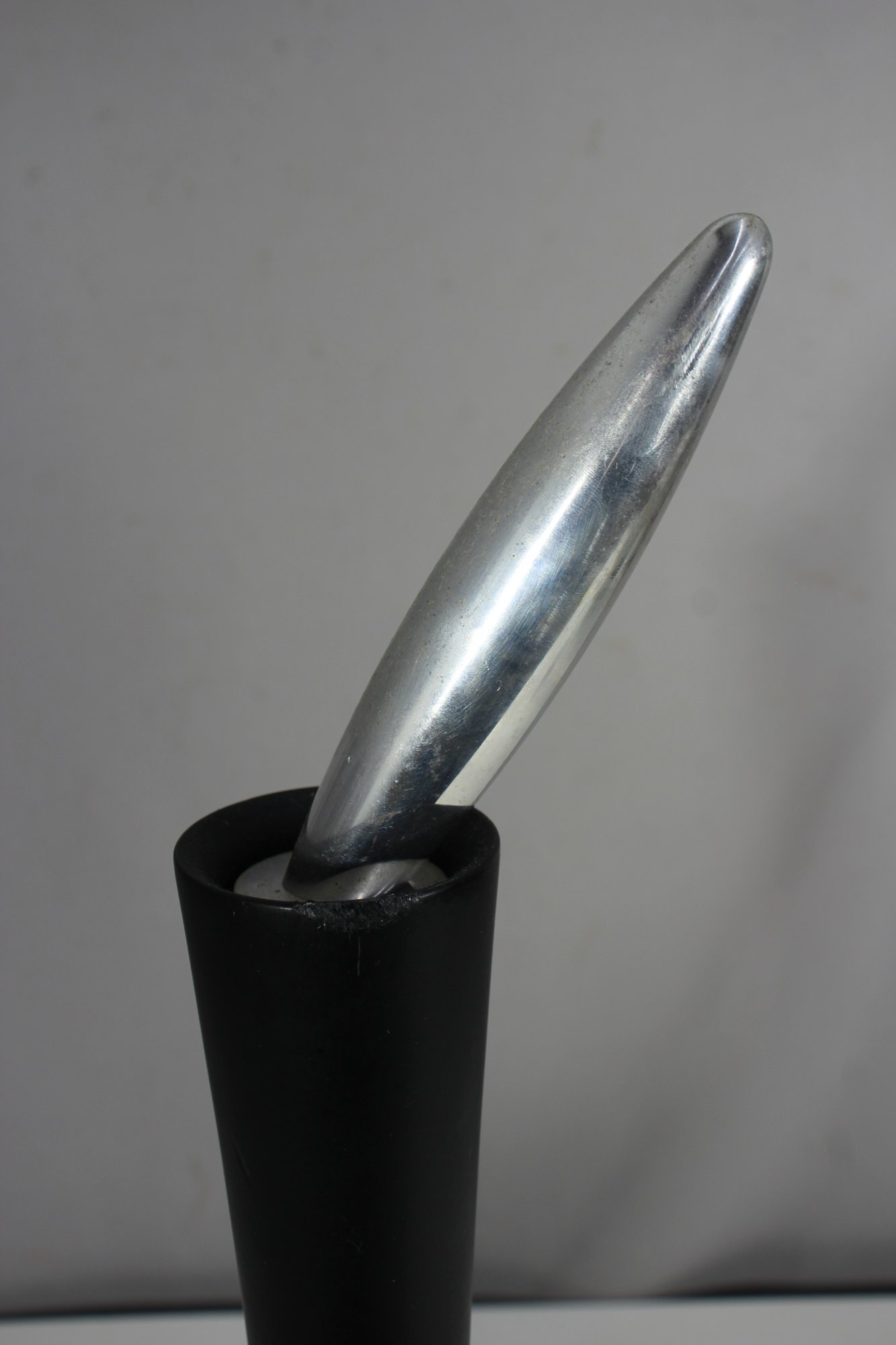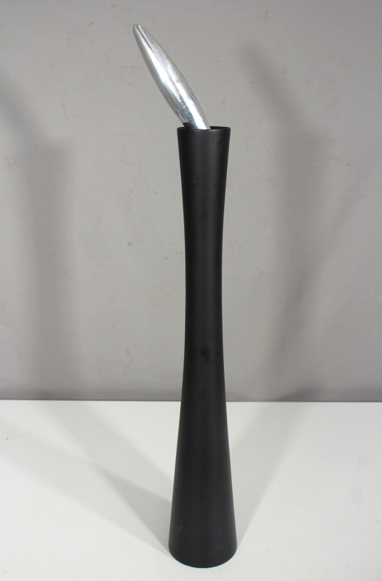 a rare vintage 23” Twergi Alessi pepper mill, an iconic piece of Italian design known for its sleek, sculptural form and high-quality craftsmanship.