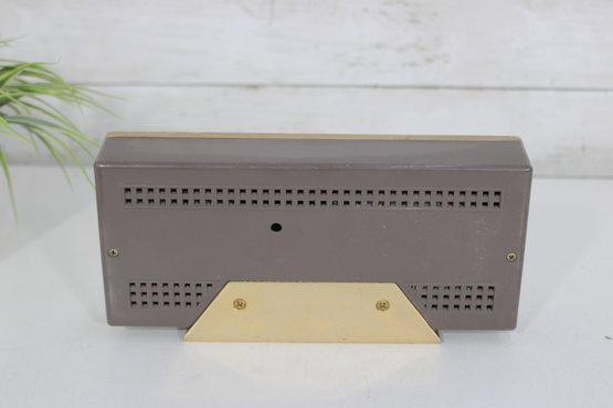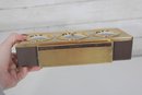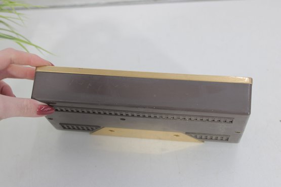 A classic mid-century style desk or shelf accessory with textured front panel and gold-tone accents.