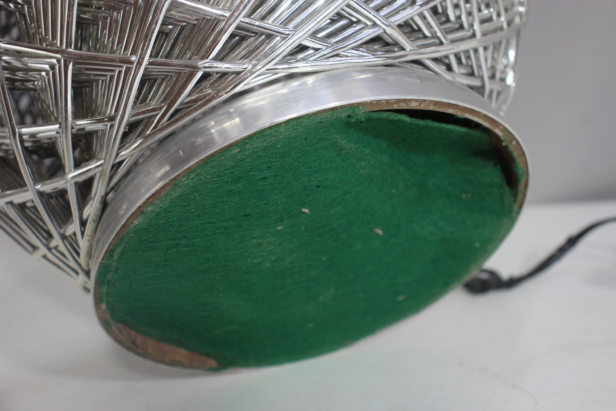 The lamp is currently working but will need to be rewired for long-term use. It retains its original green felt bottom, adding a touch of vintage authenticity. Ideal for mid-century modern, industrial, or contemporary décor, this lamp is a rare and eye-catching find. Lampshade not included.