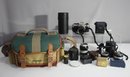 This comprehensive vintage 35mm film photography kit includes a classic film camera, multiple lenses, and essential accessories, all housed in a durable Promaster camera bag. Perfect for film photography enthusiasts or collectors, this set provides a complete setup to explore the art of analog photography.