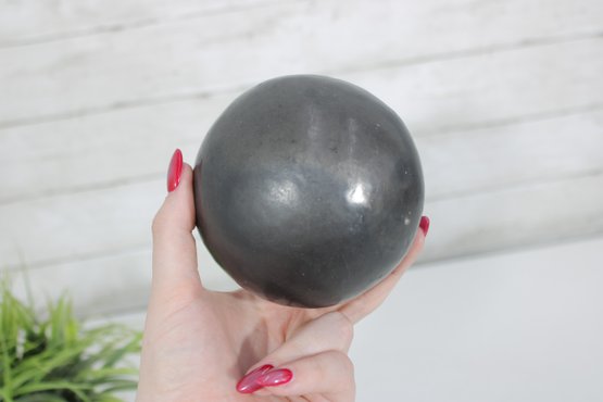 The vase features a classic rounded form with a short neck and wide opening, showcasing the elegant simplicity and craftsmanship of Oaxacan folk art. The deep charcoal-black tone is achieved through a specialized firing and polishing process, giving it its signature sheen.